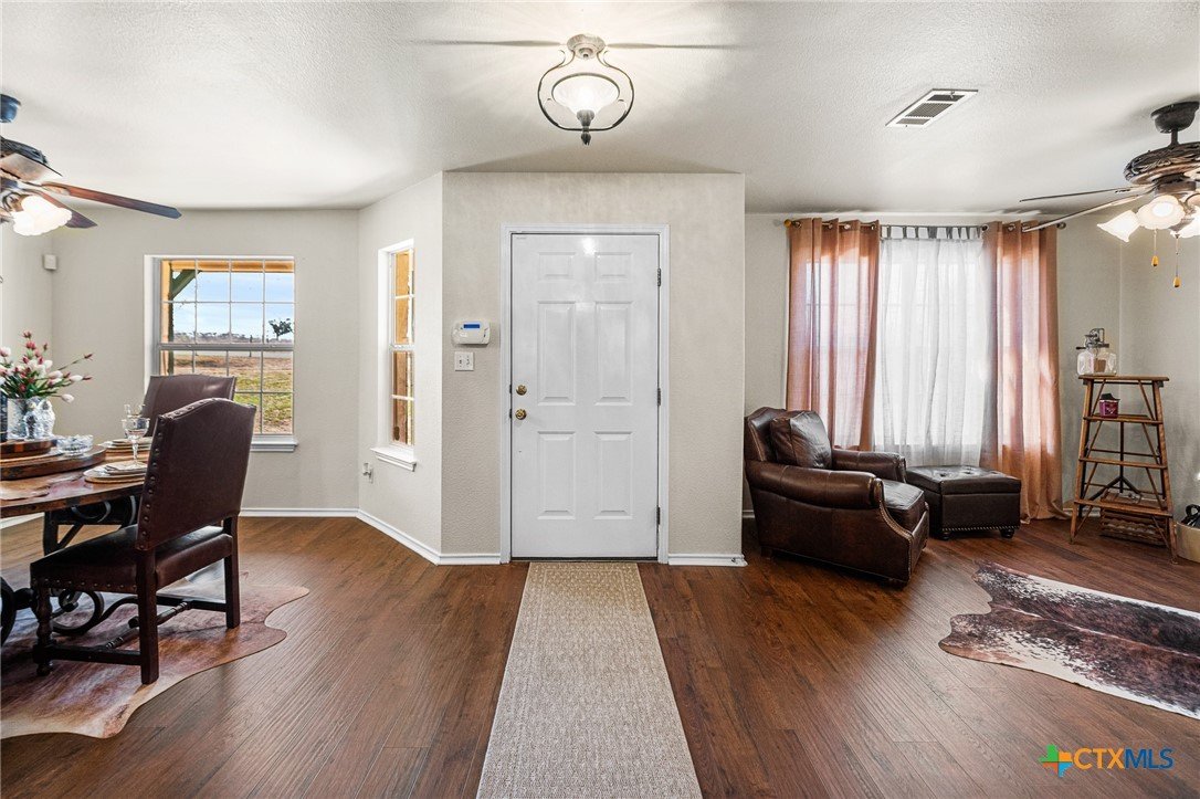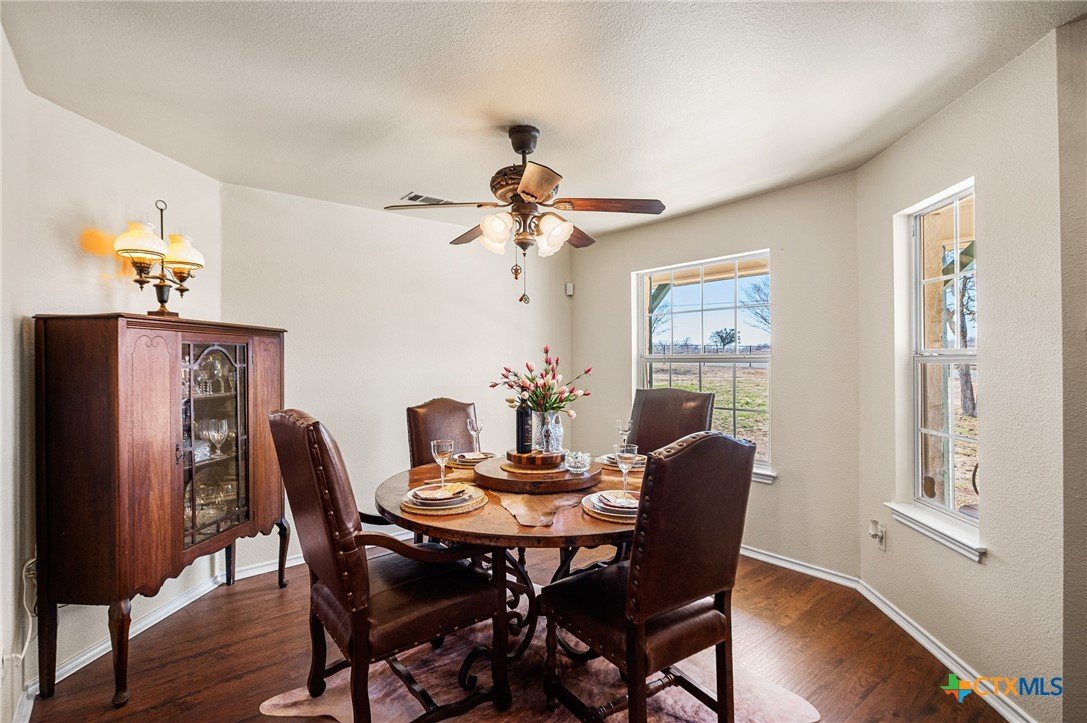 True country charm welcomes you to this stunning fenced 11.32-acre AG Exempt homestead featuring a beautifully maintained and thoughtfully updated 3-bedroom, 2-bath ranch-style home with an office. Enjoy the peace of country living while being just 20 minutes from downtown San Antonio - the perfect blend of privacy and convenience. The spacious kitchen is designed for both everyday living and entertaining, showcasing GRANITE countertops, a COPPER sink, stone breakfast bar, and a bright eat-in dining area. A SEPARATE formal dining room offers additional space for hosting holidays and gatherings. The expansive living room provides an inviting atmosphere with abundant open space and a cozy wood-burning FIREPLACE - ideal for gathering with family and friends. The private primary suite is thoughtfully split from the secondary bedrooms and features a luxurious ensuite bath complete with double vanities, a garden tub, separate shower, and a TEXAS-sized walk-in closet. On the opposite side of the home, you'll find two generously sized bedrooms and a full bath with a tub/shower combination. Step outside to the impressive 15x34 covered back porch - perfect for entertaining - complete with mounted TV and speakers. For those dreaming of space to work or play, the 30x60 main barn offers 30x40 of concrete flooring, a spacious feed room, livestock pens with a 12x45 cover, and a cattle chute. (Water/electricity at barn) Whether for livestock, 4-H/FFA projects, or simply enjoying wide open space, the possibilities are endless. A 20x18 two-car Gable carport provides additional covered parking and compliments the property beautifully. Conveniently located just two minutes from East Central High School and five minutes to the Elementary and Middle schools, this property has it all! No HOA, & near Calaveras Lake! Updates include: roof (2022), HVAC (2020), flooring (2024), paint (2026), automatic gate. Some photos may be virtually staged.