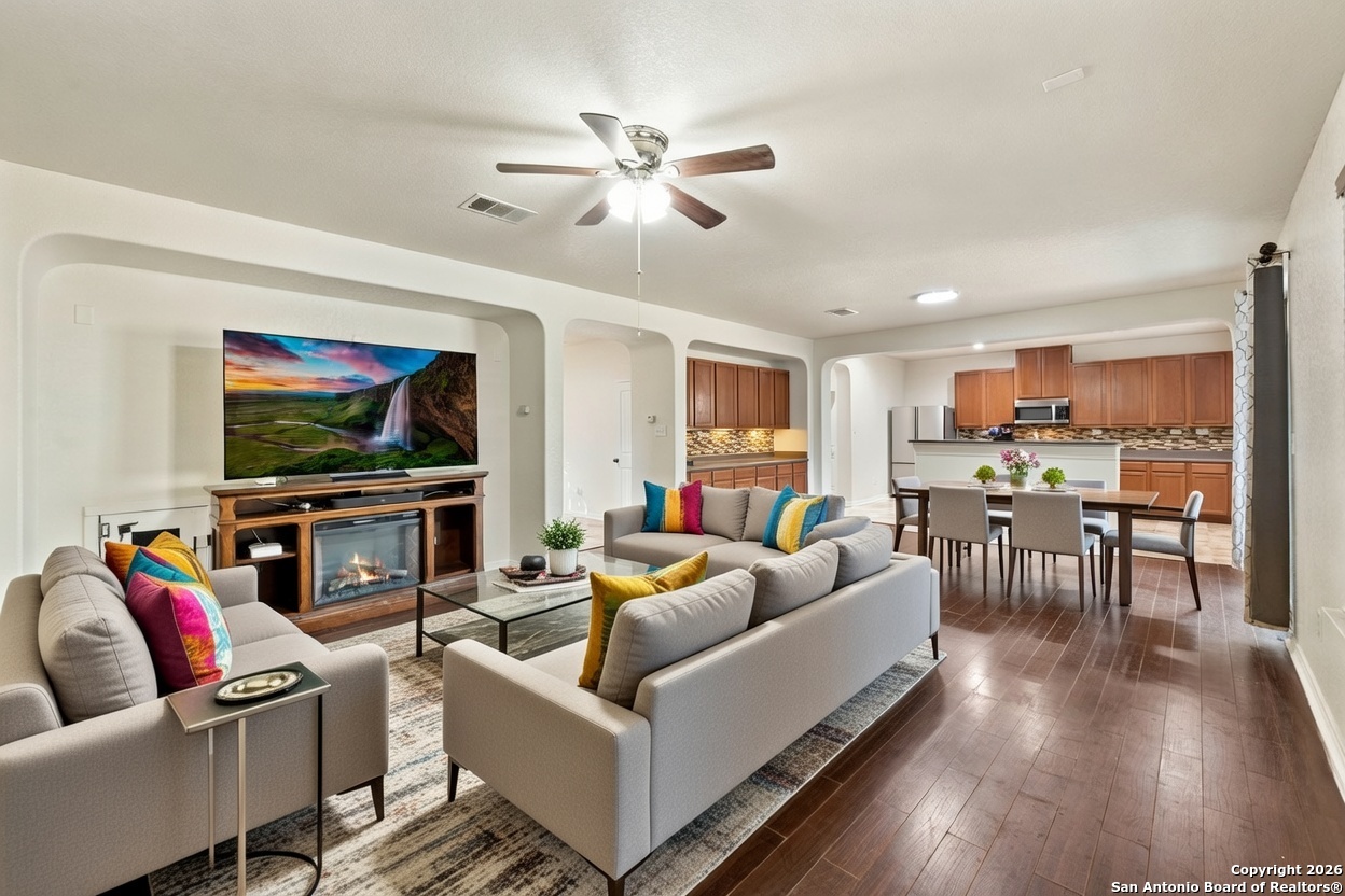Discover this beautifully maintained 4-bedroom, 2.5-bath home offering over 2,400 sq ft of functional space. The open main living area flows into a spacious kitchen with abundant cabinet storage, perfect for everyday living and entertaining. Upstairs features a generous second living area/loft, ideal for a media room, office, or flexible retreat. The large primary suite offers a walk-in closet and double vanities, with well-sized secondary bedrooms providing additional versatility. A brand-new roof with a 10-year warranty adds incredible value and peace of mind. The backyard is private and easy to maintain, creating a great space for relaxing or weekend gatherings. With excellent price-per-square-foot value and a thoughtful layout, this home is a standout option for buyers seeking space and comfort.