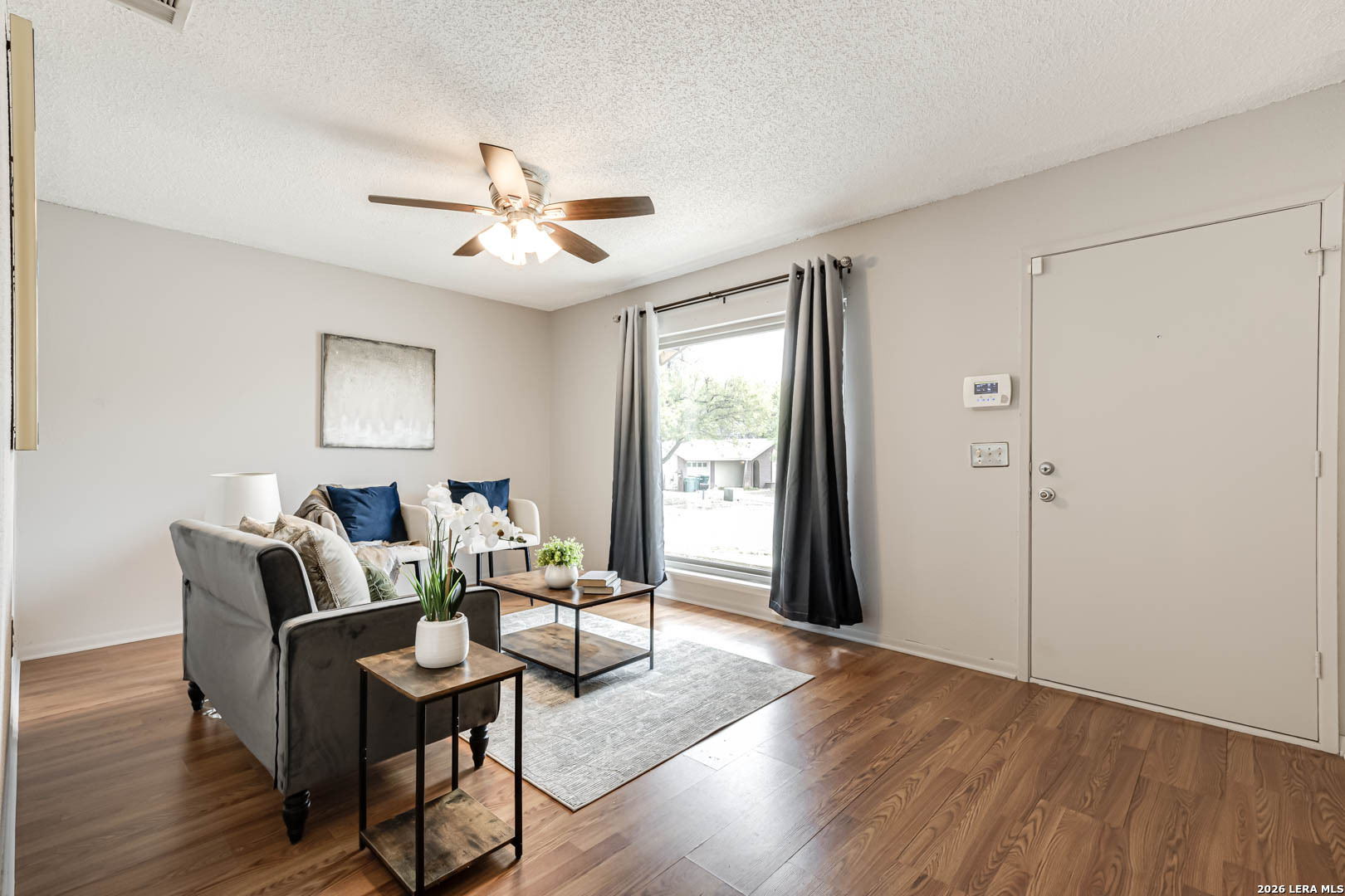 Beautiful move-in-ready 3-bedroom, 2-bathroom, 1-car garage home located in a wonderful neighborhood called LIVE OAK VILLAGE. This wonderful home features a living room and family room for ample entertainment space, a breakfast bar, a fully operational kitchen, a master bedroom with natural lighting, remodeled bathrooms, an updated electrical system meeting city code requirements, a covered concrete patio, ALL APPLIANCES INCLUDED (washer, dryer, and refrigerator), an ADT security system, a transferable home warranty, a new water heater, and new energy-efficient, double-pane/Low-E windows. It is less than 1.5 miles from the elementary school, city park, library, and police/fire department. Zoned for Judson ISD schools, offers very quick access to the highways, is minutes away from JBSA Bases, and is a short drive to local stores and restaurants. Schedule your showing appointment today to see this beautiful home.