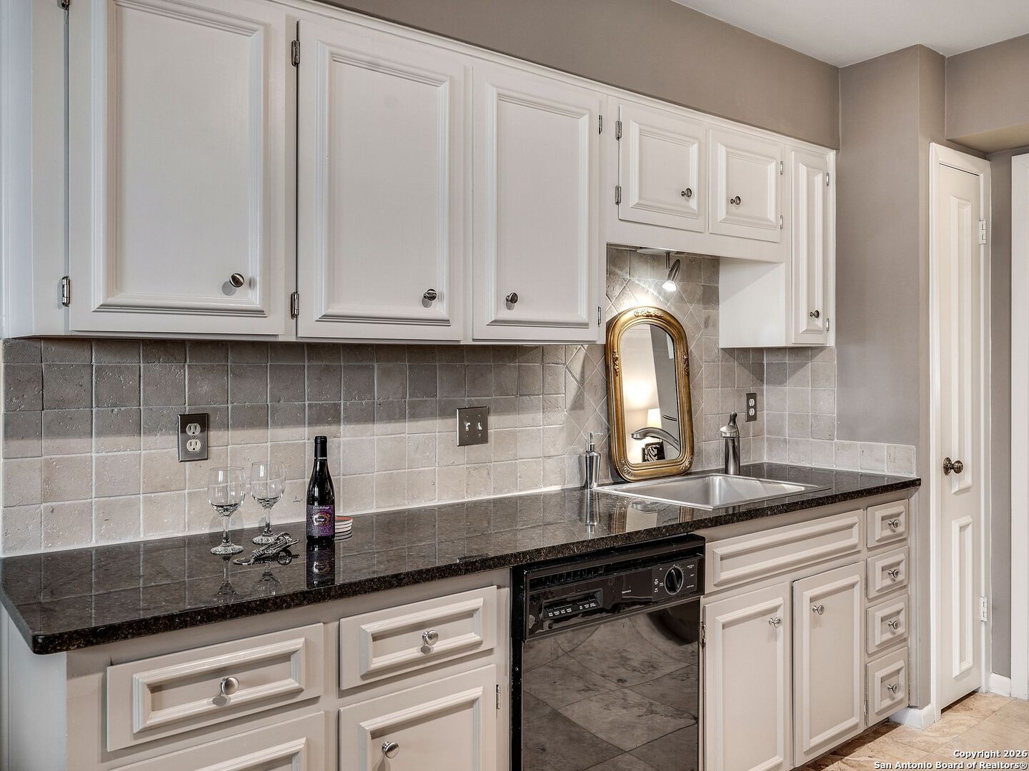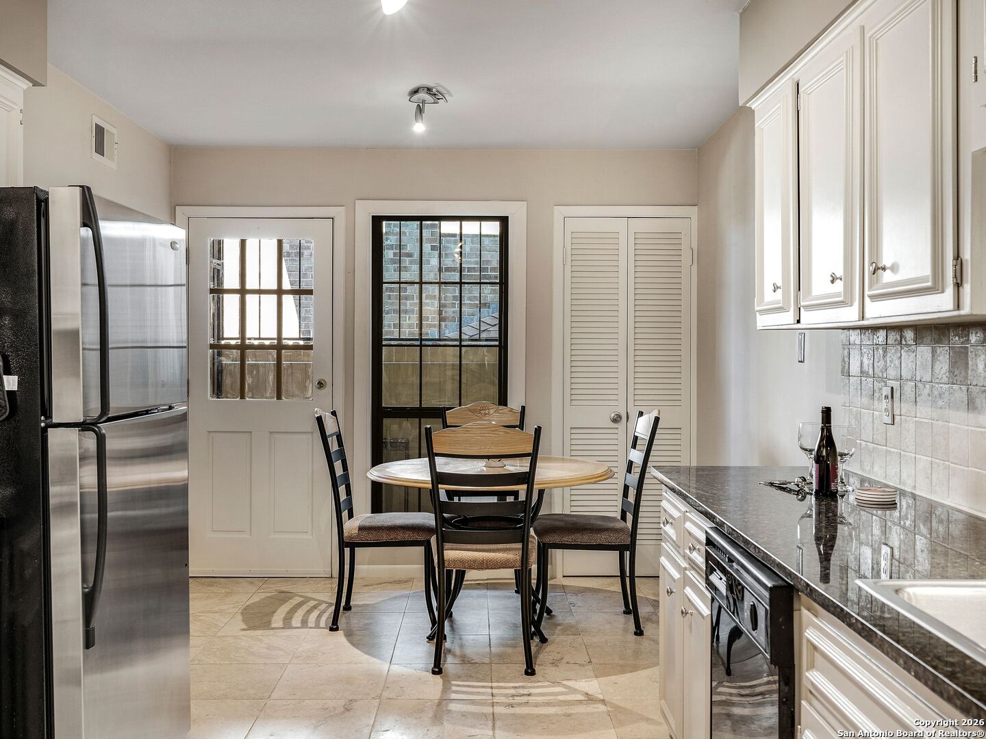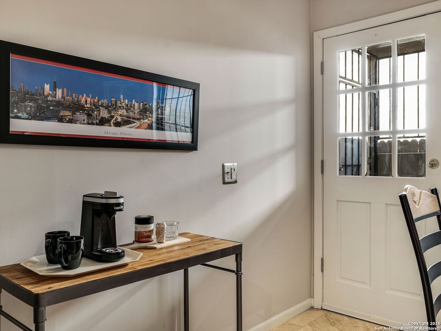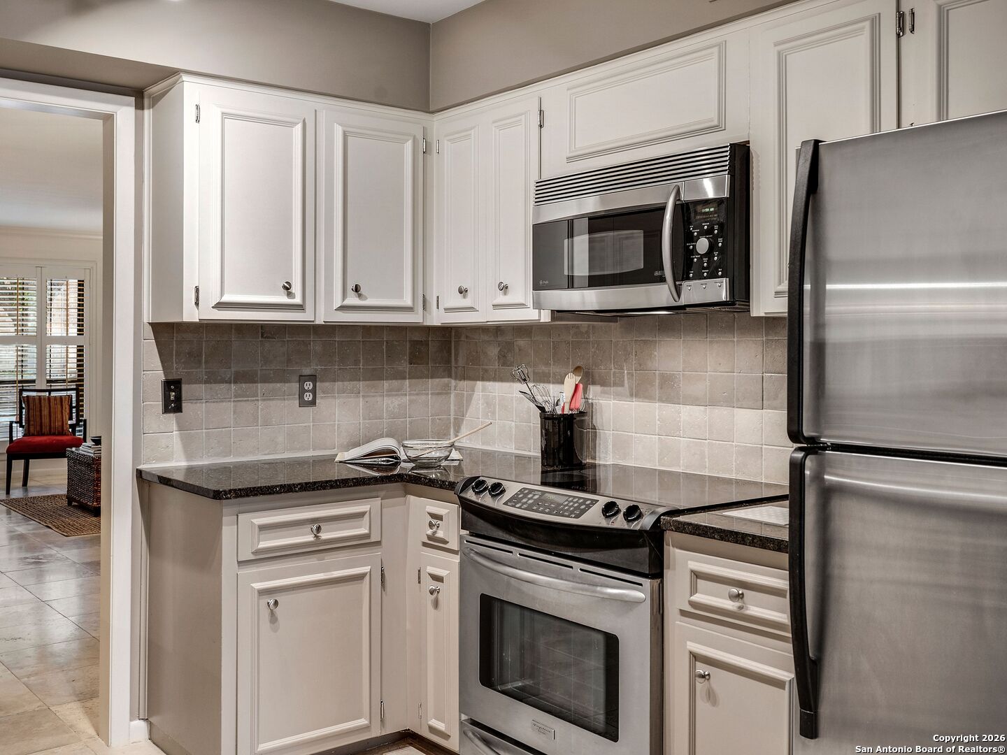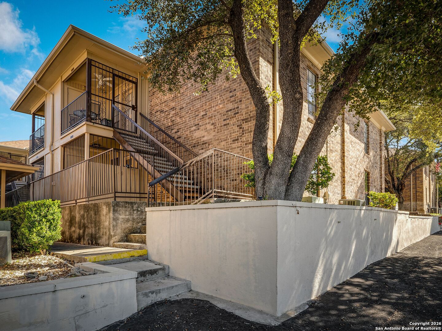 Nestled in the heart of Alamo Heights, this beautifully updated 2-bedroom, 2-bath single-story condo at Windsor Court offers both comfort and convenience. Positioned on the ground floor and as an end unit, it enjoys an abundance of natural light throughout. Step inside to find travertine tile floors flowing seamlessly through an open living area, framed by nearly floor-to-ceiling French windows that create a bright and inviting atmosphere. The updated kitchen features granite countertops, stainless steel appliances, two pantries, a travertine backsplash, and a charming breakfast nook-perfect for morning coffee or casual dining. The spacious primary suite includes two closets and an updated bath with a stone countertop, modern cabinetry, and a tub/shower combo. Off the dining room offers a flexible closet that includes a clever hideaway office, ideal for working from home. Enjoy a cozy enclosed porch, recently replaced windows, and the peace of mind that comes with a move-in ready home. Windsor Court's prime Alamo Heights location places you minutes from restaurants, coffee shops, shopping, the airport, Museum Reach, the Zoo, the Botanical Gardens, and The Pearl.