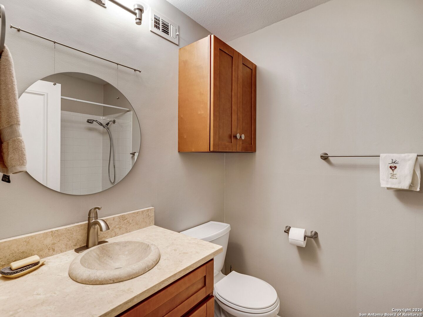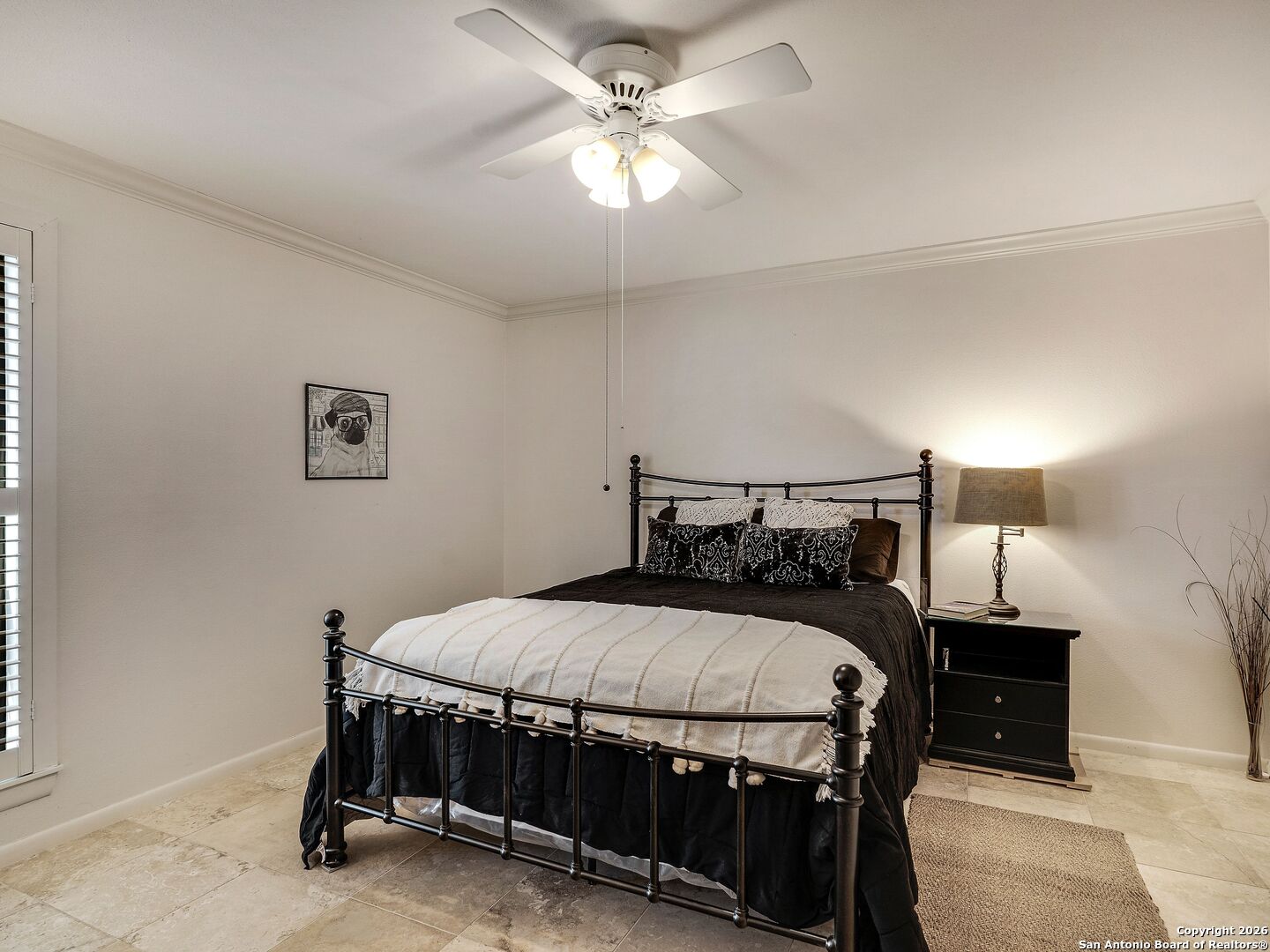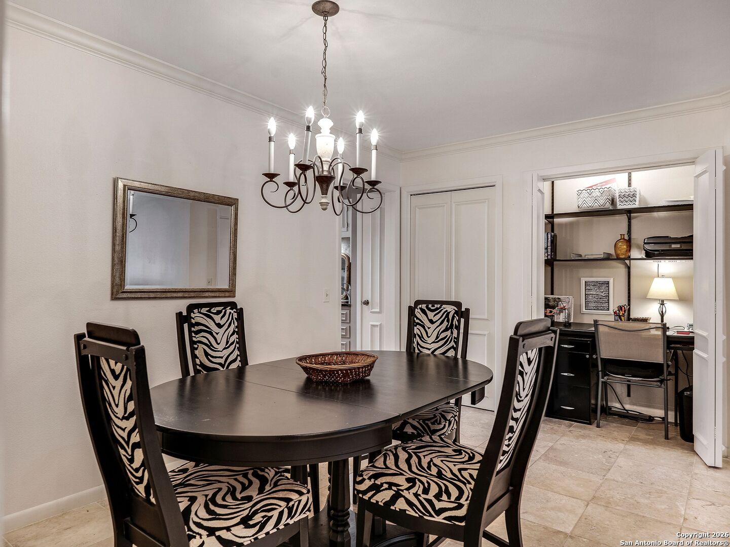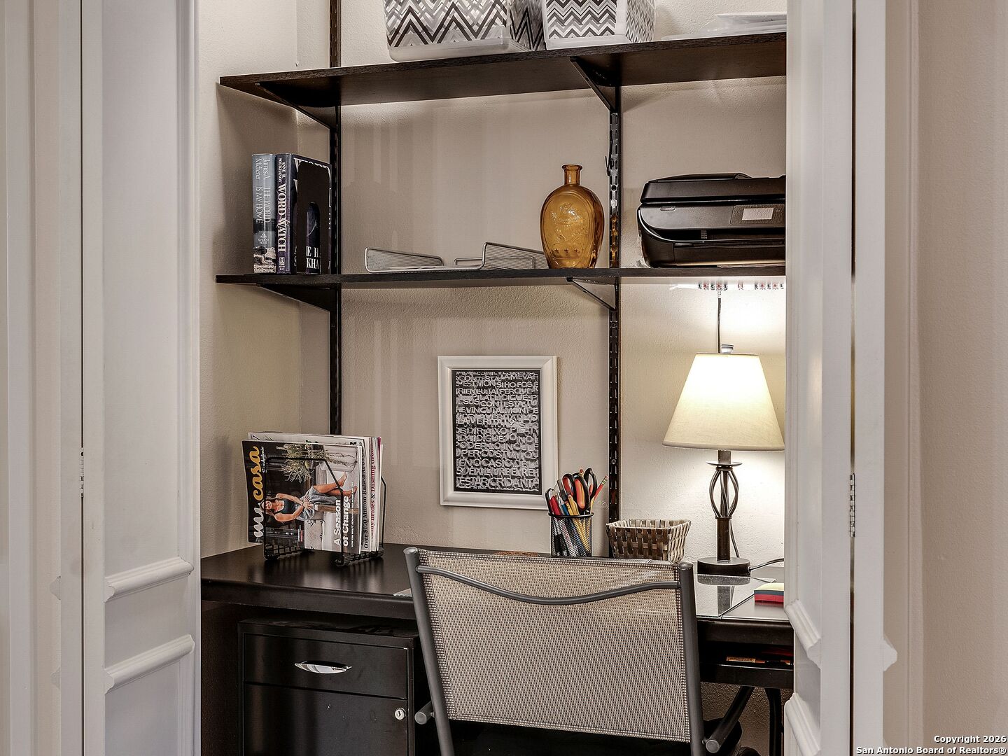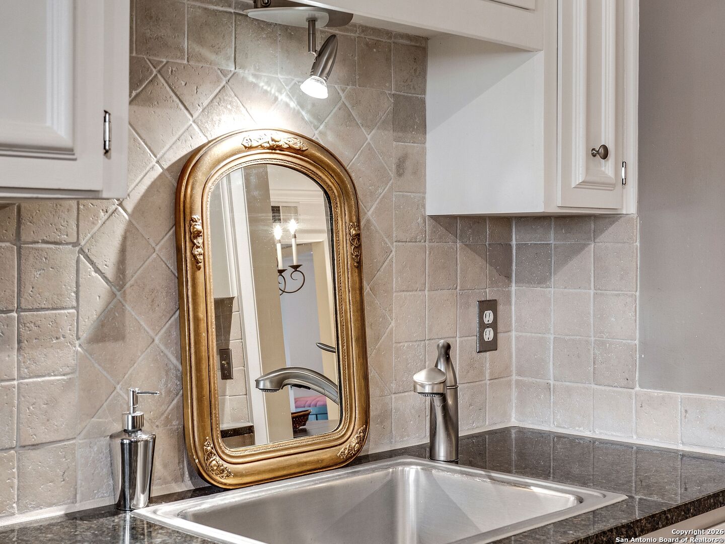 Nestled in the heart of Alamo Heights, this beautifully updated 2-bedroom, 2-bath single-story condo at Windsor Court offers both comfort and convenience. Positioned on the ground floor and as an end unit, it enjoys an abundance of natural light throughout. Step inside to find travertine tile floors flowing seamlessly through an open living area, framed by nearly floor-to-ceiling French windows that create a bright and inviting atmosphere. The updated kitchen features granite countertops, stainless steel appliances, two pantries, a travertine backsplash, and a charming breakfast nook-perfect for morning coffee or casual dining. The spacious primary suite includes two closets and an updated bath with a stone countertop, modern cabinetry, and a tub/shower combo. Off the dining room offers a flexible closet that includes a clever hideaway office, ideal for working from home. Enjoy a cozy enclosed porch, recently replaced windows, and the peace of mind that comes with a move-in ready home. Windsor Court's prime Alamo Heights location places you minutes from restaurants, coffee shops, shopping, the airport, Museum Reach, the Zoo, the Botanical Gardens, and The Pearl.