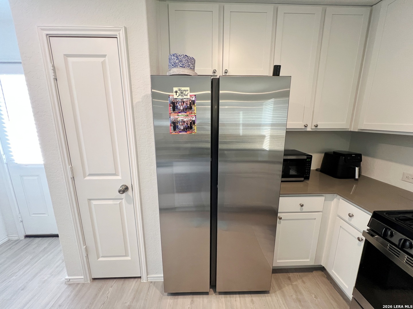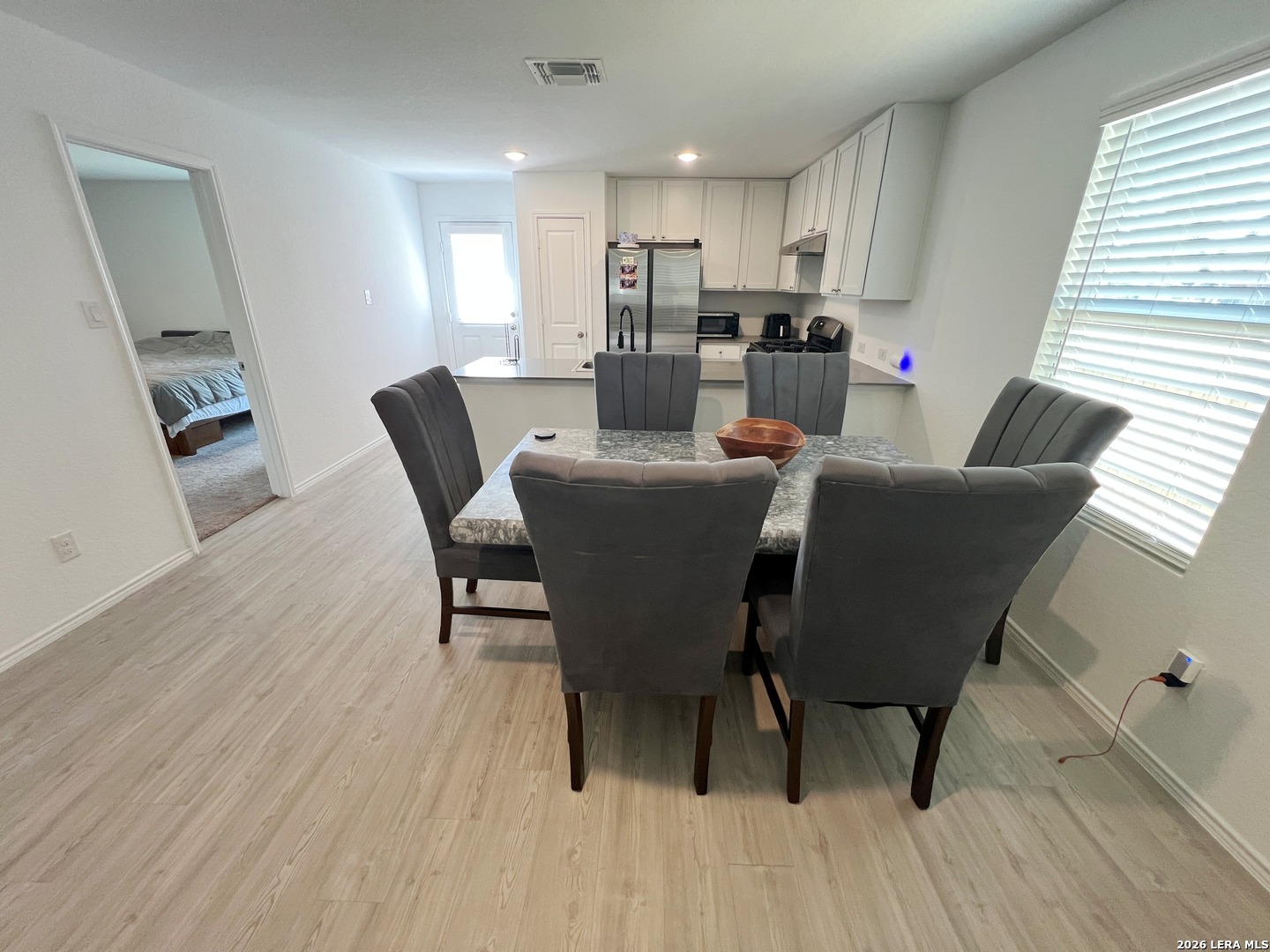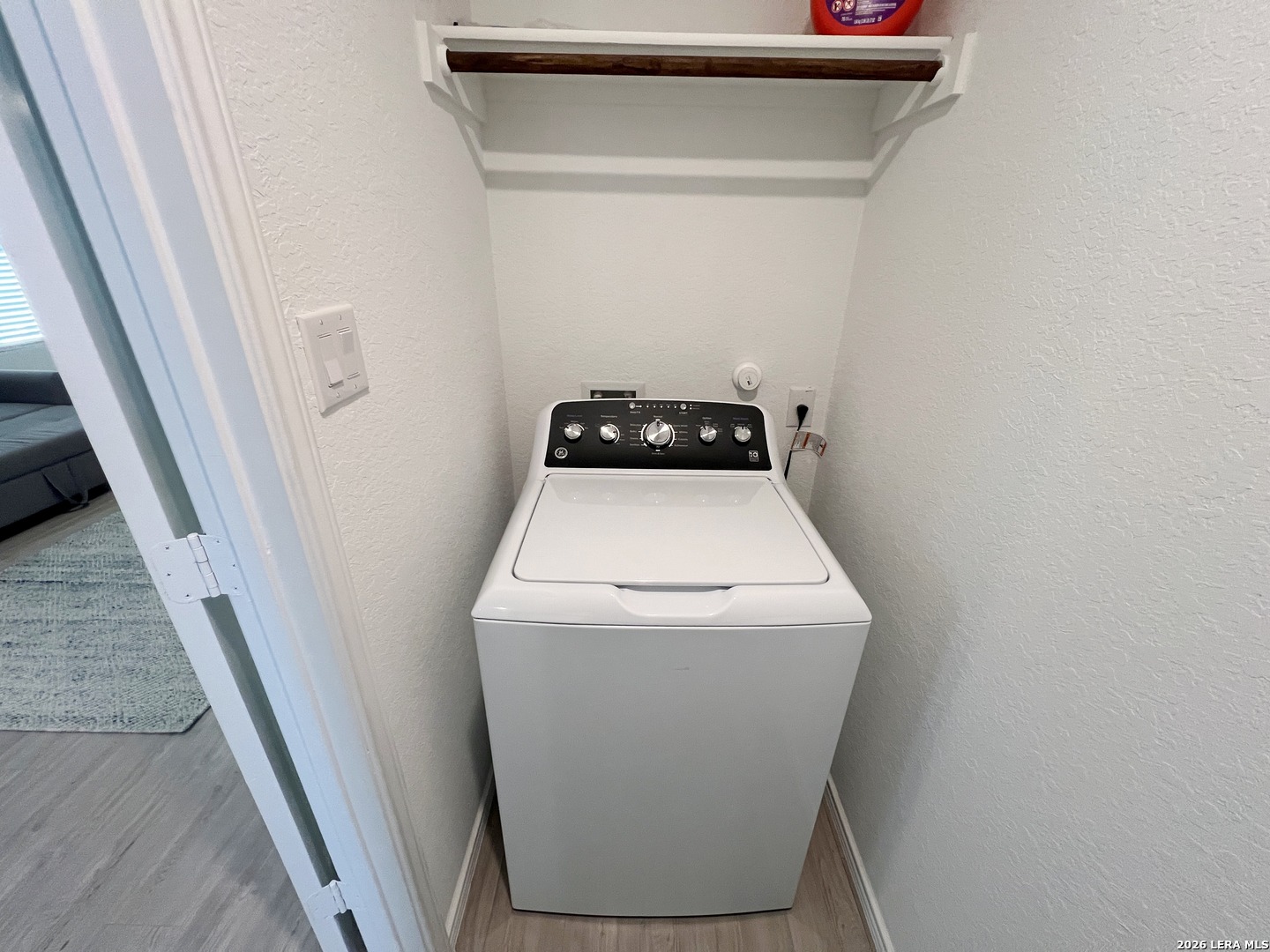 3 Bed, 2 Bath 1266 sq ft Single Story Home on Cul-de-sac off Loop 410, 151. Vinyl Plank in the high traffic areas. Large Living/Dining room combo. Kitchen with Quartz counters, Farmhouse Sink, Stainless Fridge, Gas Stove, and Dishwasher. Washer and Dryer included! Primary Bedroom with Walk-in Closet. Primary Bath with Shower/Tub combo. Fenced Yard backs a Greenbelt (no back neighbor) 2 Car Garage with Opener, Tank less Gas Water Heater. Tom Slick Park with a dog park, pond, playground, basketball, baseball and more just 2 minutes away. Northside schools. Tons of shopping and restaurants nearby.