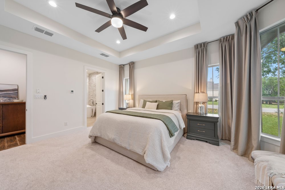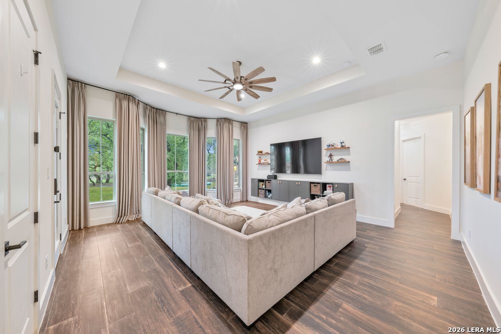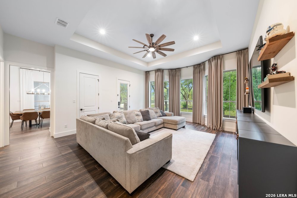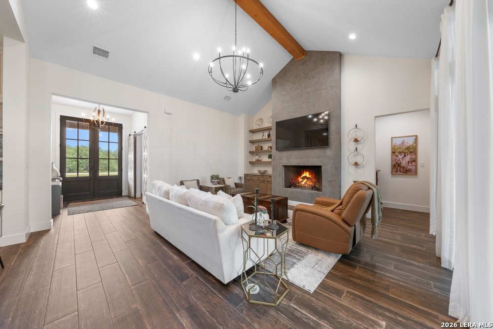 Stunning 3,565 sq ft custom home in Belle Oaks featuring 4 bedrooms, 3.5 baths, a dedicated office, and two versatile living areas with a layout designed to be open and functional. Showcasing a high level of finishes throughout, this home was built with intention and attention to detail. The kitchen is equipped with Thermador appliances and is complemented by a spacious pantry, along with a highly functional laundry room and a three-car garage. All closets are custom, and one secondary bedroom lives like a second primary suite with a beautifully appointed bathroom and custom closet. The main primary suite offers an incredible bathroom with abundant storage and a rainfall shower with dual temperature control. The backyard is designed for entertaining with a playground, in-ground trampoline, and fire pit area. Situated on 1.27 acres, enjoy peaceful country living just 15 minutes from city amenities.