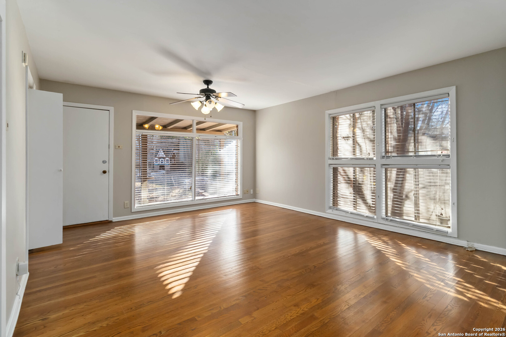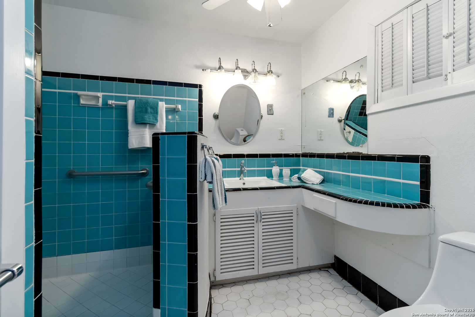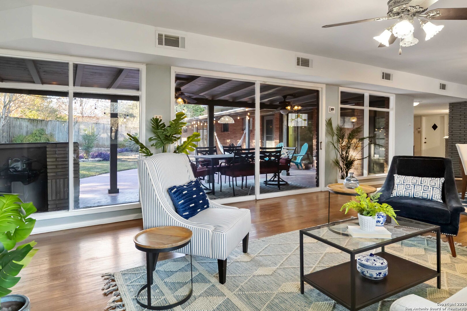 Style and location converge in this refined mid-century home. Expansive windows, hardwood floors, and a sleek open-concept kitchen create a bright, functional living space designed for today's lifestyle. The home features three bedrooms, three and a half bathrooms, and an oversized two-car garage with ample storage. Each bedroom is a private suite with an en-suite bath, walk-in closet, and direct access to a covered backyard patio-delivering effortless indoor-outdoor living. The thoughtful layout offers both everyday comfort and an ideal setting for entertaining. Centrally located just minutes from downtown, the Pearl, H-E-B Central Market, Frost Bank Center, the Alamodome, San Antonio International Airport, and Fort Sam Houston (JBSA)