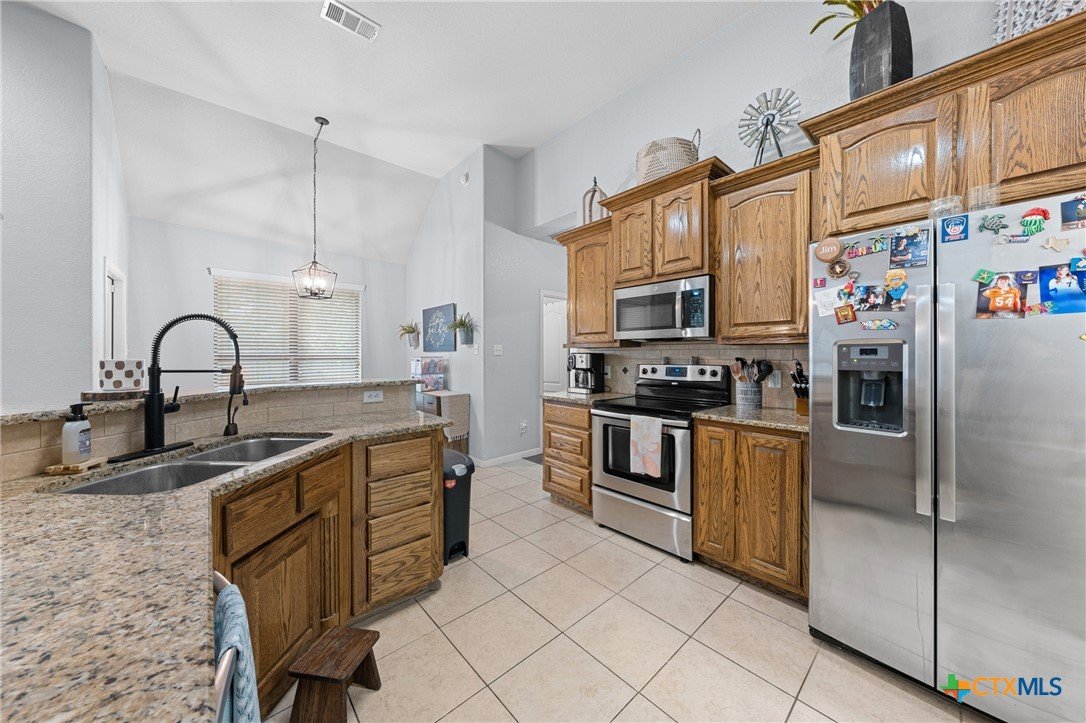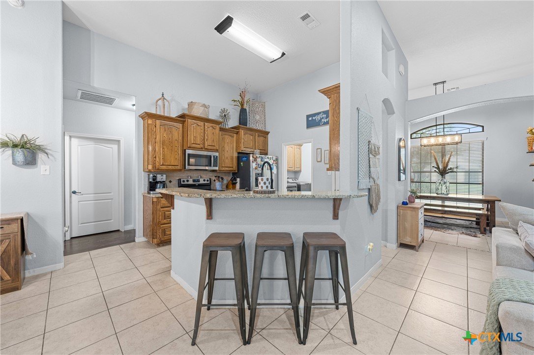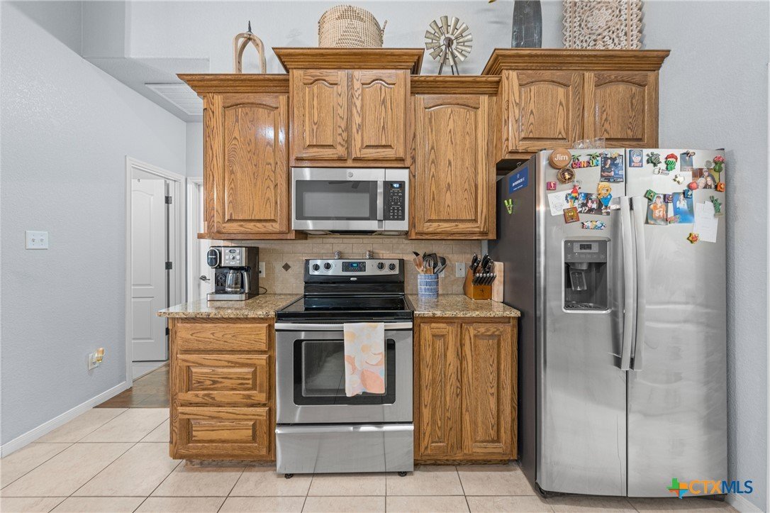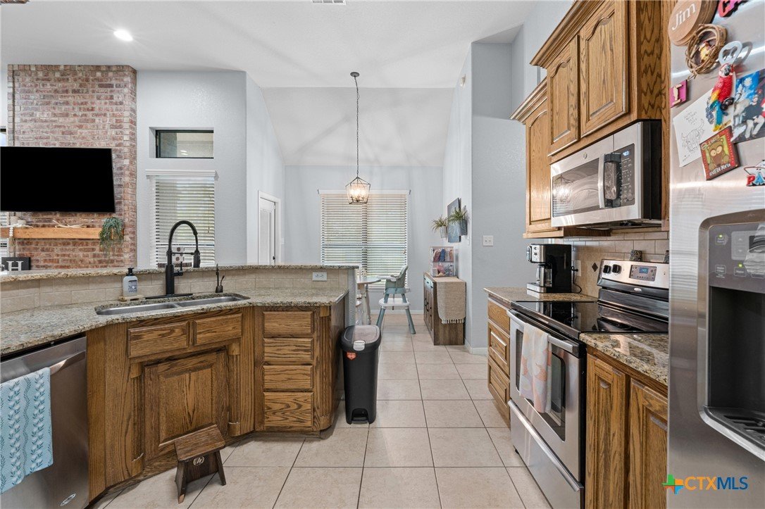 Welcome to this inviting 3-bedroom, 2-bath home located in the sought-after Saddle Creek neighborhood of Belton. Designed with both comfort and functionality in mind, this home offers a spacious layout perfect for everyday living and entertaining. The large living room serves as the heart of the home, featuring a cozy brick, wood-burning fireplace that creates a warm and inviting atmosphere. The kitchen is well-equipped with granite countertops, a built-in stainless steel microwave, and an electric range, along with abundant cabinet and countertop space to meet all your cooking and storage needs. Enjoy both a formal dining room for special occasions and a bright breakfast area for casual meals. The spacious primary suite provides a relaxing retreat, complete with a double-sink vanity, garden tub, and separate shower. A split floor plan ensures privacy, with guest bedrooms and a full bathroom located separately from the primary suite. Upstairs, a large flex room offers endless possibilities—perfect for a game room, home office, media space, or additional living area. This home combines thoughtful design with versatile spaces, all in a desirable location close to local amenities, schools, and conveniences. Don’t miss your chance to make it yours!