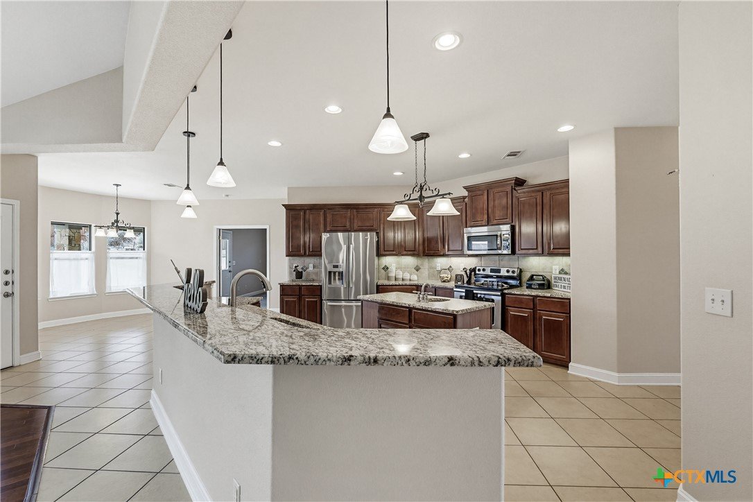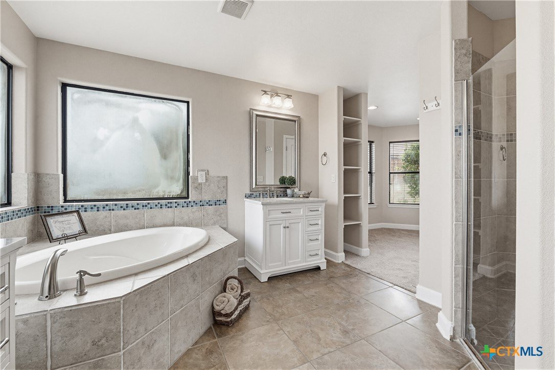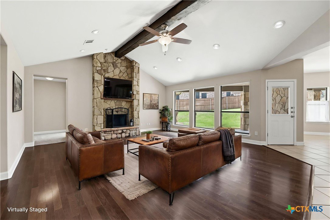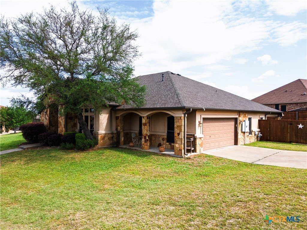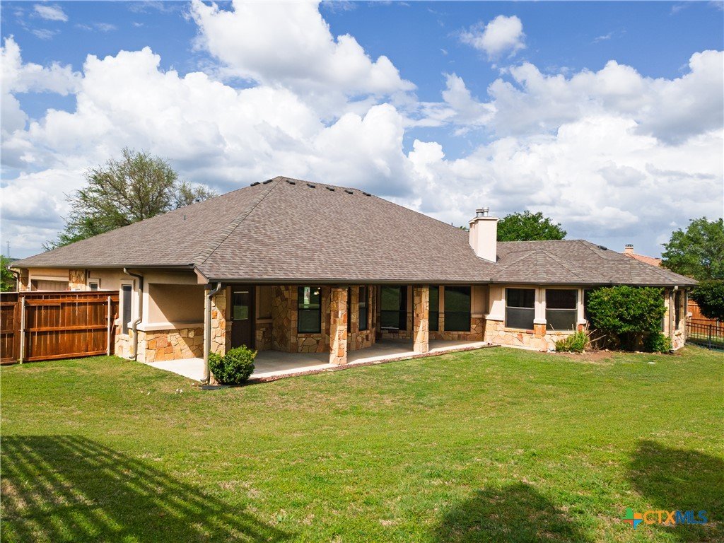 Welcome to this stunning home located in the prestigious gated community in Nolanville, perfectly situated on an expansive cul-de-sac lot just shy of half an acre. This beautifully designed home offers four spacious bedrooms and three and a half bathrooms, providing both comfort and functionality for everyday living and entertaining. The heart of the home is a chef’s dream kitchen, featuring generous space and an open layout that seamlessly flows into the inviting family room. Enjoy cozy evenings by one of the two fireplaces—one in the living room and another in the luxurious primary suite. Two of the secondary bedrooms are thoughtfully connected by a convenient Jack and Jill bathroom. Additional spaces include a bright breakfast area, formal dining room, and a dedicated office. A versatile bonus room just off the kitchen offers endless possibilities as a fifth bedroom, game room, or additional living area. This home offers over 3400 square feet and is one of the largest one-story homes in this beautiful HOA community that is currently for sale. Step outside to a large, covered porch overlooking the expansive fenced backyard, complete with a sprinkler system and an impressive pergola—perfect for hosting gatherings or relaxing with family and friends. Only 5 minutes to I-14 with an easy commute to Fort Hood, or I-35 to Austin, Belton, or Temple. This Move-In ready home is available for quick occupancy. Make an appointment to view it and imagine the endless possibilities in your new home!