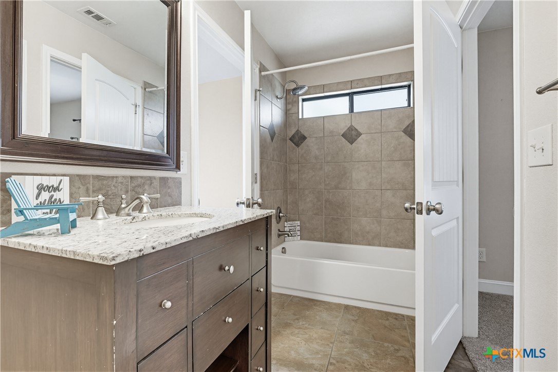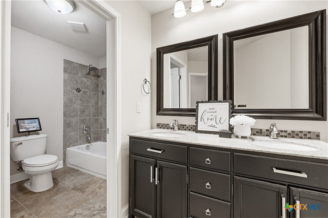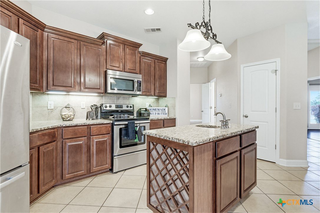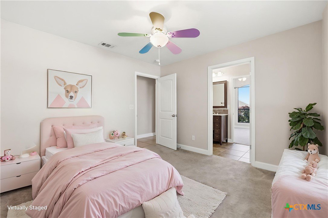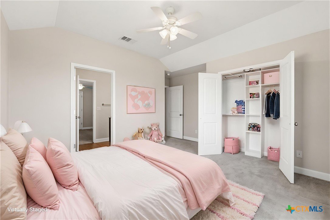 Welcome to this stunning home located in the prestigious gated community in Nolanville, perfectly situated on an expansive cul-de-sac lot just shy of half an acre. This beautifully designed home offers four spacious bedrooms and three and a half bathrooms, providing both comfort and functionality for everyday living and entertaining. The heart of the home is a chef’s dream kitchen, featuring generous space and an open layout that seamlessly flows into the inviting family room. Enjoy cozy evenings by one of the two fireplaces—one in the living room and another in the luxurious primary suite. Two of the secondary bedrooms are thoughtfully connected by a convenient Jack and Jill bathroom. Additional spaces include a bright breakfast area, formal dining room, and a dedicated office. A versatile bonus room just off the kitchen offers endless possibilities as a fifth bedroom, game room, or additional living area. This home offers over 3400 square feet and is one of the largest one-story homes in this beautiful HOA community that is currently for sale. Step outside to a large, covered porch overlooking the expansive fenced backyard, complete with a sprinkler system and an impressive pergola—perfect for hosting gatherings or relaxing with family and friends. Only 5 minutes to I-14 with an easy commute to Fort Hood, or I-35 to Austin, Belton, or Temple. This Move-In ready home is available for quick occupancy. Make an appointment to view it and imagine the endless possibilities in your new home!