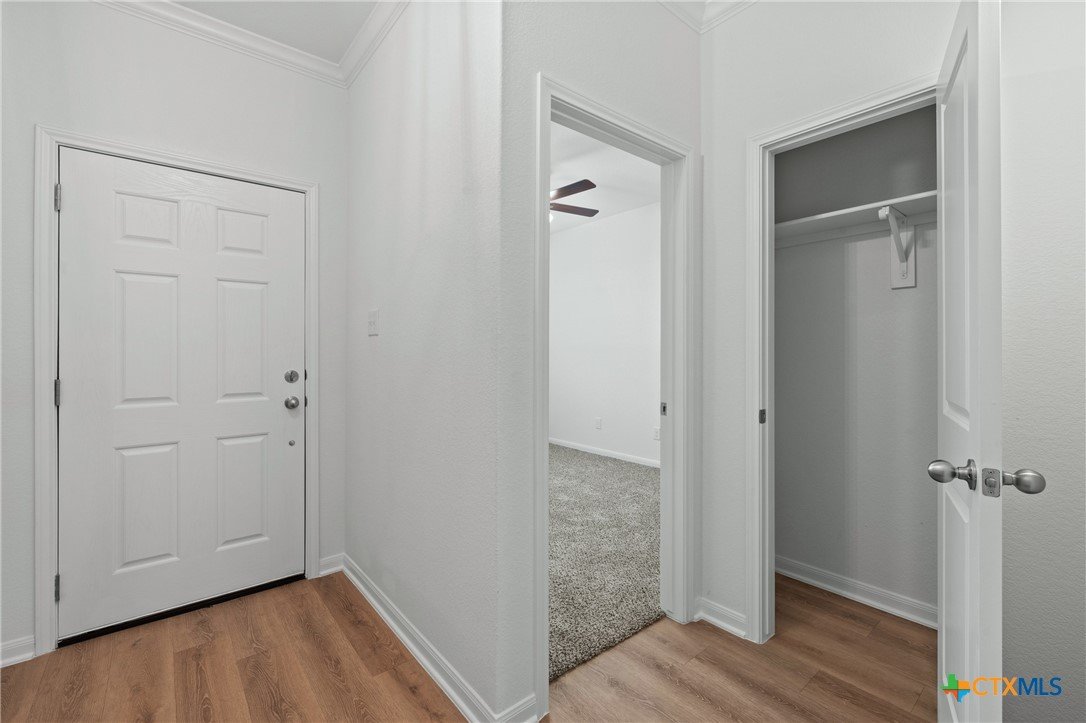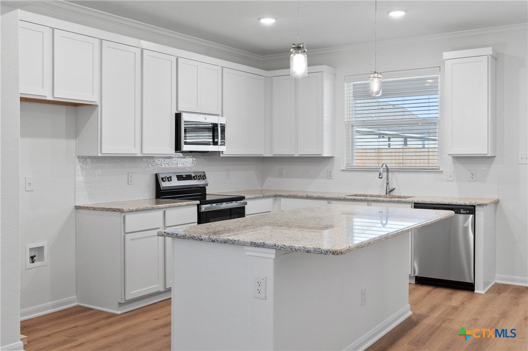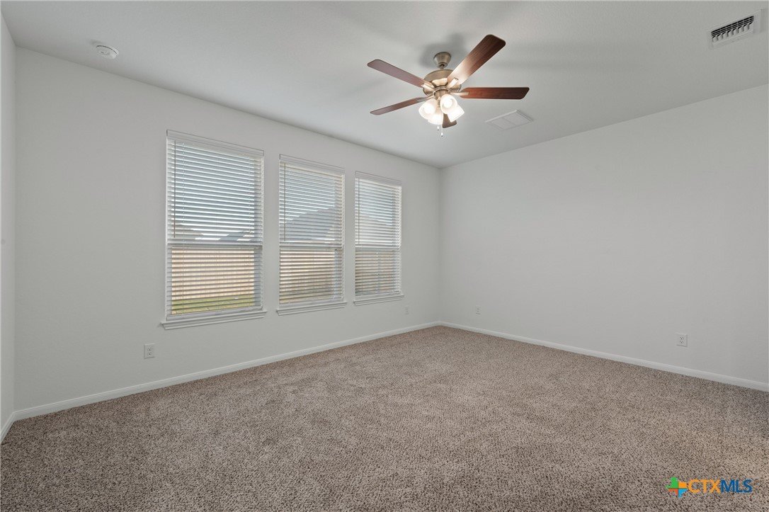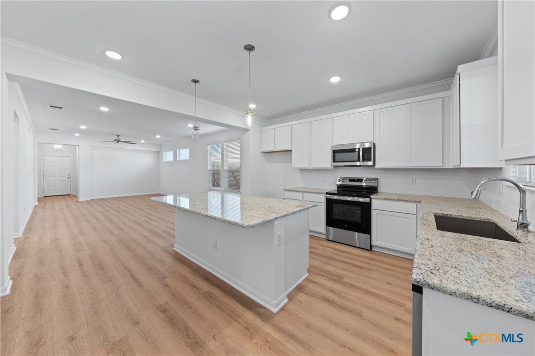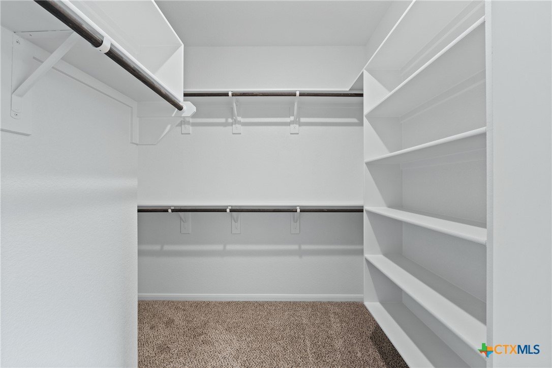 The Bellaire floor plan offers a suitable living space with three bedrooms and two bathrooms across 1,563 square feet. It provides a spacious open-concept layout across the family room, dining, and kitchen, making it ideal for living and entertaining. The kitchen includes stainless steel appliances and a large pantry with ample storage space, while the primary suite has dual vanity sinks, a private water closet, and a spacious walk-in primary closet. Relax in the spacious primary suite, then enjoy beautiful Texas sunsets on the covered patio!