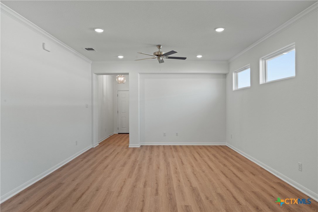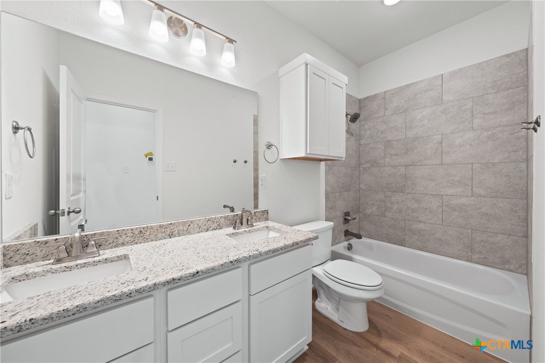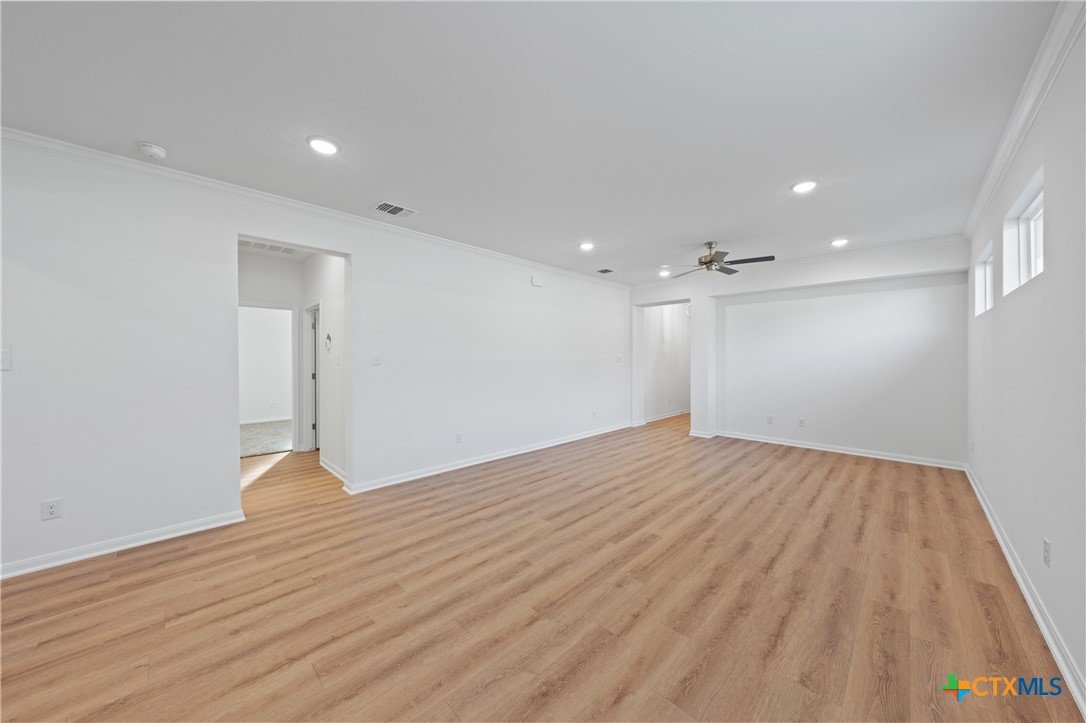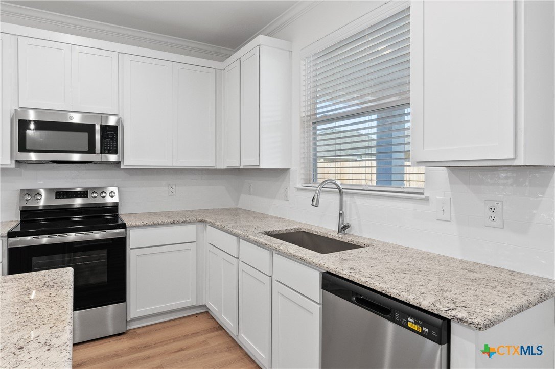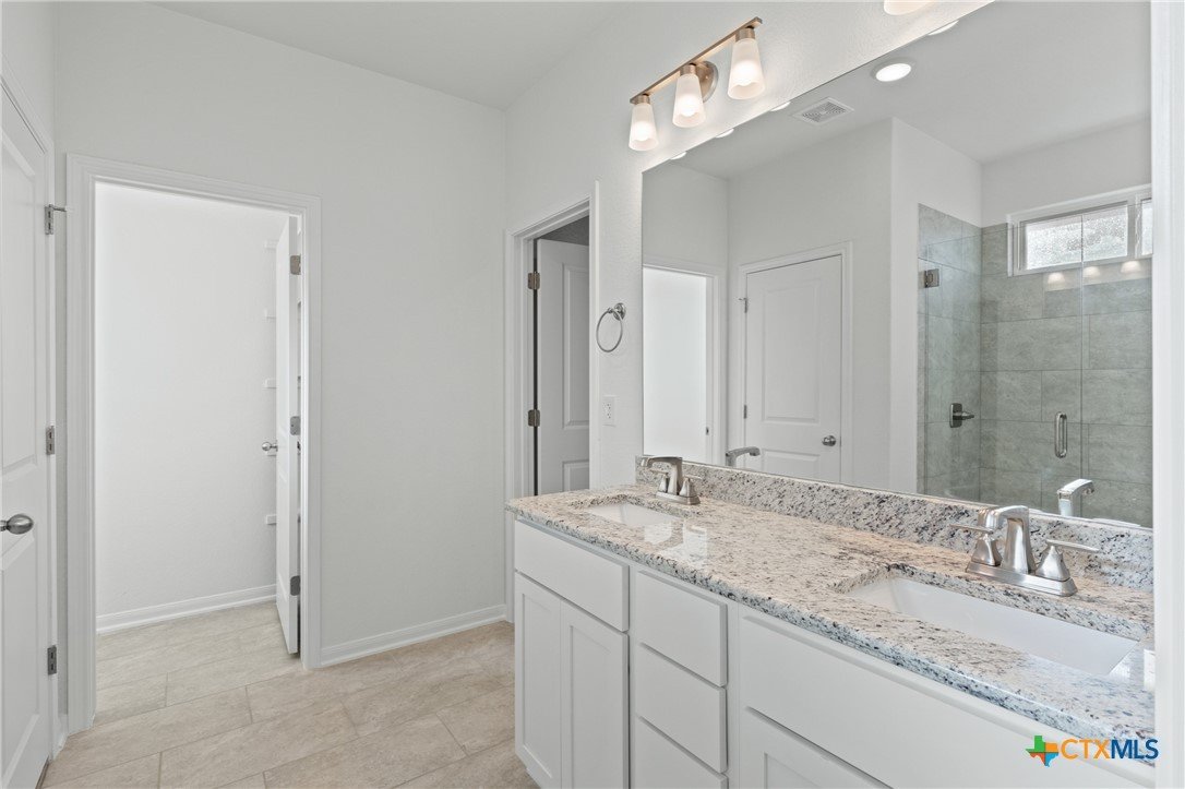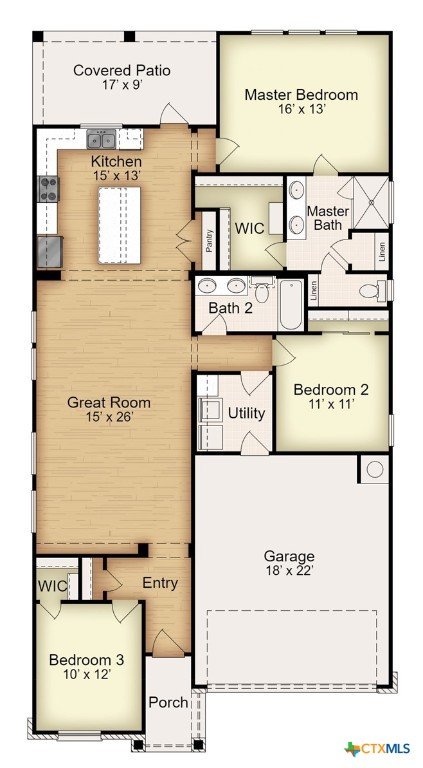 The Bellaire floor plan offers a suitable living space with three bedrooms and two bathrooms across 1,563 square feet. It provides a spacious open-concept layout across the family room, dining, and kitchen, making it ideal for living and entertaining. The kitchen includes stainless steel appliances and a large pantry with ample storage space, while the primary suite has dual vanity sinks, a private water closet, and a spacious walk-in primary closet. Relax in the spacious primary suite, then enjoy beautiful Texas sunsets on the covered patio!