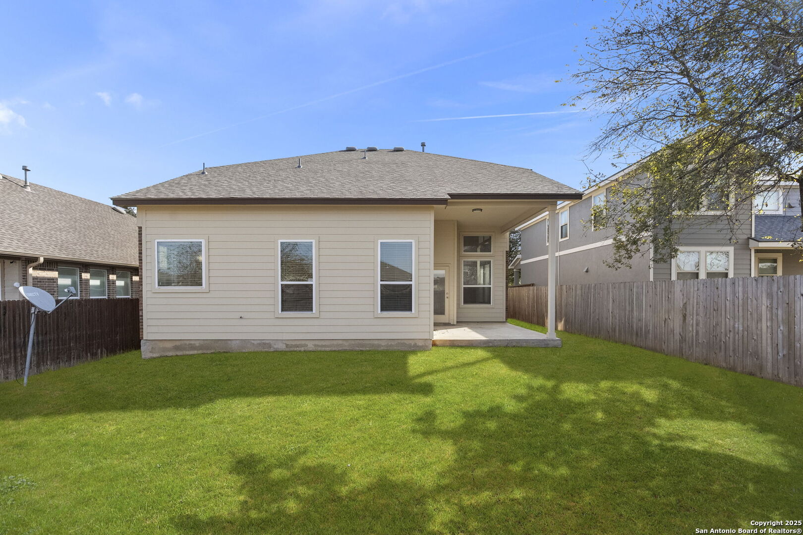 This beautifully maintained 4 bedroom, 2.5 bathroom home offers a functional layout with thoughtful updates throughout. A dedicated study and living area with vaulted ceilings create a welcoming first impression, flowing into a spacious kitchen featuring 42 inch cabinets, granite countertops, stainless steel appliances, and a large island that anchors the eat in kitchen and open dining area. The primary bedroom is conveniently located on the first floor and includes large walk in closets and a well appointed bathroom with a soaking tub and standing shower. Secondary bedrooms all feature walk in closets, while new flooring, fresh paint, and updated light fixtures add a modern touch throughout the home. Built in 2013, this property also offers a covered patio, a well cared for backyard, and a two car garage, all just minutes from shopping, schools, and parks.