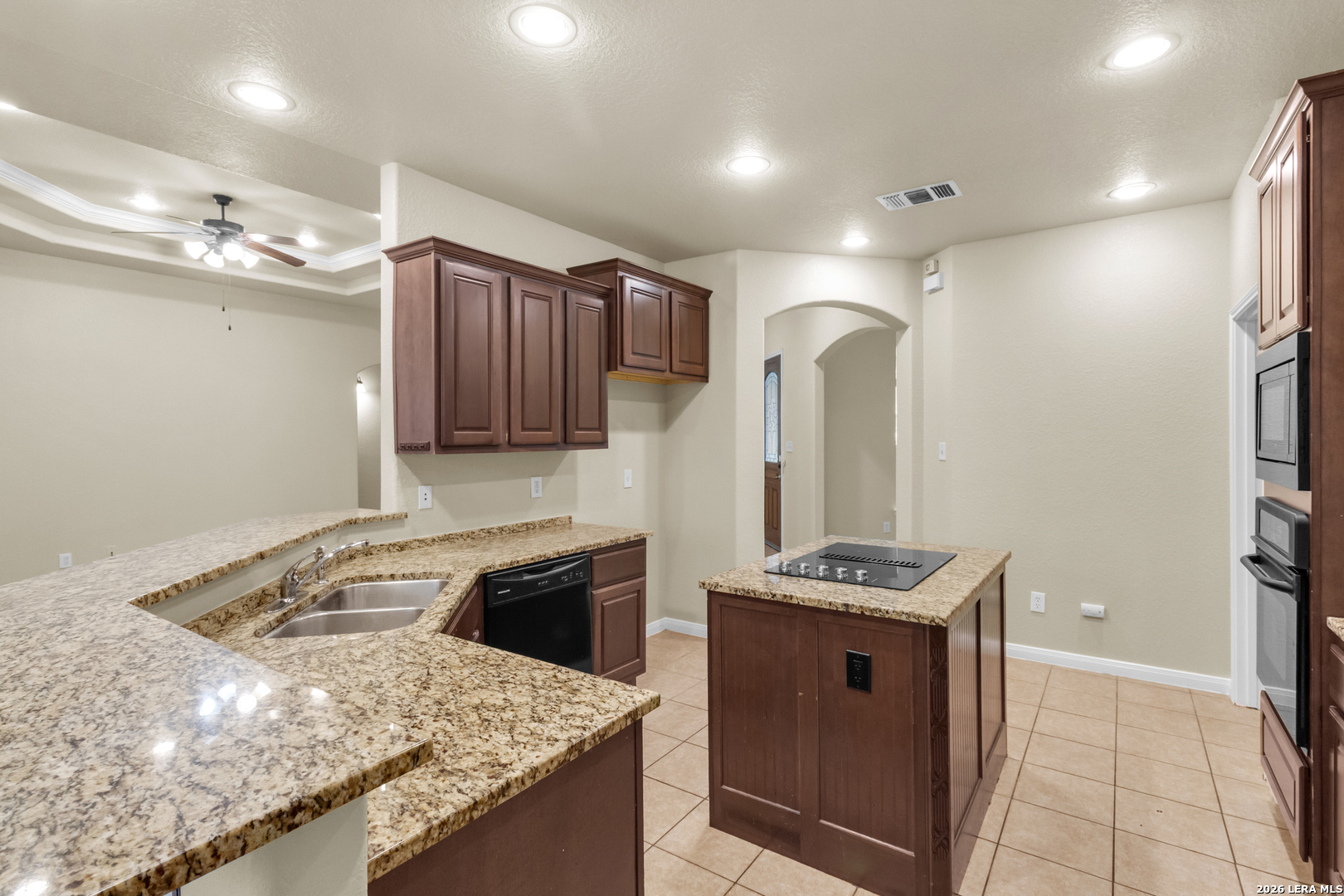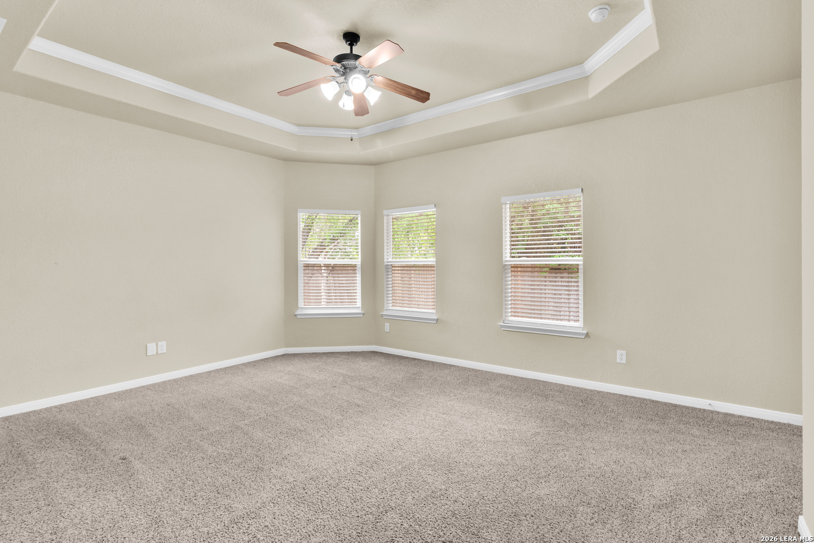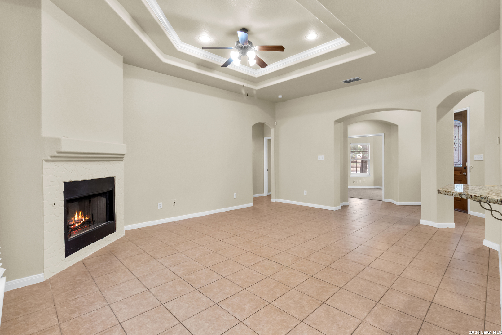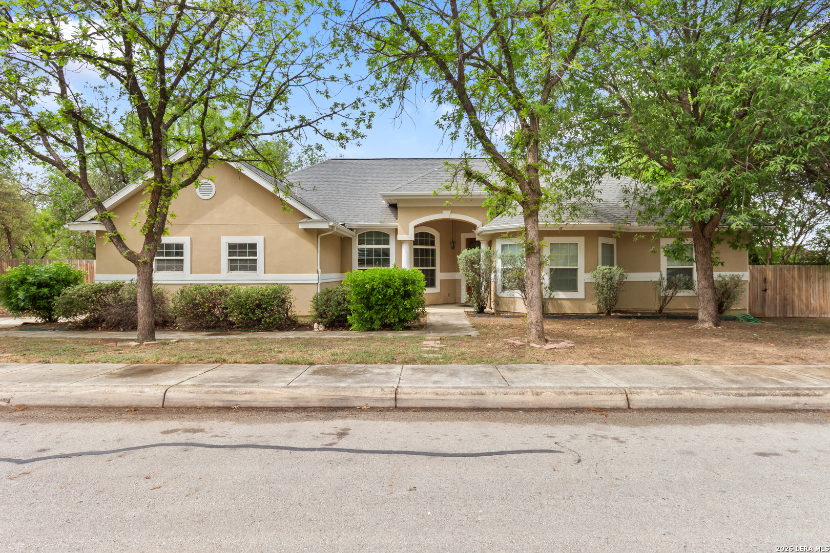 Custom single story home that is stucco on all 4 sides for low maintenance, High ceilings, extensive ceramic tile flooring, fireplace in living room for cozy winter evenings, rounded corners, decorative arches, stair stepped ceilings with crown molding in dining room, living room and primary bedroom, granite countertops with undermount sinks, Separate shower and whirlpool soaker tub along with double vanity in primary bathroom, Enjoy your morning coffee on the covered patio, garage door opener and spacious backyard. Single entrance to street for privacy.