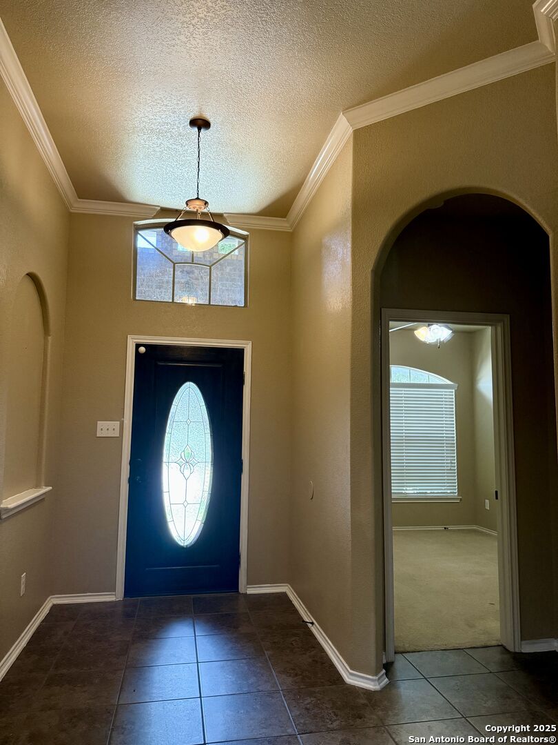 Great open floor plan with 4 bedrooms. large kitchen with island. tile back splash. solid surface counter tops in kitchen with built in appliance double oven , double sinks in master. 4 sides bricks. tile throughout except in bedrooms. tray ceilings. covered patio. full yard landscaped with 4 zones sprinklers.
