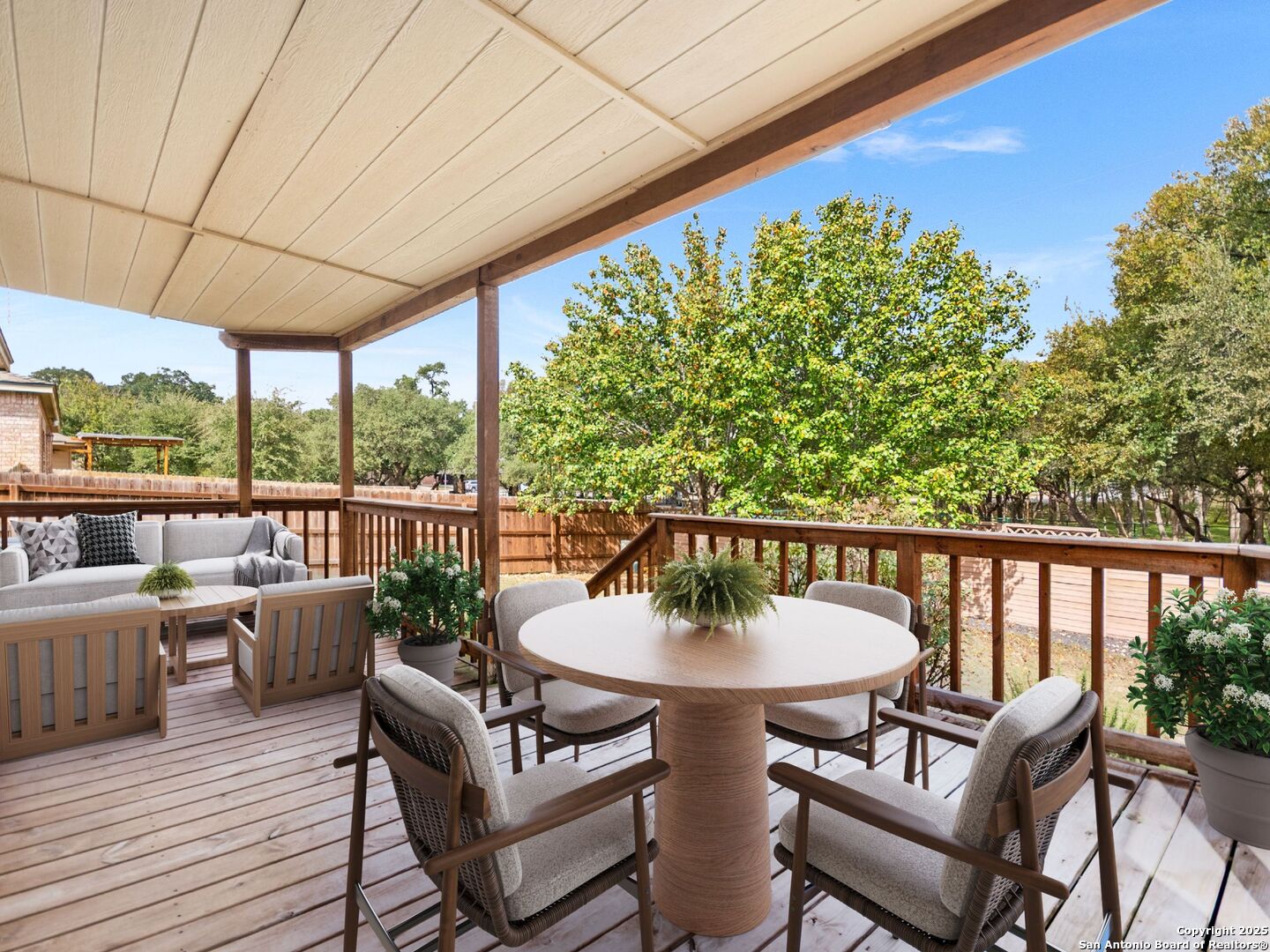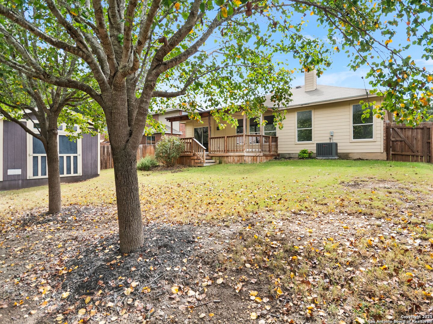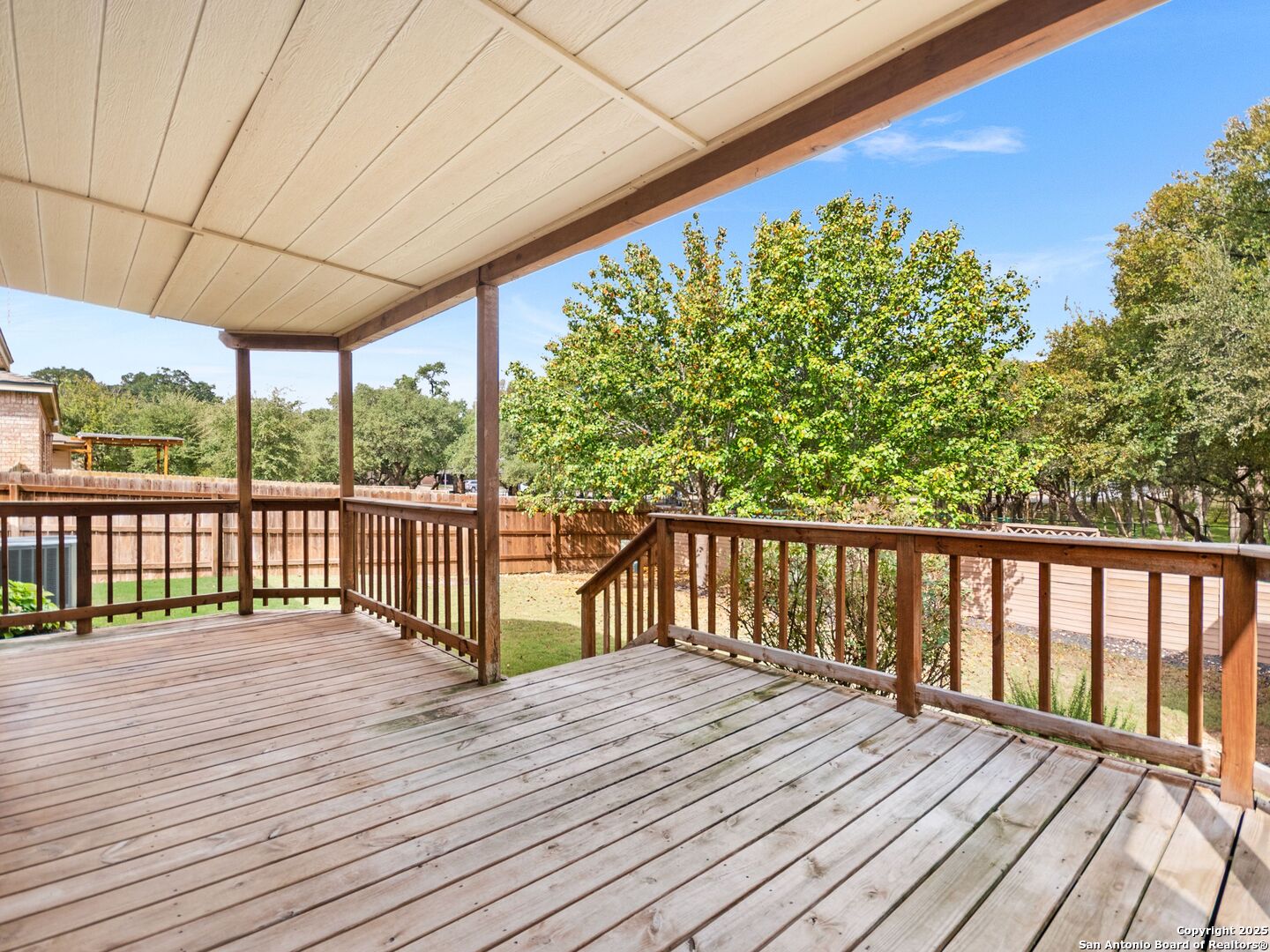 Greenbelt living just minutes from shopping/schools/easy I-10 access! Great one-owner one-story home with fresh paint, neutral colors, and move-in ready. Formal living/dining or could be one large gameroom in the center of the home, while the kitchen/breakfast/greatroom are all open overlooking the backyard. Secluded primary bedroom is huge, with dual walk-in closets, soaking tub, separate shower and dual sinks. The guest rooms are ideally located at the front of the home, away from the main living areas and primary bedroom, offering privacy and separation. Wonderful backyard with oversized covered deck, huge storage building, all fully fenced and overlooking the community amenities/greenspace!