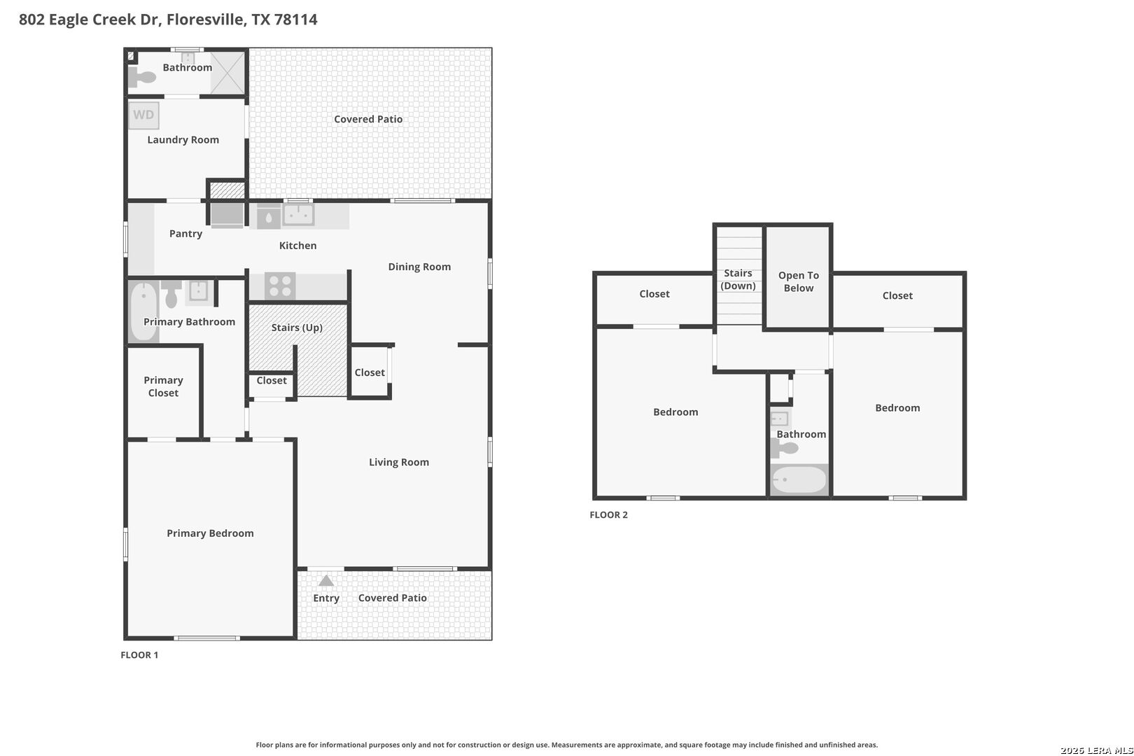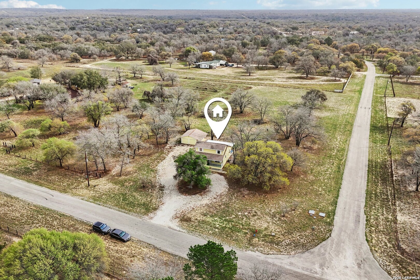 2.21-acre corner lot * Main-level primary bedroom * 2-car detached garage * Video tour and floor plan available. Two-story home in Eagle Creek Ranch with 3 bedrooms, 3 full baths, and approximately 1,704 sq ft. Built in 1993. Primary bedroom is on the main level with a walk-in closet and full bath; secondary bedrooms are upstairs. Separate dining room and utility room inside. Covered patio, circular drive, double-pane windows, composition roof, and a level lot. Central heat and central AC plus an additional window/wall unit. Annual HOA is approximately $60. Approximately 1.8 mi to Spot On Coffee, 1.5 mi to Maverick Grill and Saloon, and 1.6 mi to Lone Star BBQ. Nearby Amenity List Spot On Coffee - 1.8 mi; Maverick Grill and Saloon - 1.5 mi; Lone Star BBQ - 1.6 mi; T's Gourmet Burgers - 1.6 mi; 181 Nutrition - 1.9 mi.