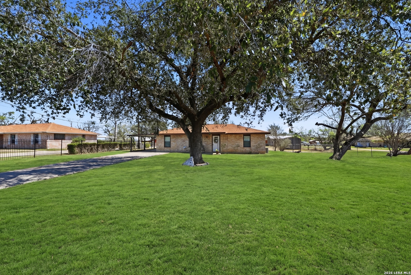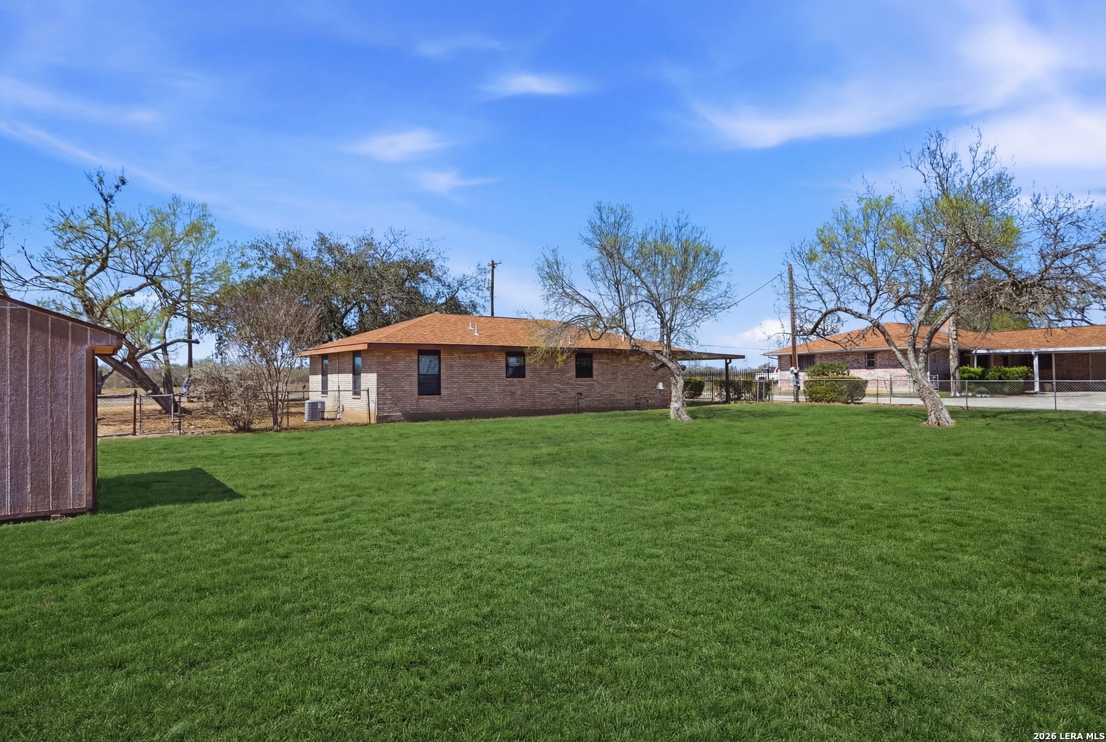 Repairs needed, selling as-is. Amazing potential for the right buyer! No HOA, Updated 3-bedroom, 1-bath home situated on over a HALF-ACRE lot near Calaveras Lake and East Central High School! This property features a durable four-sided brick exterior and an attached covered carport. The 3rd bedroom (converted garage) offers generous space and flexibility, making it perfect for a second living area, home office, or flex room complete with built-in shelving. The kitchen is spacious and well-equipped with updated cabinets offering plenty of storage, GRANITE countertops, tiled backsplash, and a gas stove. The renovated full bathroom includes a tiled tub/shower combo. Step outside to enjoy the large fenced backyard complete with a storage shed, offering plenty of room for outdoor activities, gardening, or pets. Windows updated in 2018, new roof in 2022. Conveniently located near the High school and just five minutes from the Elementary and Middle schools, this home offers both comfort and accessibility. Don't miss out on this one!
