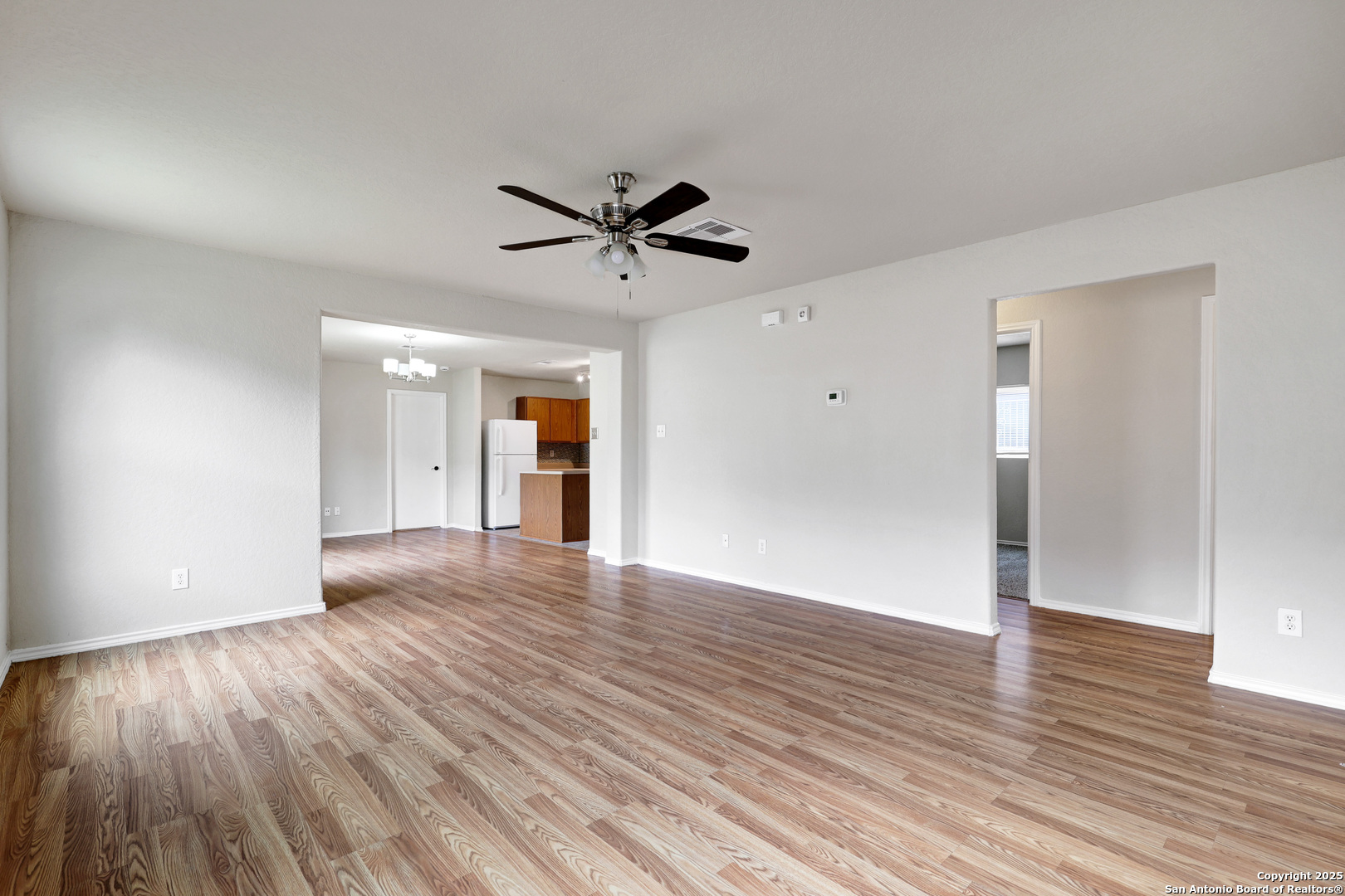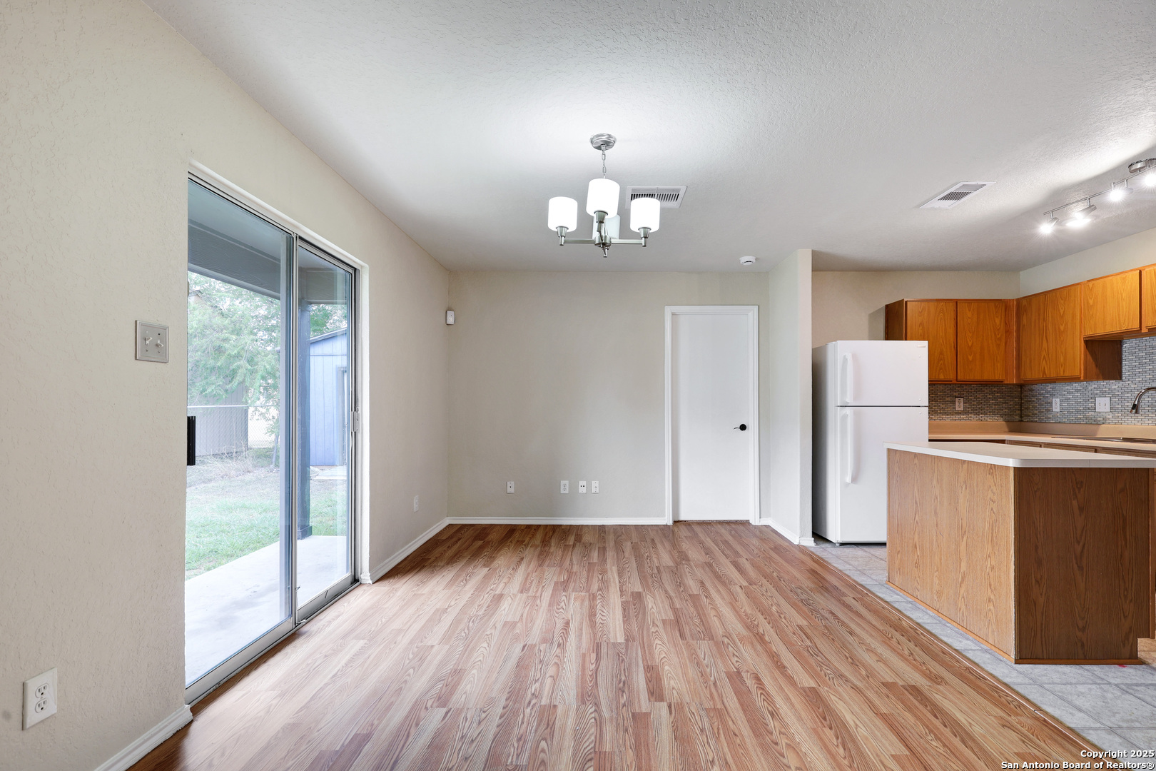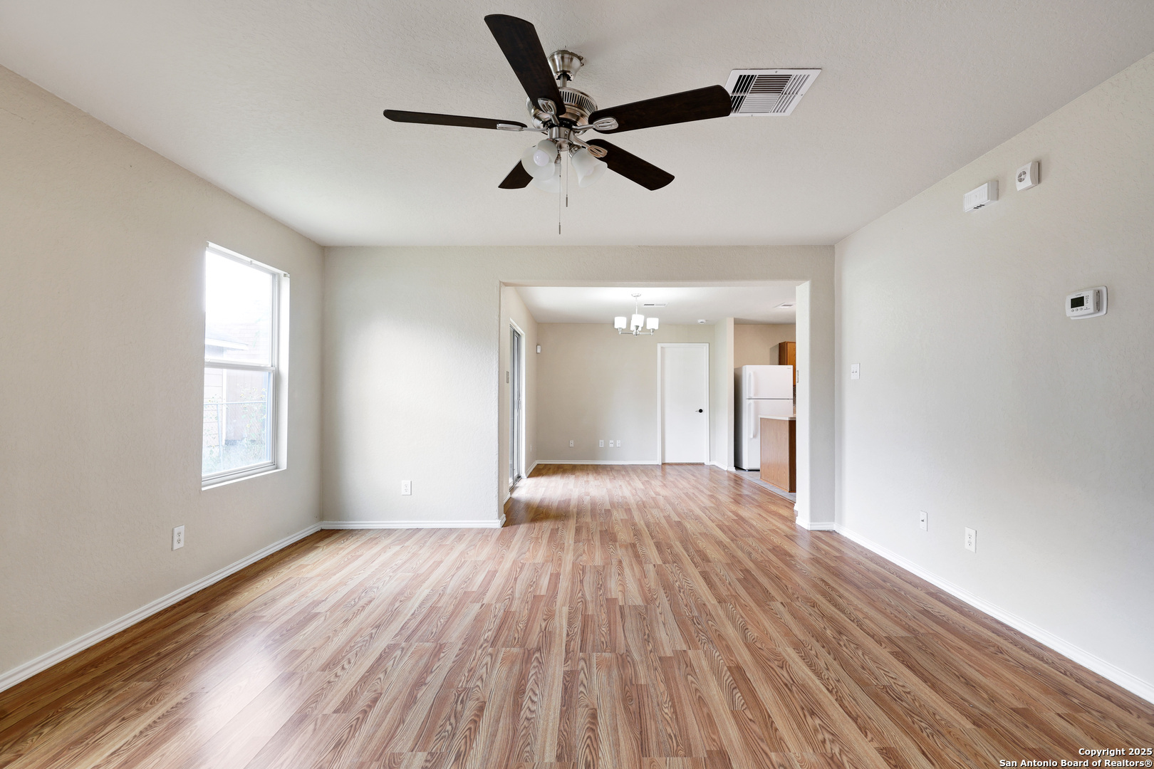 ***MOVE-IN SPECIAL: ONE WEEK FREE***Step into this freshly updated single-story residence located within the sought-after Northside school district. With brand new interior paint and flooring throughout the living room, dining area, and all four bedrooms, this home offers a clean and modern living experience. A converted garage provides an additional bedroom, creating a flexible layout ideal for maximizing space. Ceiling fans in every bedroom and common area enhance year-round comfort. The well-equipped kitchen includes a refrigerator for added convenience. Outside, enjoy a covered patio with no rear neighbors for extra privacy, plus an outdoor shed perfect for lawn equipment or additional storage. Move-in ready and designed for effortless living.