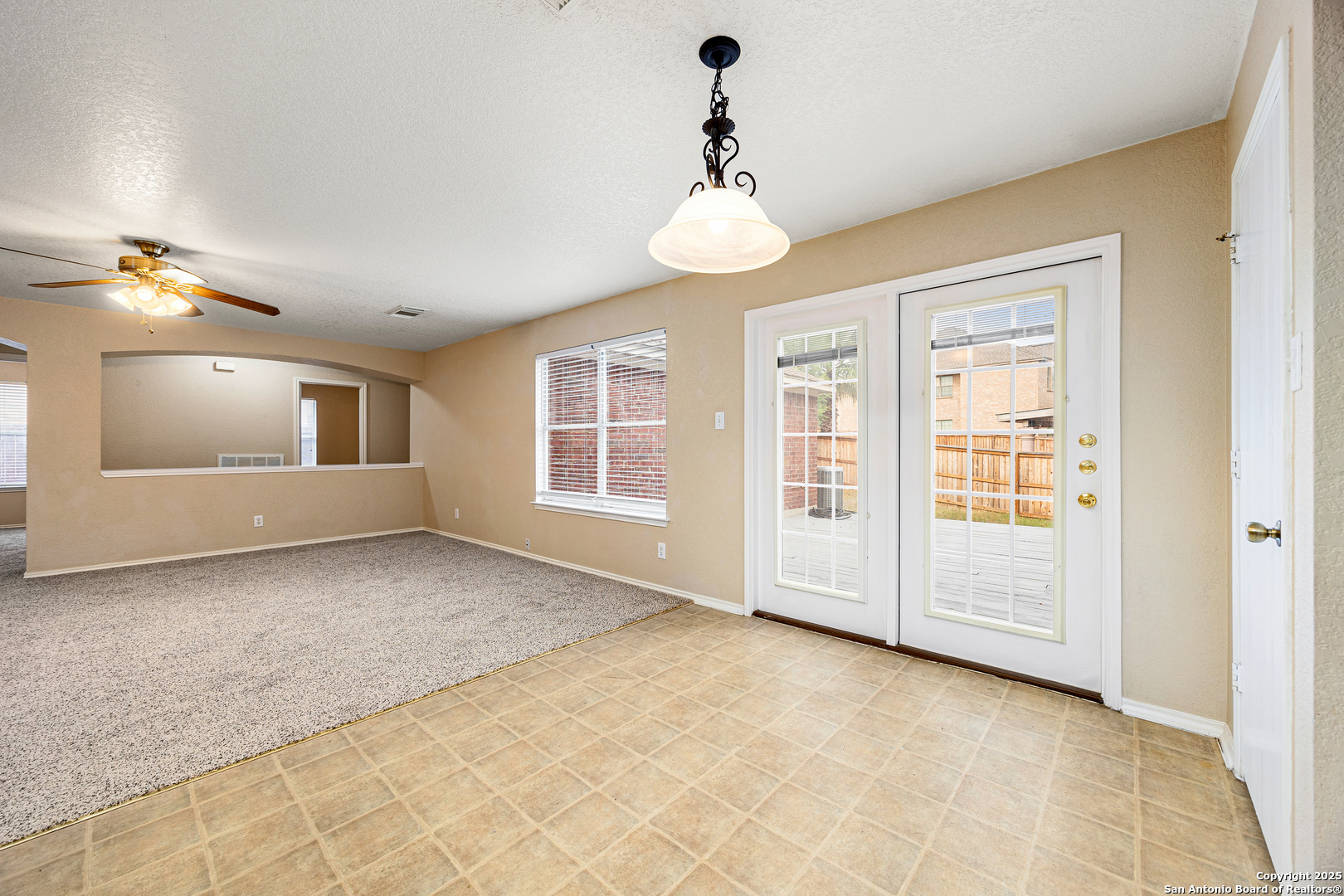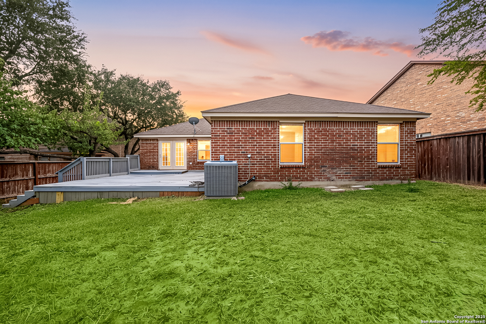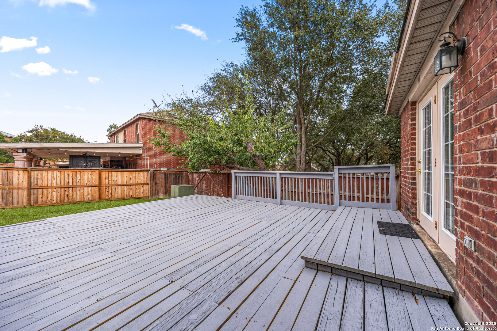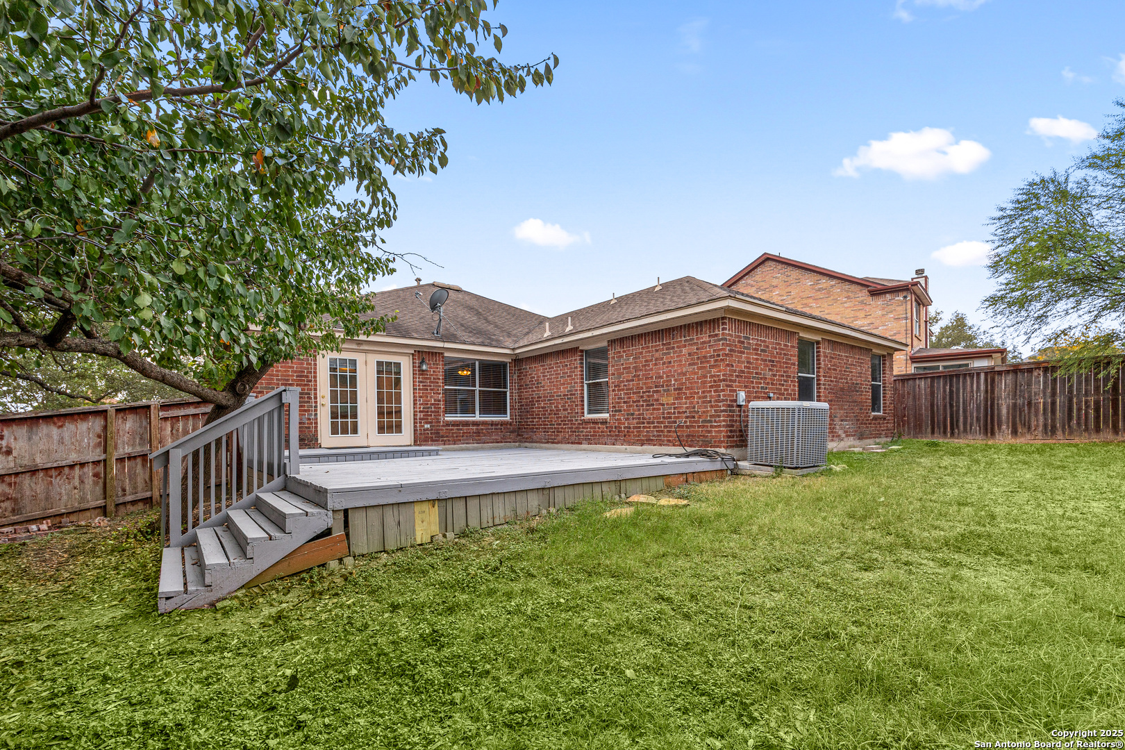 This beautiful, move-in ready one-story home in Champion Springs offers comfort, space, and practical living. This 3-bedroom, 2-bath layout features neutral tones throughout and an open floorplan that makes everyday living easy. The living and dining areas flow together seamlessly, creating a welcoming space for gatherings. A spacious island kitchen provides plenty of room for meal prep and storage. Fresh new carpet adds to the home's clean and updated feel, and the freshly painted deck is ready for outdoor enjoyment. A flexible room located just off the living area offers options for your lifestyle. It can serve as a home office, hobby room, or be converted into a fourth bedroom if needed. The home also offers two living areas, giving you additional room to spread out. Both full bathrooms include dual sinks for added convenience. The primary bath features a large soaking tub and a separate walk-in shower, creating a relaxing retreat at the end of the day. Outside, the backyard provides a lawn, mature trees, and a welcoming deck, ideal for entertaining or unwinding. The location is hard to beat-close to shopping, schools, restaurants, and major roadways including Stone Oak Parkway and US-281. Don't miss this opportunity to make this your next home. Schedule your personal tour today!