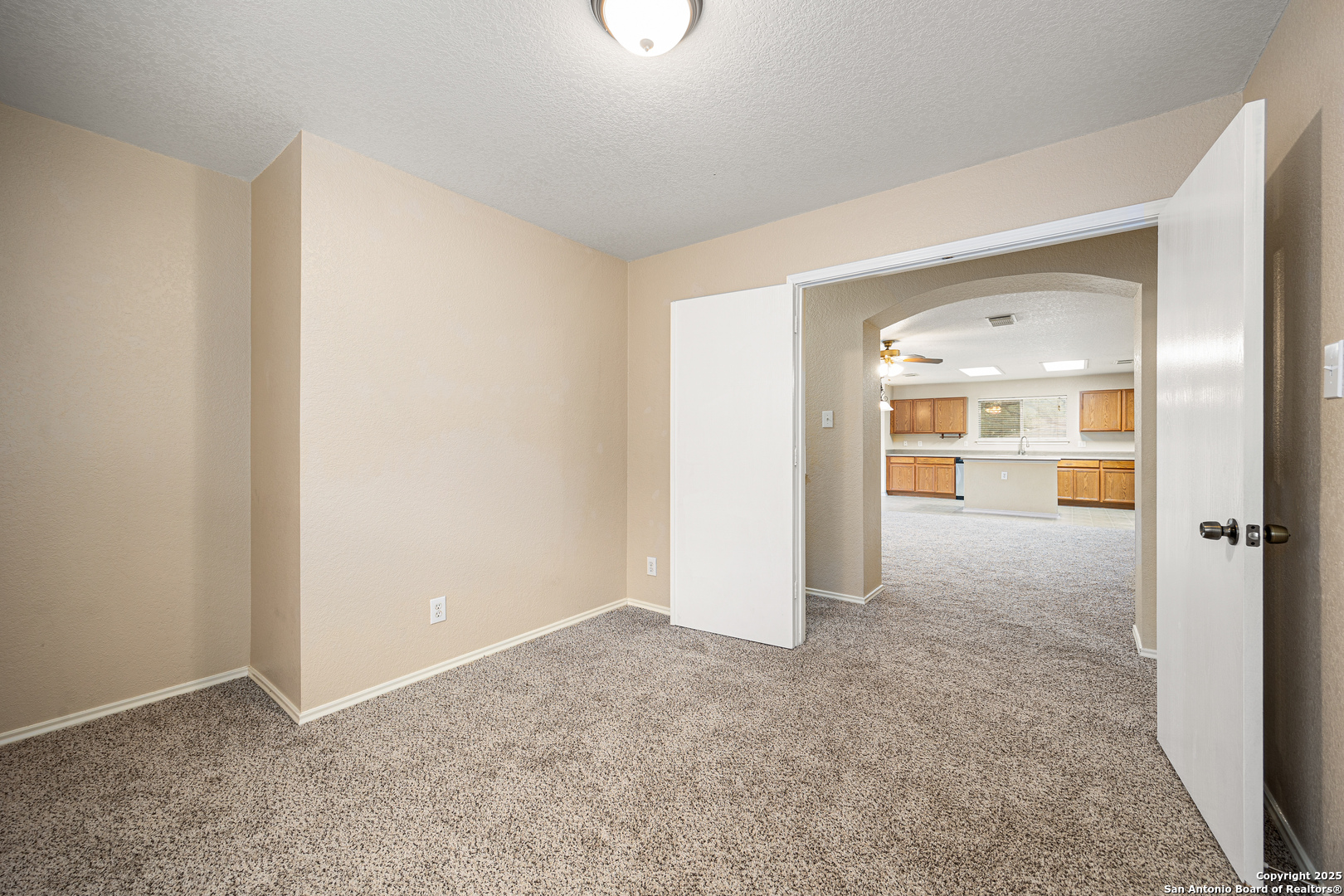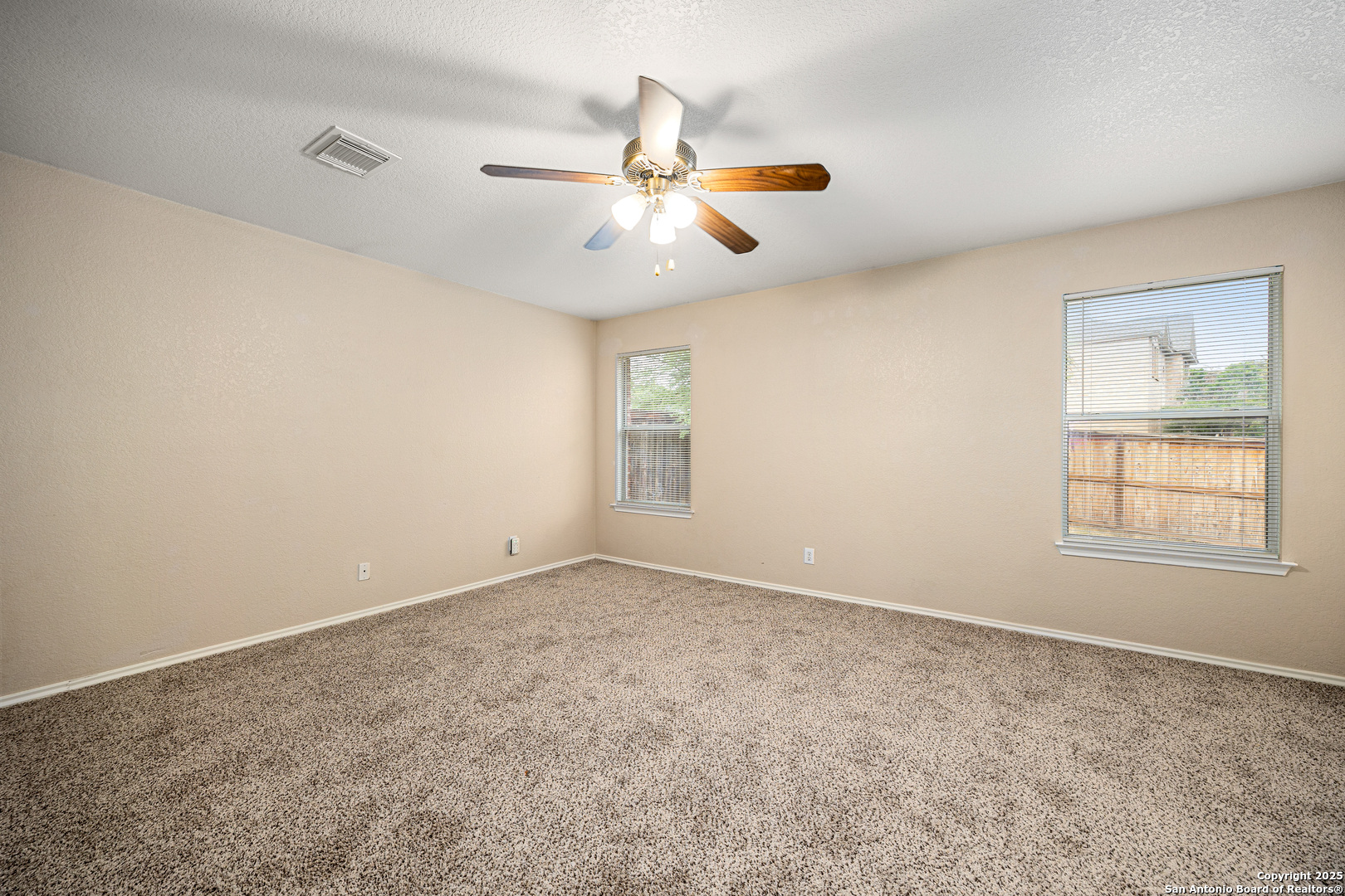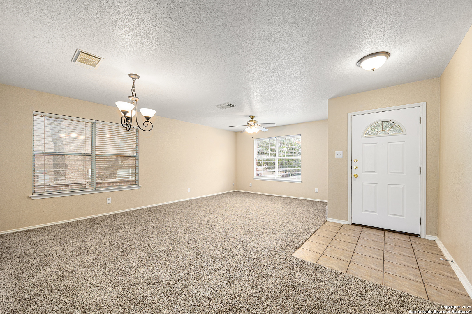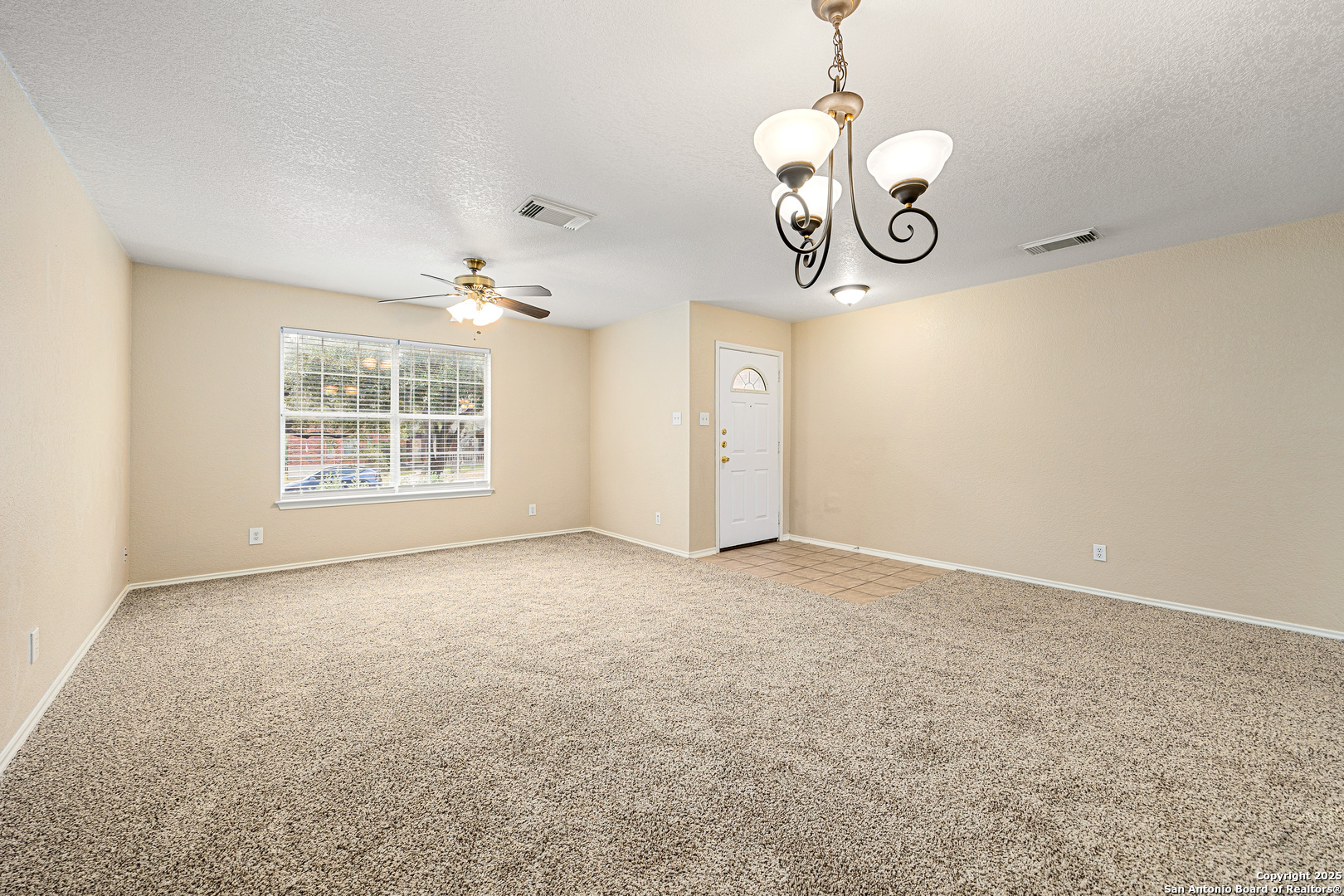 This beautiful, move-in ready one-story home in Champion Springs offers comfort, space, and practical living. This 3-bedroom, 2-bath layout features neutral tones throughout and an open floorplan that makes everyday living easy. The living and dining areas flow together seamlessly, creating a welcoming space for gatherings. A spacious island kitchen provides plenty of room for meal prep and storage. Fresh new carpet adds to the home's clean and updated feel, and the freshly painted deck is ready for outdoor enjoyment. A flexible room located just off the living area offers options for your lifestyle. It can serve as a home office, hobby room, or be converted into a fourth bedroom if needed. The home also offers two living areas, giving you additional room to spread out. Both full bathrooms include dual sinks for added convenience. The primary bath features a large soaking tub and a separate walk-in shower, creating a relaxing retreat at the end of the day. Outside, the backyard provides a lawn, mature trees, and a welcoming deck, ideal for entertaining or unwinding. The location is hard to beat-close to shopping, schools, restaurants, and major roadways including Stone Oak Parkway and US-281. Don't miss this opportunity to make this your next home. Schedule your personal tour today!