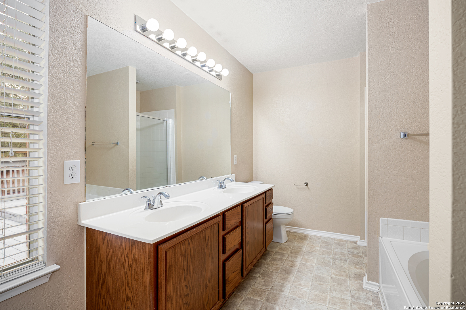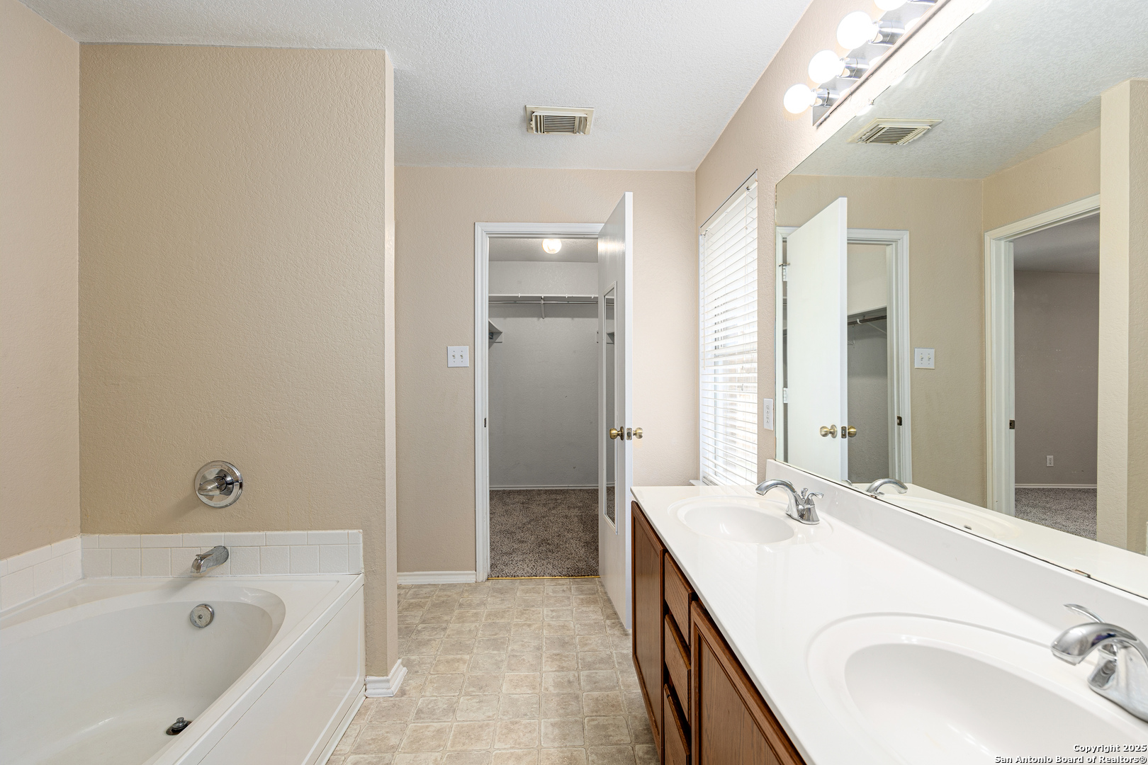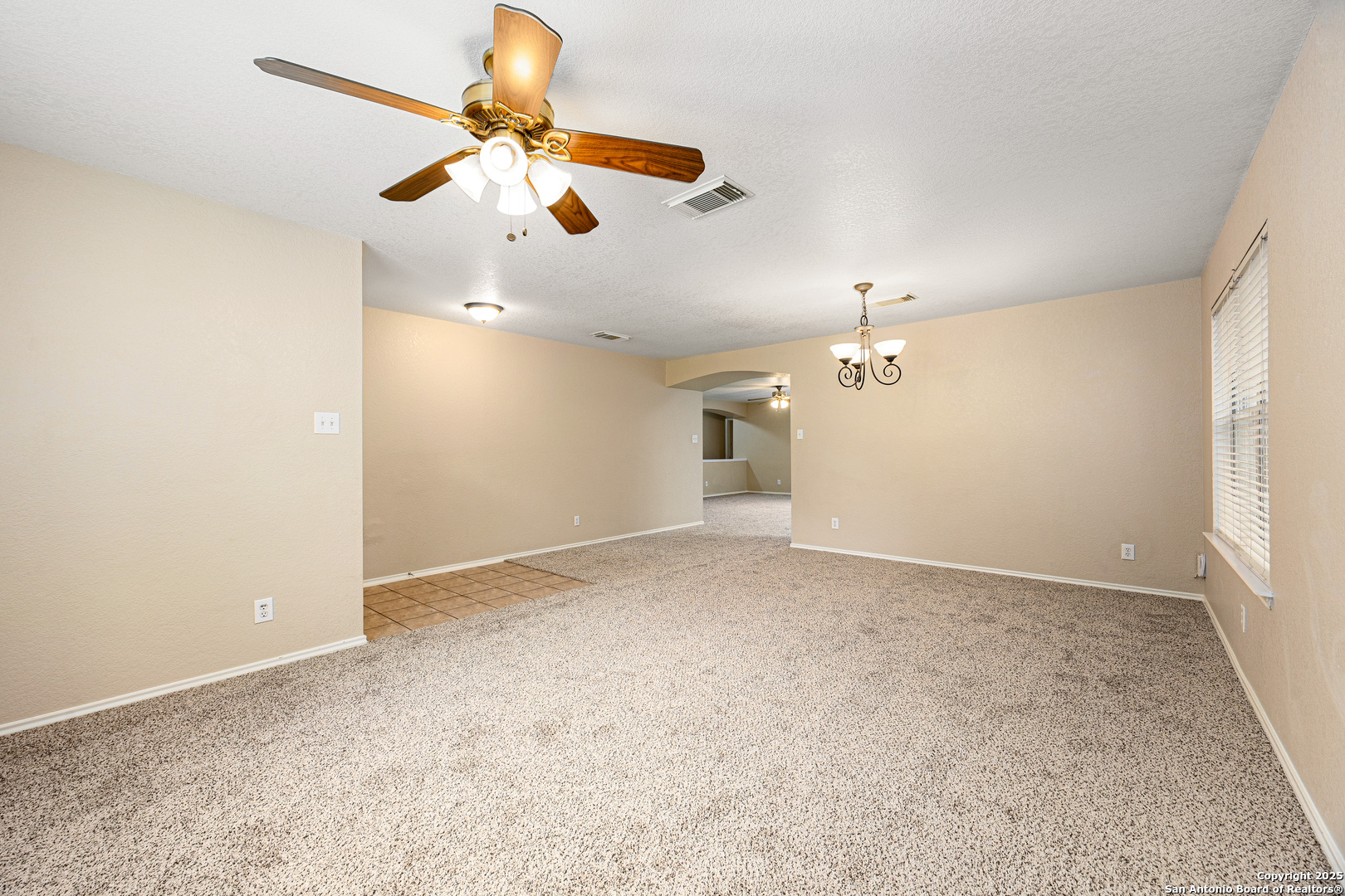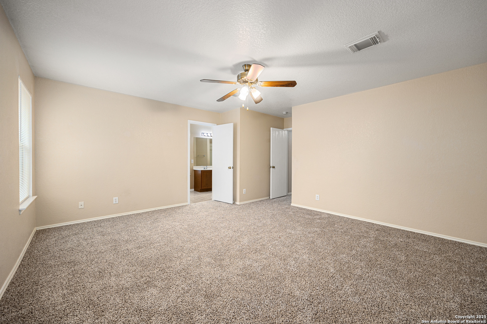 This beautiful, move-in ready one-story home in Champion Springs offers comfort, space, and practical living. This 3-bedroom, 2-bath layout features neutral tones throughout and an open floorplan that makes everyday living easy. The living and dining areas flow together seamlessly, creating a welcoming space for gatherings. A spacious island kitchen provides plenty of room for meal prep and storage. Fresh new carpet adds to the home's clean and updated feel, and the freshly painted deck is ready for outdoor enjoyment. A flexible room located just off the living area offers options for your lifestyle. It can serve as a home office, hobby room, or be converted into a fourth bedroom if needed. The home also offers two living areas, giving you additional room to spread out. Both full bathrooms include dual sinks for added convenience. The primary bath features a large soaking tub and a separate walk-in shower, creating a relaxing retreat at the end of the day. Outside, the backyard provides a lawn, mature trees, and a welcoming deck, ideal for entertaining or unwinding. The location is hard to beat-close to shopping, schools, restaurants, and major roadways including Stone Oak Parkway and US-281. Don't miss this opportunity to make this your next home. Schedule your personal tour today!