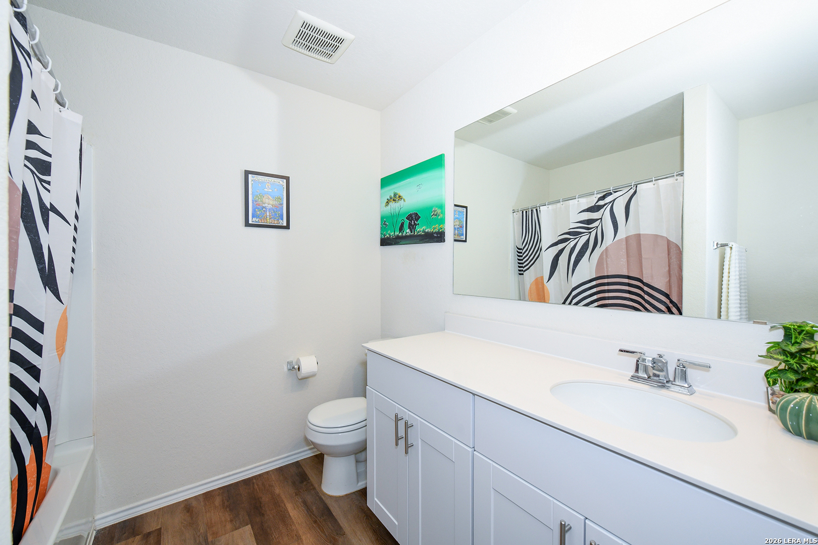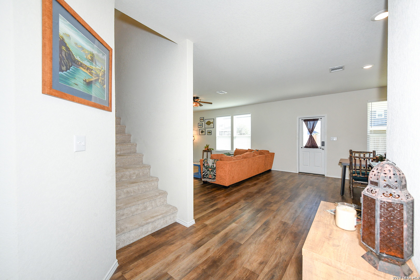 This spacious two-story Kisko (Centex Homes) is only 3 years old and features nine-foot ceilings, an open layout on the first floor and a Game Room, two secondary bedrooms, and spacious Owner's Suite at the second floor. The primary ensuite bath features a walk-in shower and double vanity. The fourth bedroom with a full bath is downstairs. The kitchen has SS appliances, white 36" kitchen cabinets and granite countertops. Wood vinyl plank is throughout downstairs with soft carpet upstairs. Priced below $300,000 makes this a great value in a desirable area.