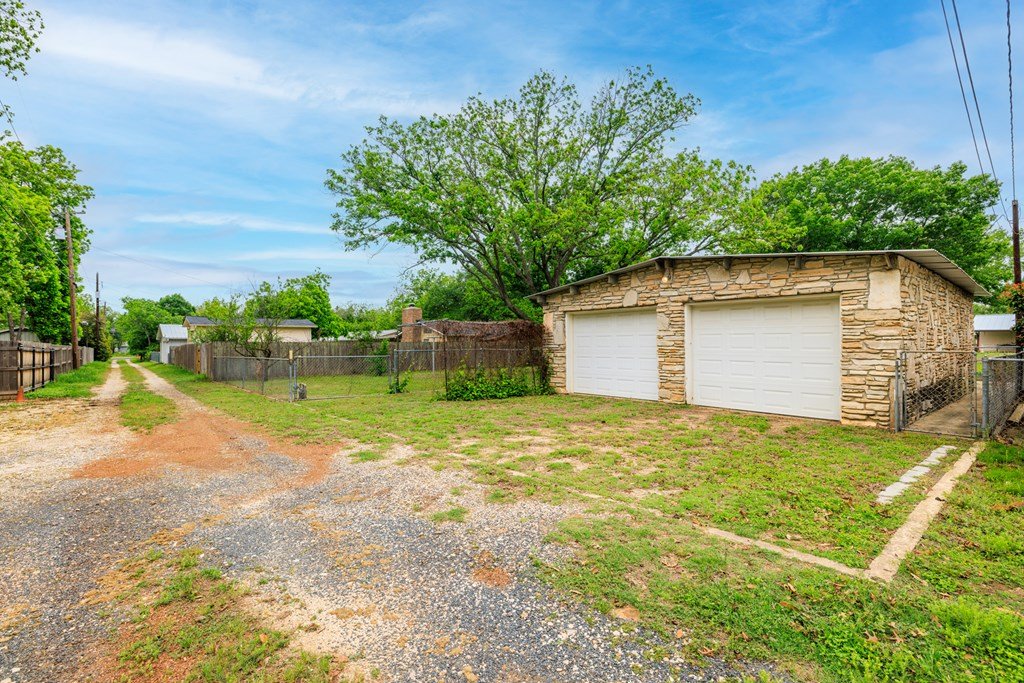 Just 3 minutes from Main Street, this charming property in Gillespie County is packed with potential! Nestled on a spacious lot adorned with mature Oak Trees, this 3-bedroom, 1.5-bath home offers a blank canvas for your personal touch. This is the perfect fixer-upper project for the right buyer, with good bones, a large backyard, and a detached double garage with alley access, the possibilities here are endless. Create a cozy personal retreat or a valuable investment in one of Texas Hill Country's most desirable towns. Located close to schools, downtown Fredericksburg, and all the charm the city has to offer—this property is a rare find at this price point. If you're looking for a project with promise, this property is ready for a fresh start—and for you to make it your own.