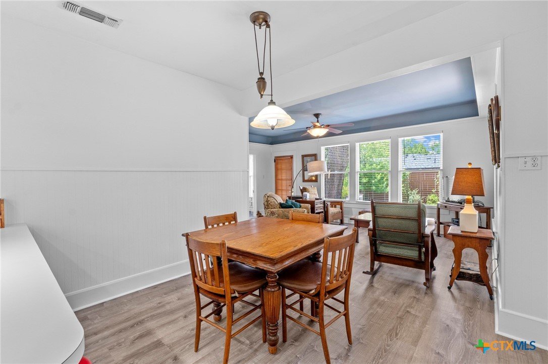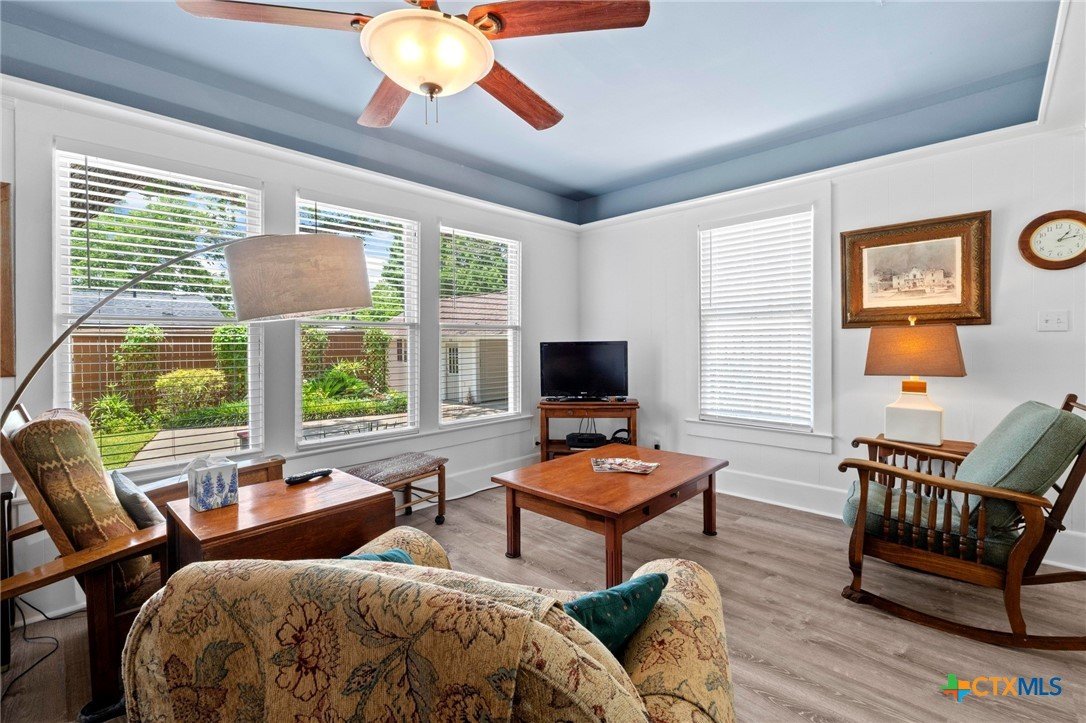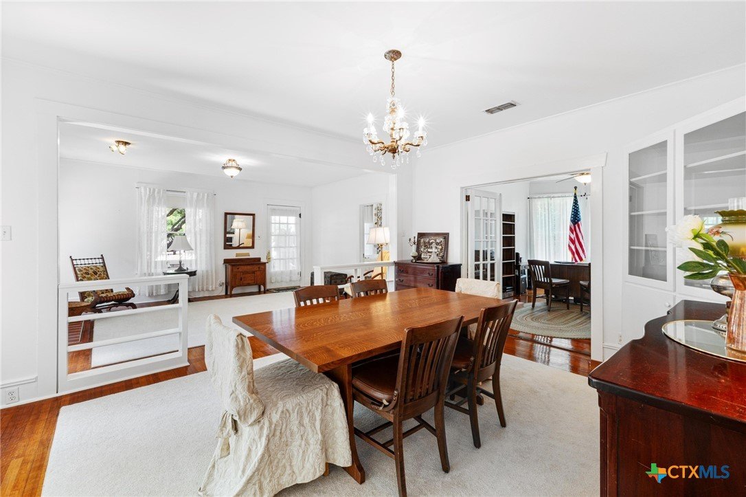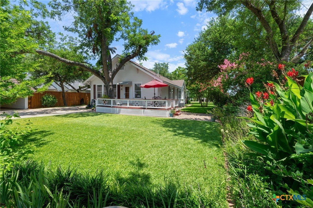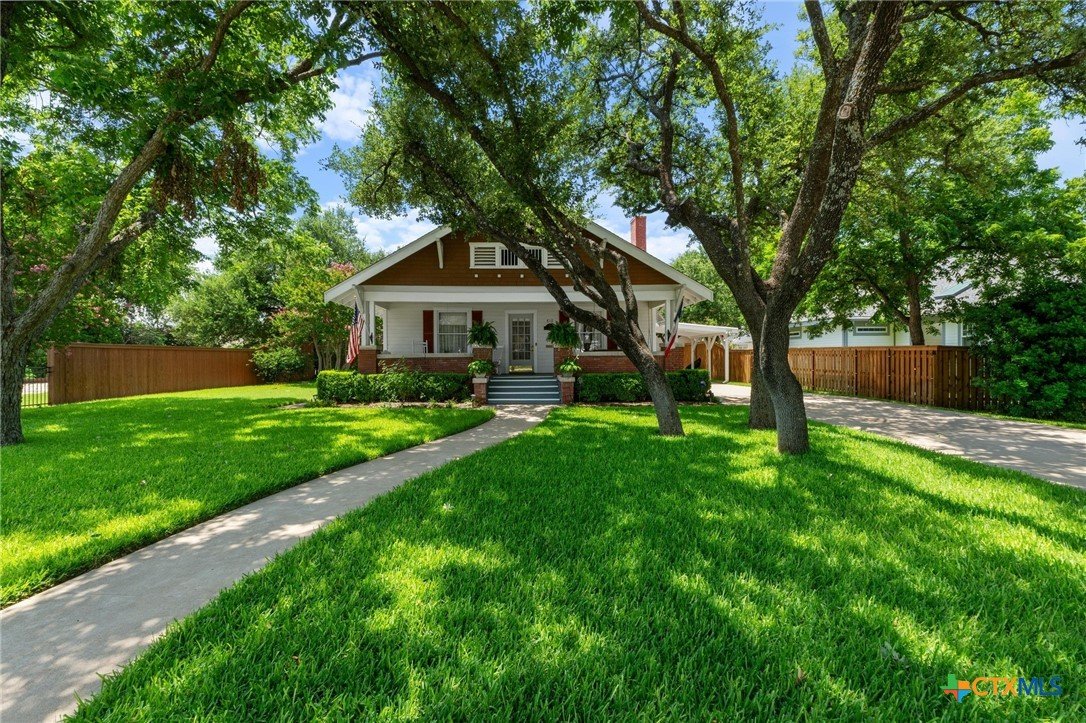 This historically designated home on a spectacularly landscaped property is situated on a premier "Old Town" location. Watch the world go by from the large front porch. This gorgeous historic home built in 1925 was owned by Henry Meyer Dean of the school of music at South Western University. The living spaces are larger, ceilings high and the home is designed to provide wonderful views from every space. The home has 2 central units created 2 separate zones. The kitchen is the hub of the home and boasts lots of storage and a great breakfast bar. A 2 car carport with attached garage/workshop provides ample space for vehicles and lots of cabinets & storage in the attic. Another outbuilding is the perfect home for lawn equipment and a potting shed. The rear of the property backs to 13th street and the back driveway is perfect for a large RV or travel trailer. The yard boasts giant old oak & pecan trees and a meticulously sculpted landscape with multiple layers of flowering plants, all nurtured by the full irrigation system. There is also a side porch and back porch with extended deck to enjoy the beautiful back yard. Located on University Ave. just catty-corner from South Western University, walking distance to the Square and courthouse and all things cool in Georgetown.