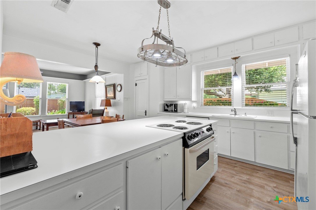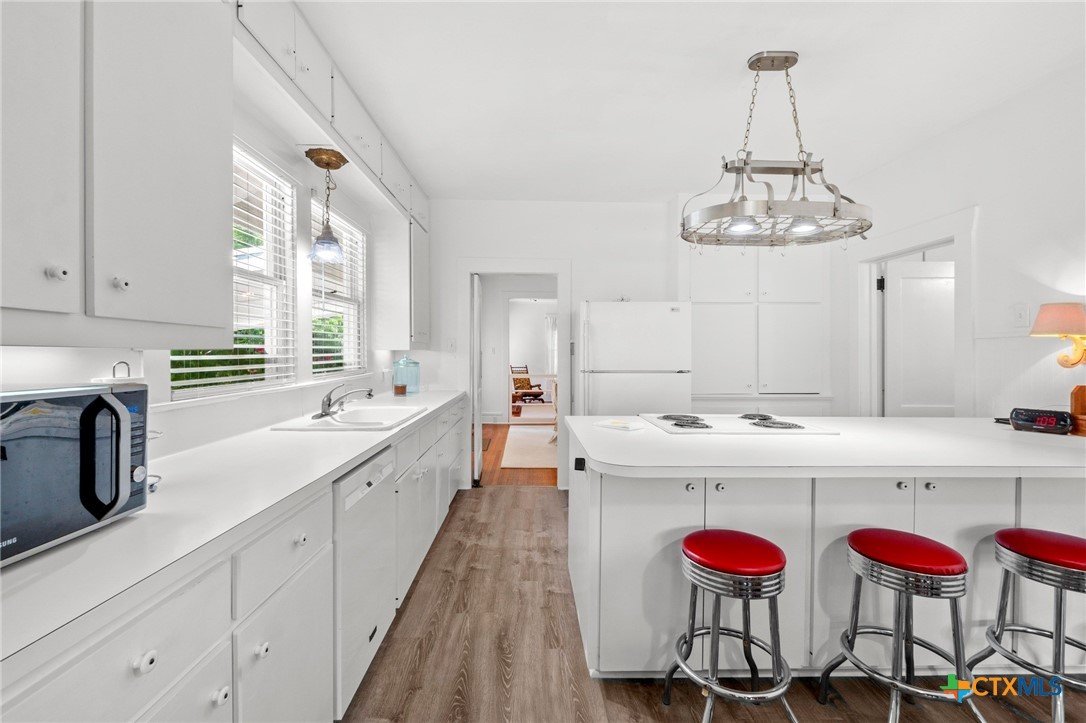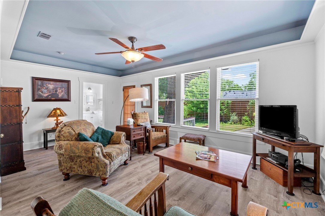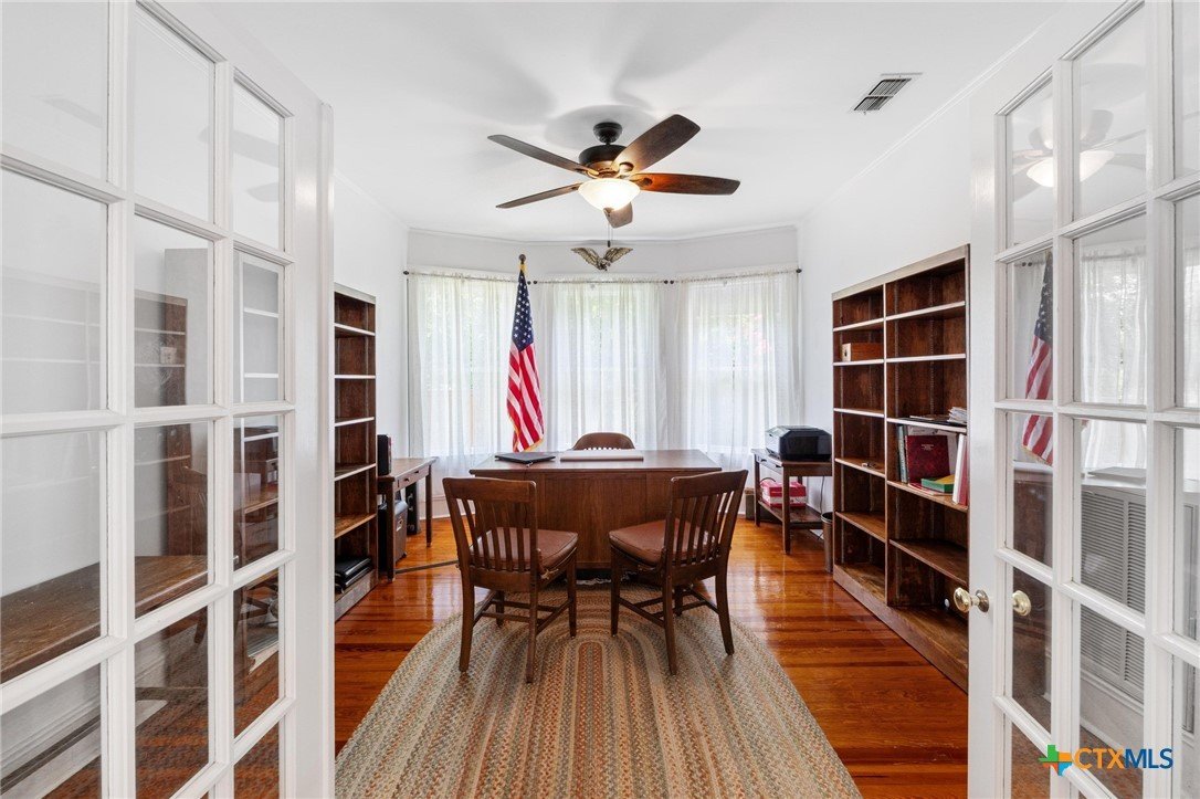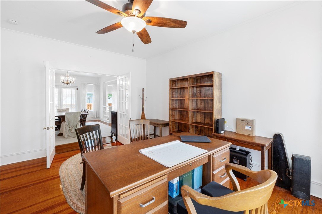 This historically designated home on a spectacularly landscaped property is situated on a premier "Old Town" location. Watch the world go by from the large front porch. This gorgeous historic home built in 1925 was owned by Henry Meyer Dean of the school of music at South Western University. The living spaces are larger, ceilings high and the home is designed to provide wonderful views from every space. The home has 2 central units created 2 separate zones. The kitchen is the hub of the home and boasts lots of storage and a great breakfast bar. A 2 car carport with attached garage/workshop provides ample space for vehicles and lots of cabinets & storage in the attic. Another outbuilding is the perfect home for lawn equipment and a potting shed. The rear of the property backs to 13th street and the back driveway is perfect for a large RV or travel trailer. The yard boasts giant old oak & pecan trees and a meticulously sculpted landscape with multiple layers of flowering plants, all nurtured by the full irrigation system. There is also a side porch and back porch with extended deck to enjoy the beautiful back yard. Located on University Ave. just catty-corner from South Western University, walking distance to the Square and courthouse and all things cool in Georgetown.