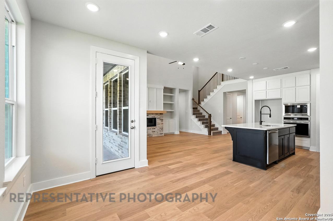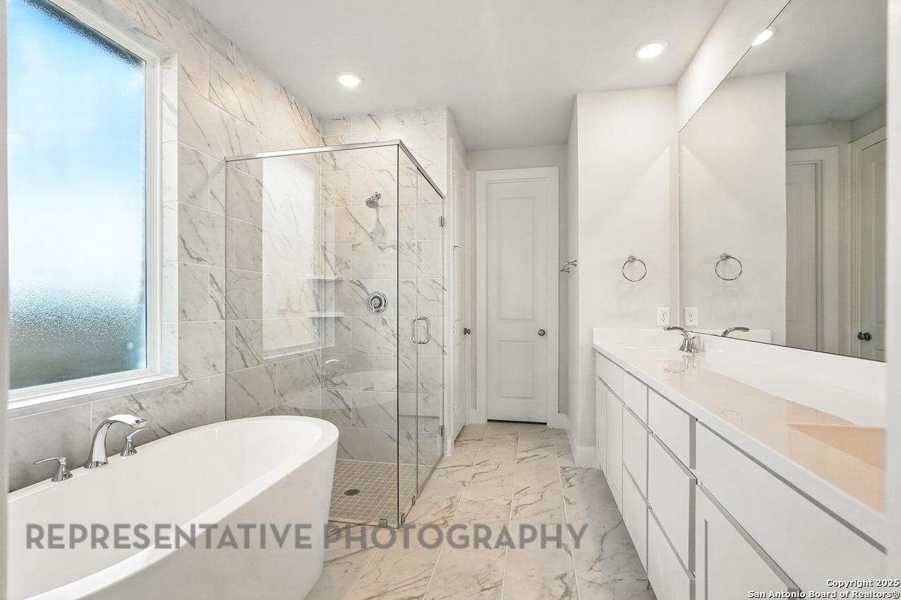 This stunning, 2-story home offers 2826 sq. ft of thoughtfully designed living space with 5 spacious bdrms and 4.5 bath. The home features 2 bdrms on main floor, including a private guest suite. The grand entry, dining and family room boast soaring 20' ceilings, creating an open, light-filled atmosphere. Upstairs, a large gameroom provides ideal space for entertainment. Enjoy the outdoor covered patio overlooking permanent green space. 2 oversized car garage.
