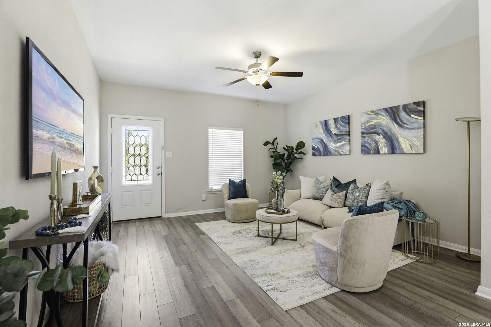 Welcome to this beautifully well maintained 2 story home. Designed for 3-bedroom, 2.5 bathrooms. This house perfectly blends comfort, space, and privacy. Situated in a desirable location, this property offers a rare setting with a small greenbelt directly across the front yard with no homes and added privacy you'll appreciate every day. Step outside to an expansive backyard that truly sets this home apart. Featuring a massive 1,200 square foot patio slab, it's the perfect space for entertaining, outdoor dining, or creating your dream backyard oasis with mature trees, grass and landscaping plenty of room to relax, play, or host gatherings. Inside, the home offers a functional and inviting layout with granite countertops and large kitchen. This home delivers the perfect combination of outdoor space, privacy, and location. Conveniently located with quick access to Culebra and Shaenfield, and just minutes from Loop 1604, you'll enjoy easy commuting along with nearby shopping, dining, and every day.