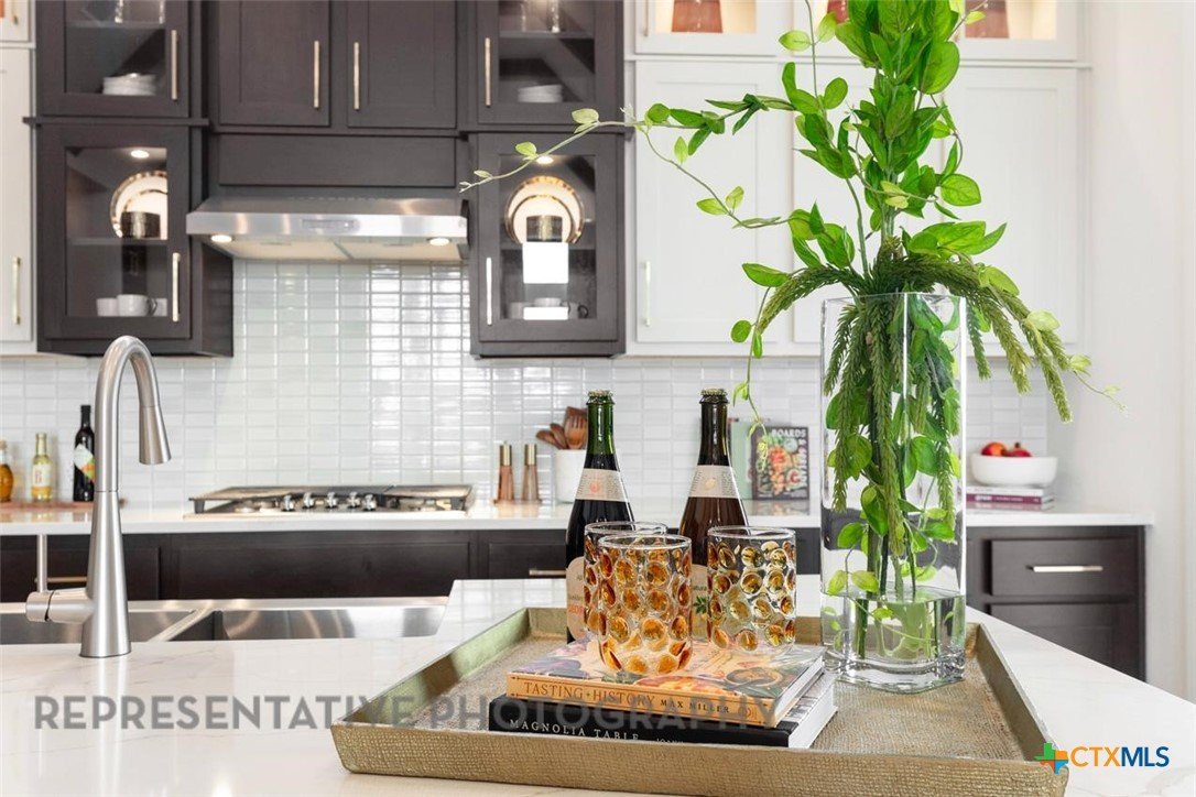 Step into this beautifully crafted 4-bedroom, 3.5-bath home featuring custom finishes and thoughtful design throughout. A private study offers the perfect retreat for work or quiet time, while high ceilings and expansive living areas create an open, airy ambiance. The interior showcases exquisite custom cabinetry that blends style with practicality in every room. The oversized 2-car garage provides generous storage, and the home’s prime corner lot location backs to a permanent green space—offering serene views and enhanced privacy. Whether you're hosting guests or enjoying a quiet evening in, this residence delivers comfort, sophistication, and a connection to nature.