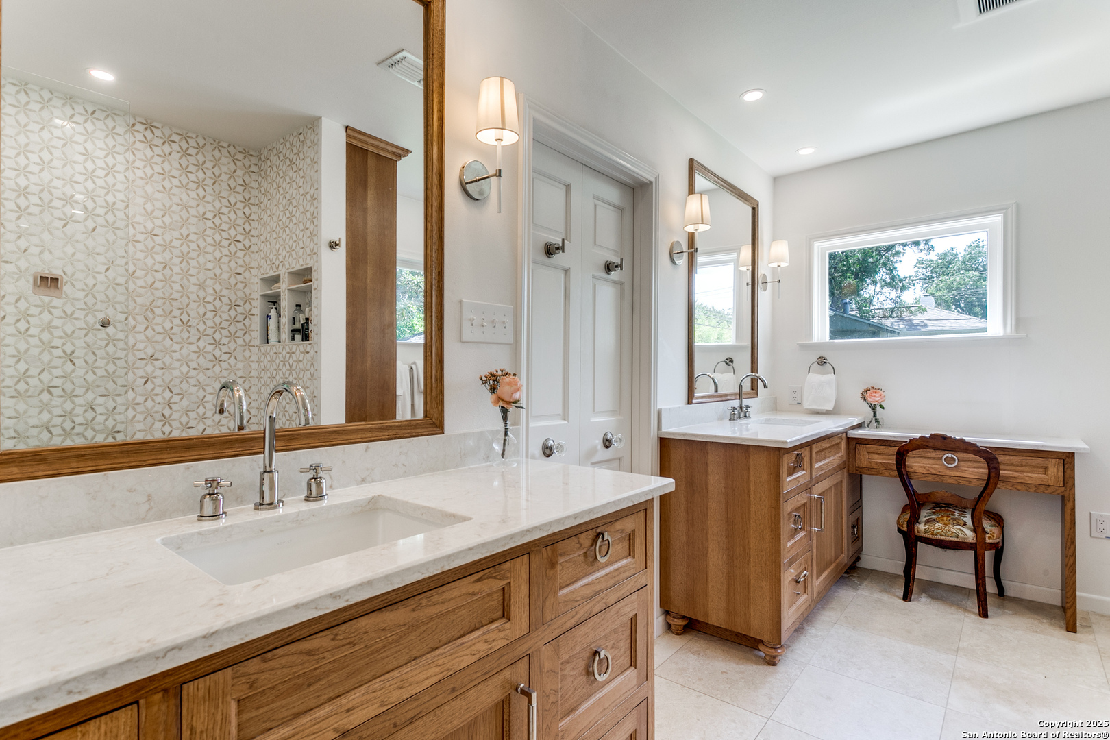 Welcome to 811 Wiltshire, located within the Alamo Heights School District. This single-story home offers 3 spacious bedrooms and 3 bathrooms. Enjoy the charming screened-in front porch, ideal for relaxing or entertaining guests. The large living areas provide plenty of space for gatherings, while the eat-in spacious kitchen is perfect meals. The primary bathroom has been tastefully updated, combining modern comfort with timeless style. A wonderful home in Terrell Hills with a spacious backyard, blending comfort, convenience, and charm.