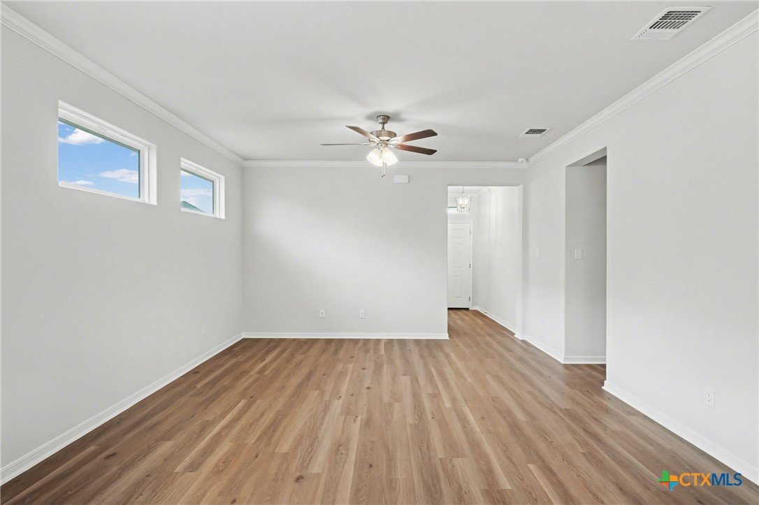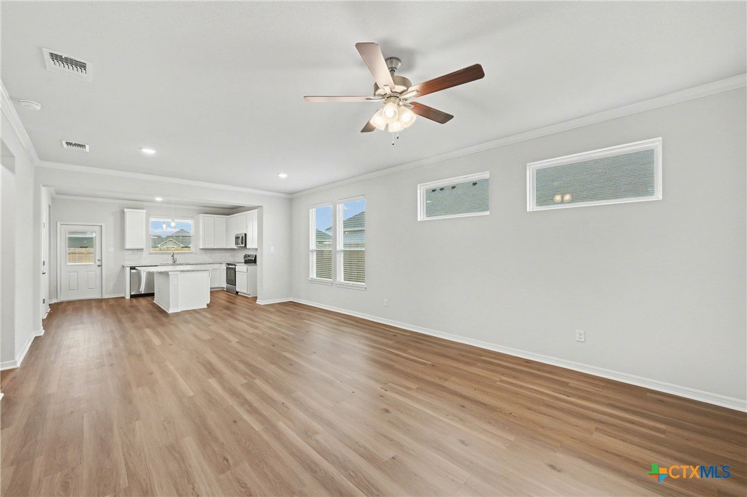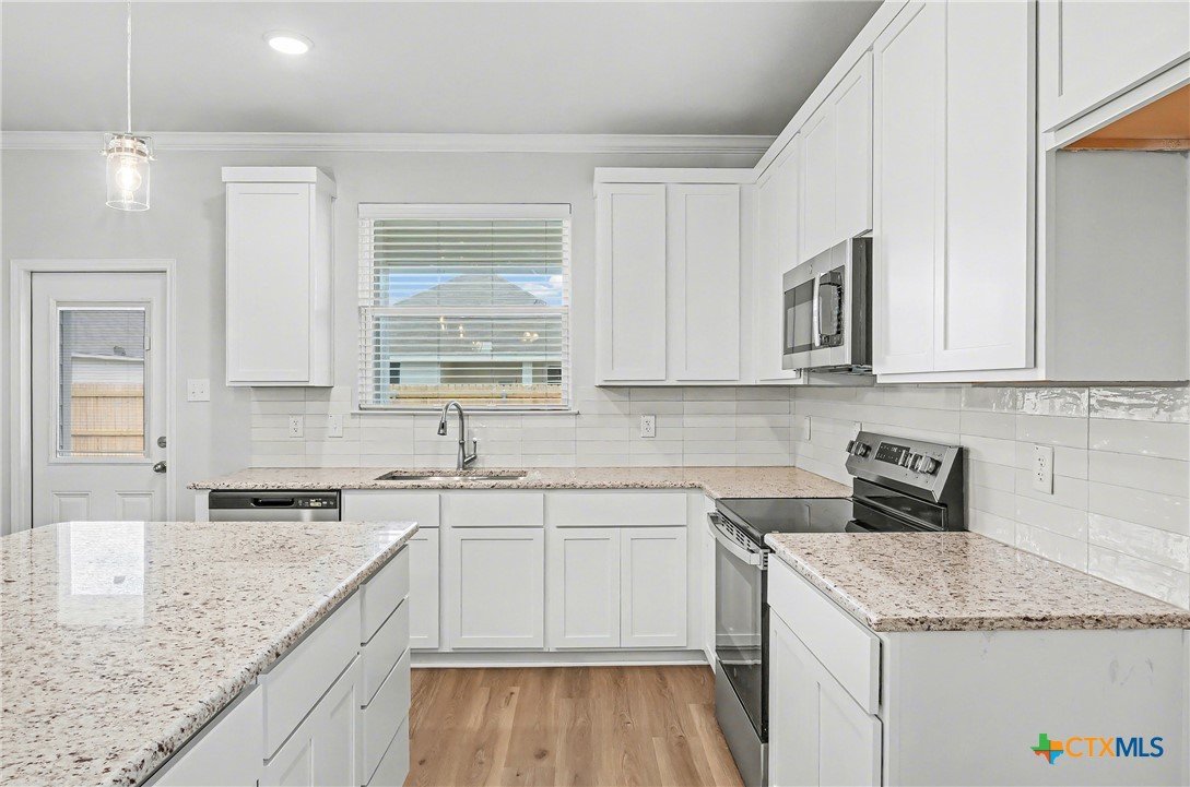 The Alamo floor plan offers a versatile and functional layout across 1,580 square feet. This three-bedroom, two-bath home comes with a study and is ideal for young professionals, families, or downsizers! This plan features an open-concept living area, breakfast, and kitchen with plenty of natural light to complement the space, making it perfect for entertaining. The kitchen includes stainless steel appliances with a large island that provides additional seating, storage, and cabinet space, while the primary bath has dual vanity sinks and a spacious closet. Plan variations include a fourth bedroom in place of the study.