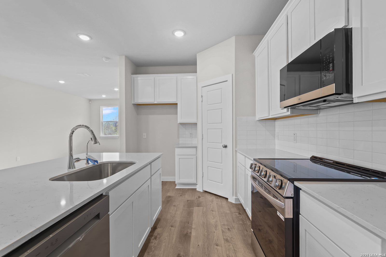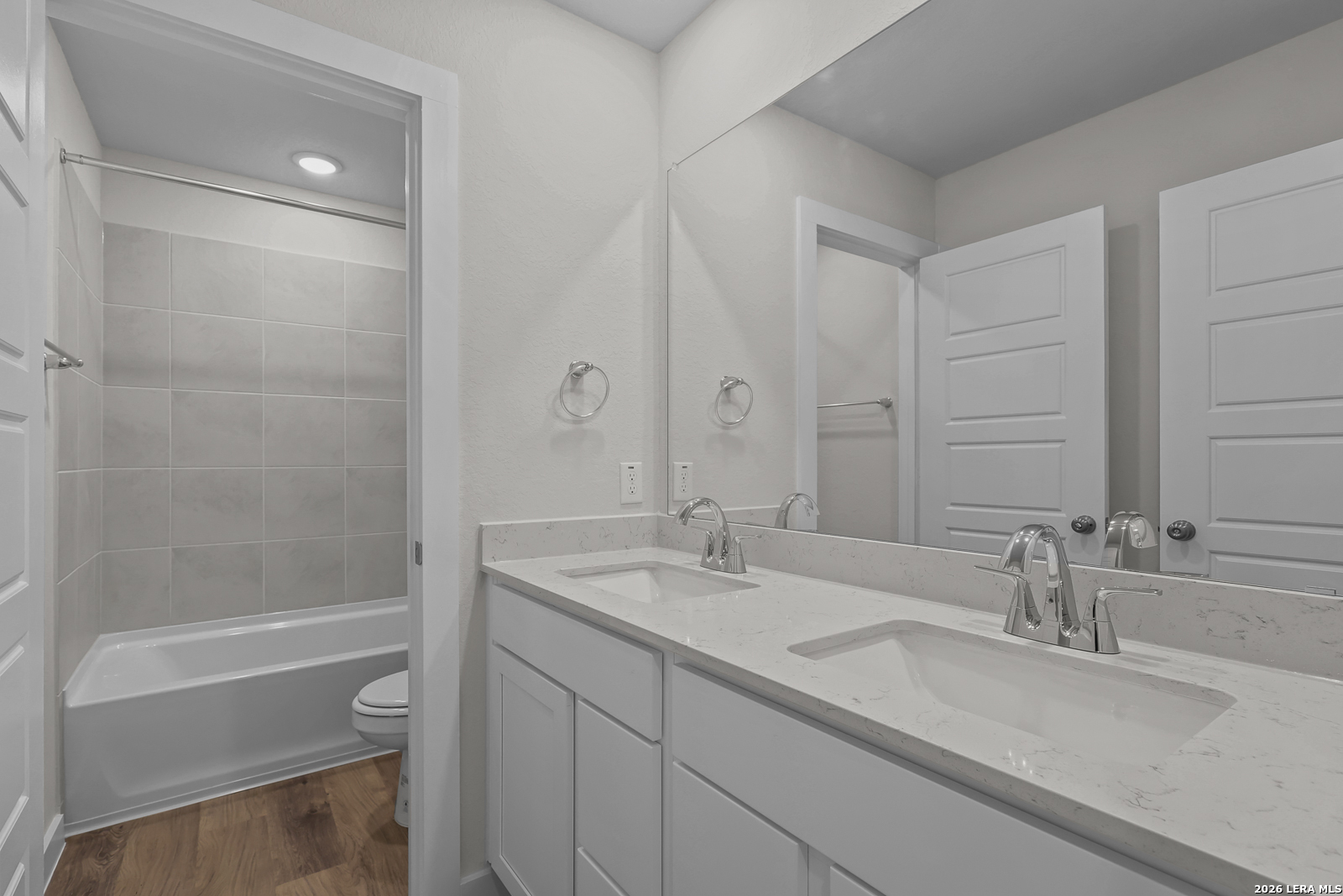 12550 sqftThe Frio at Cinco Lakes is a beautifully designed two-story home. The entrance foyer opens into a vast open-concept great room, complete with dedicated dining and living areas, and, of course, a spacious kitchen featuring an island and large corner pantry. This inviting space extends to an optional covered patio, allowing for seamless indoor-outdoor living. A first-floor full laundry room, powder room, and storage closet add to the home's convenience. Towards the back of the home, the primary suite boasts a private en-suite bathroom and a generous walk-in closet. Upstairs, a central loft connects the home's two additional bedrooms and a second full bathroom, completing this well-appointed home. Additional home highlights and upgrades: White kitchen cabinets, quartz countertops and backsplash Luxury "wood-look" vinyl plank flooring in common areas Stainless-steel Whirlpool appliances Elite Water filtration system Soft water loop upgrade Quartz countertops and modern rectangular sinks in bathrooms Kohler plumbing fixtures Landscape package with full sprinkler system Extended covered patio Keyless entry Garage door opener with two remotes Exceptional included features, such as our Century Home Connect smart home package and more.