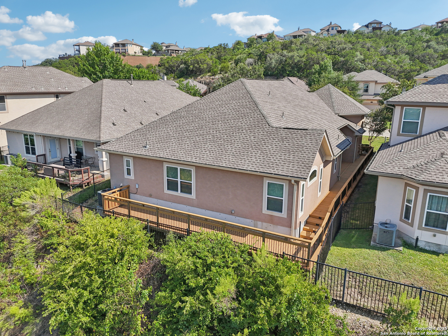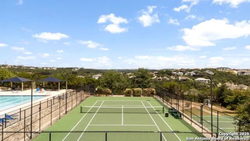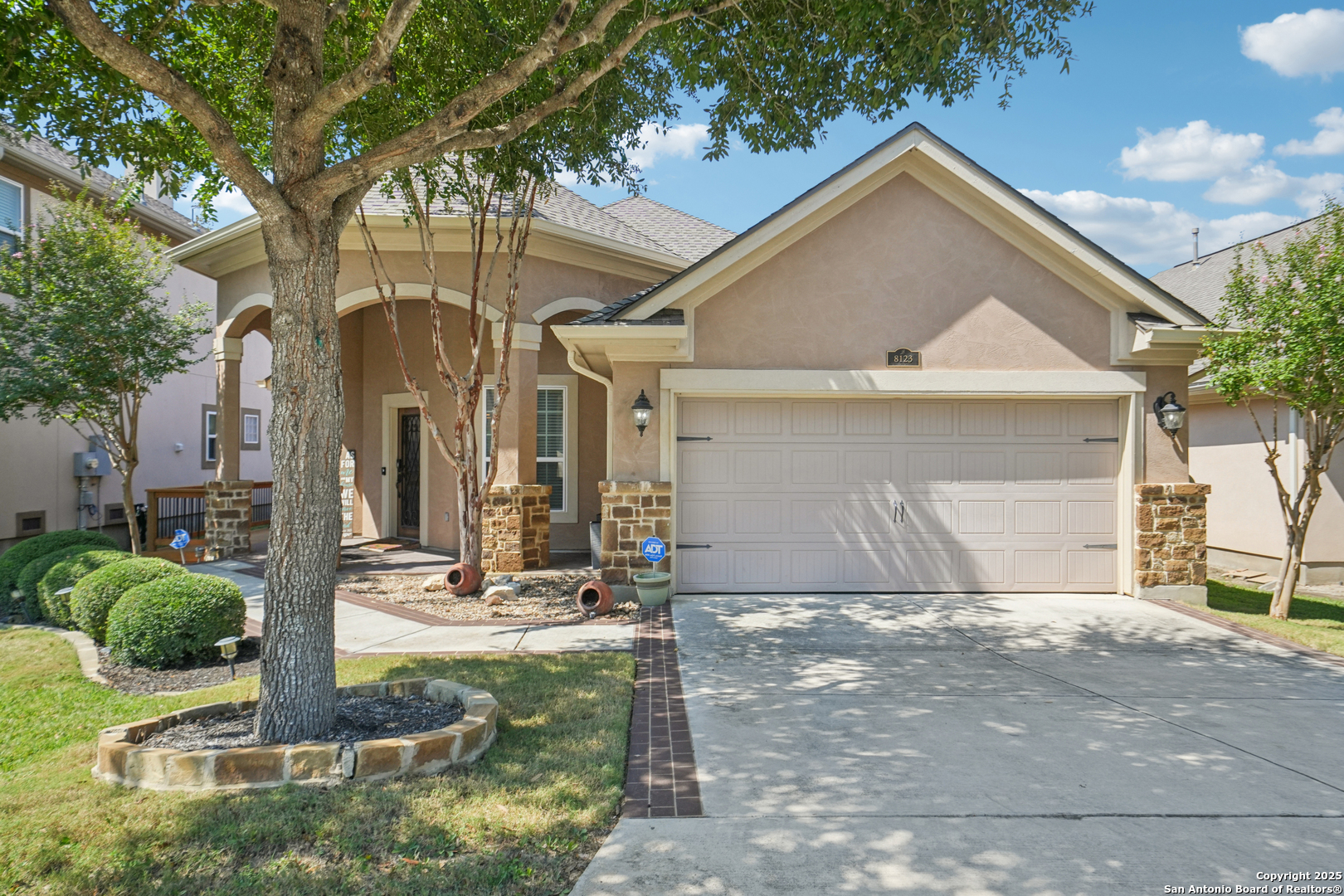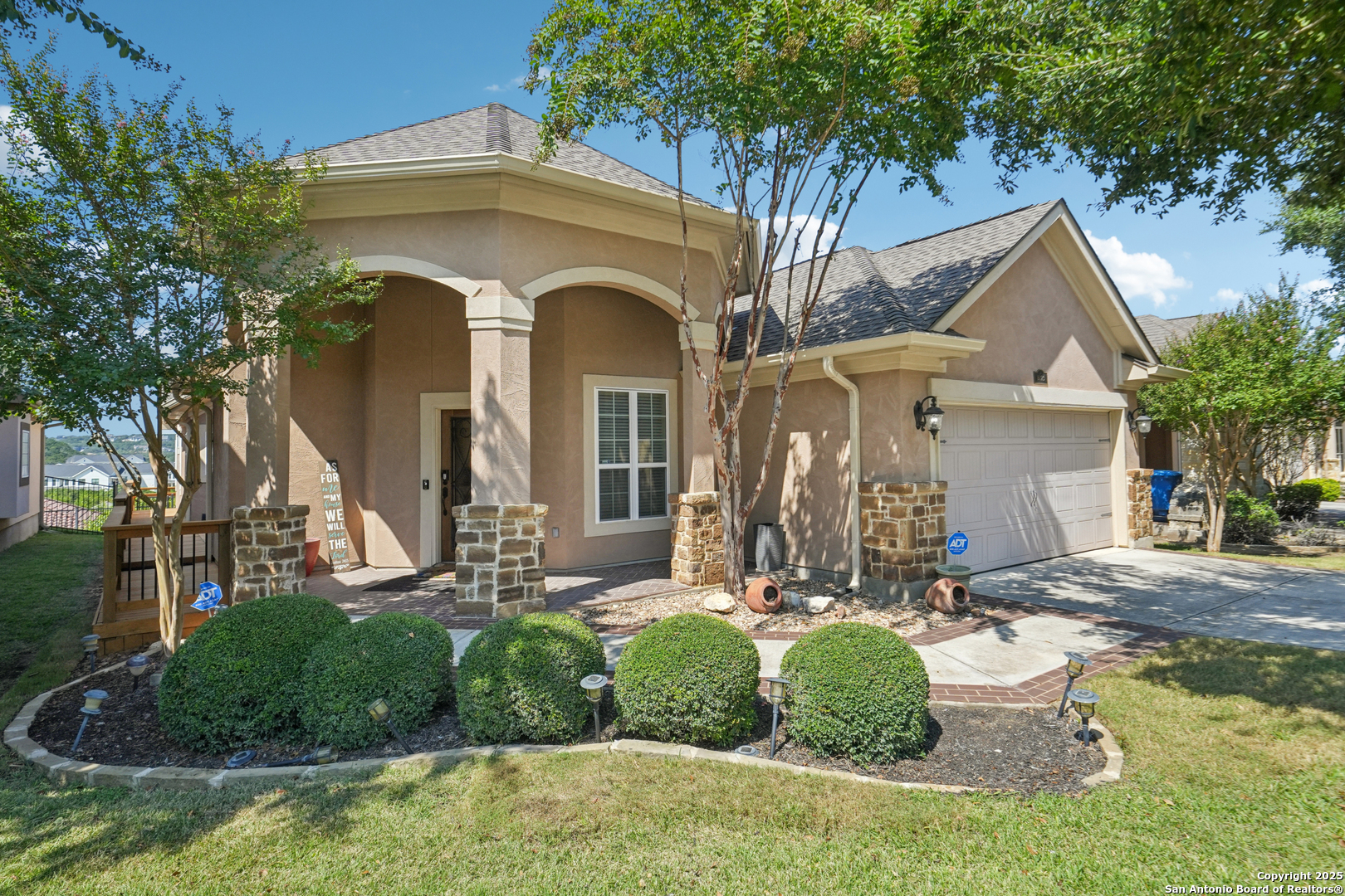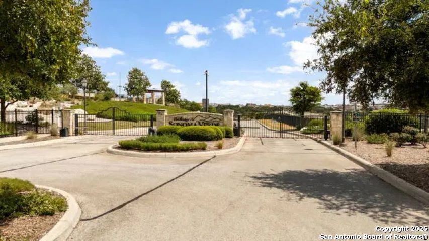 This Single-story home in the gated community of The Gardens at Sonoma Ridge, backs to a green space with beautiful views. This home offers an open floor plan with high ceilings that create a bright and comfortable atmosphere. The spacious living room is the heart of the home. The stunning kitchen features a gas cooktop, pantry, and a breakfast bar with a stone countertop-perfect for everyday meals or entertaining. An open home office provides a flexible space for work or study. The primary suite includes a large ensuite bath, and two secondary bedrooms share a convenient Jack and Jill bathroom. Recent updates add peace of mind, including a new roof in 2024, a brand-new HVAC system installed in 2024 with a 10-year extended warranty for parts and labor and an optional yearly membership (Oct-Oct.-$288.00) to inspect AC in fall and summer and other perks, a new water heater 2023, and a freshly repaired and stained deck. Step outside to enjoy a large deck, partially covered, offering views of the rolling hills and big Texas skies. The location is ideal with close proximity to UT San Antonio, The Rim, La Cantera, Six Flags, golf courses, parks, and major highways 1604 and I-10. Schedule your personal tour today!