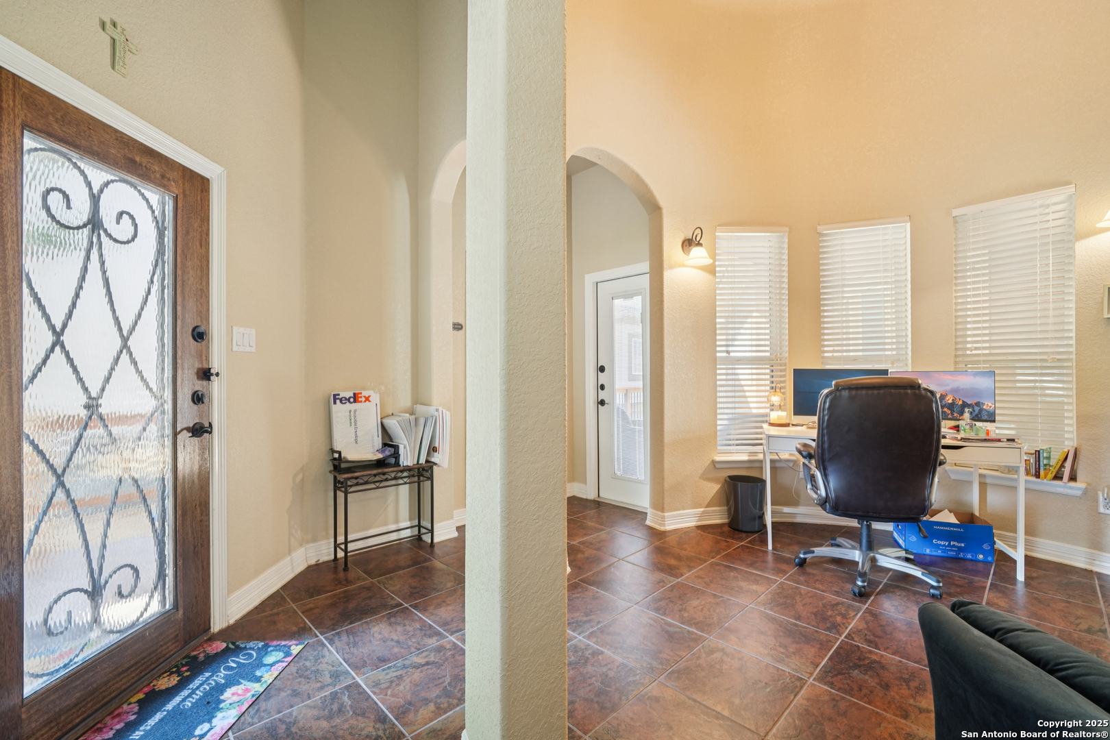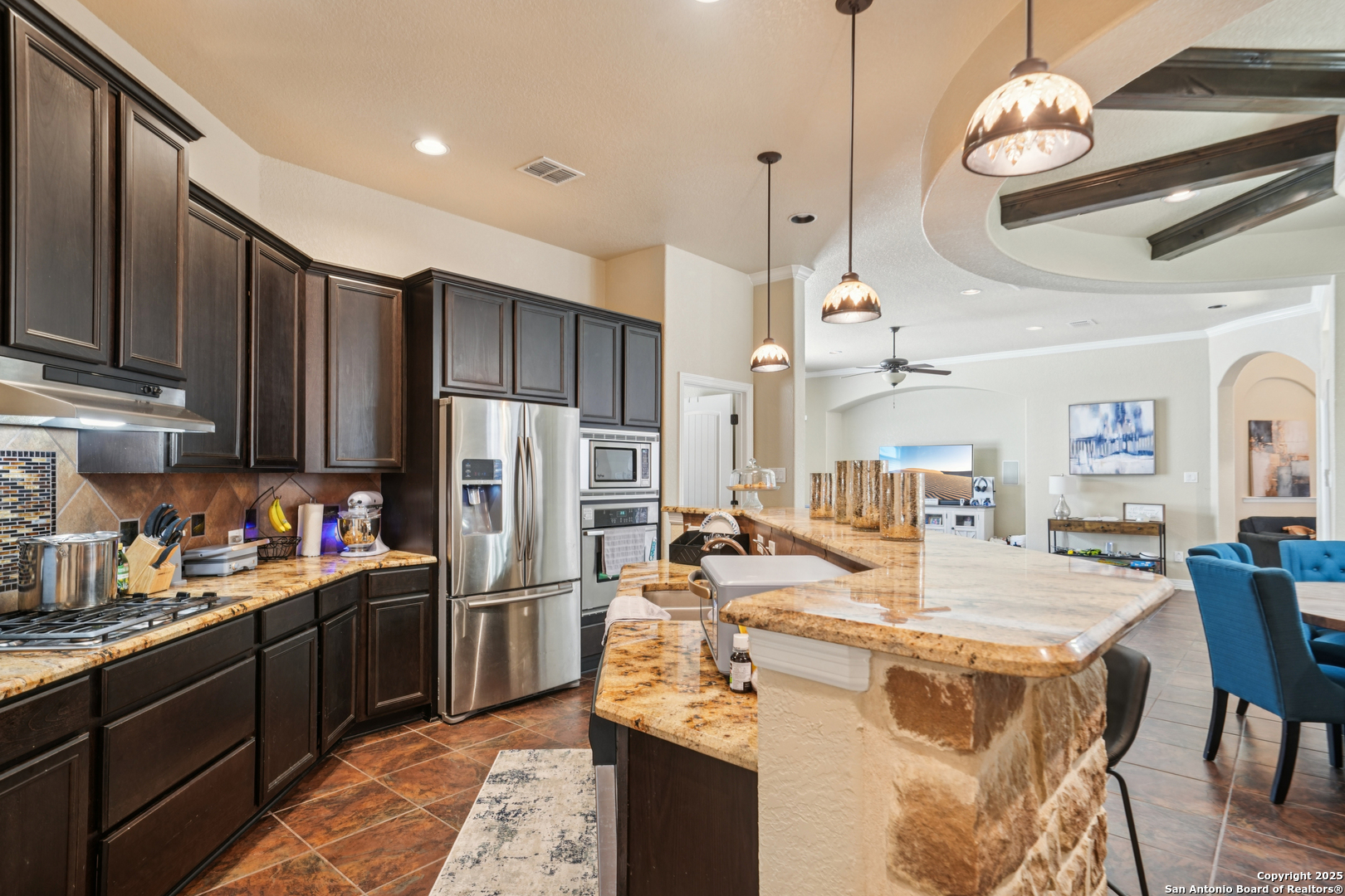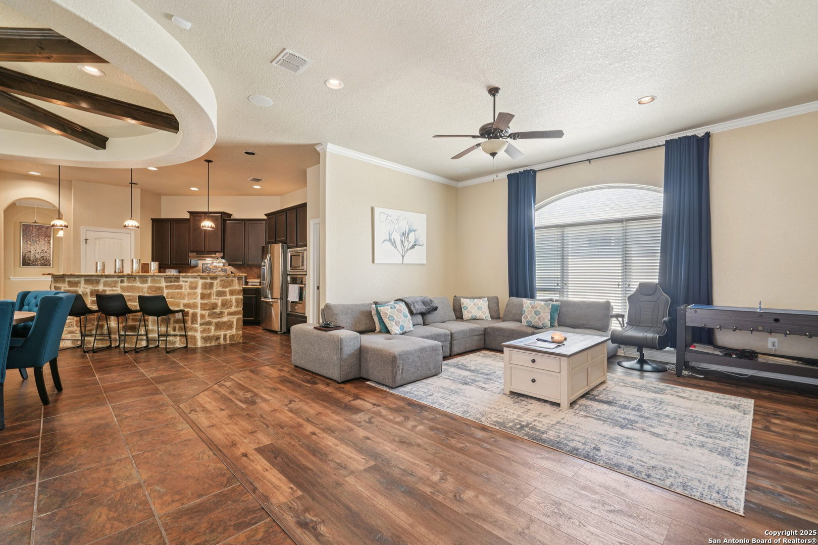 This Single-story home in the gated community of The Gardens at Sonoma Ridge, backs to a green space with beautiful views. This home offers an open floor plan with high ceilings that create a bright and comfortable atmosphere. The spacious living room is the heart of the home. The stunning kitchen features a gas cooktop, pantry, and a breakfast bar with a stone countertop-perfect for everyday meals or entertaining. An open home office provides a flexible space for work or study. The primary suite includes a large ensuite bath, and two secondary bedrooms share a convenient Jack and Jill bathroom. Recent updates add peace of mind, including a new roof in 2024, a brand-new HVAC system installed in 2024 with a 10-year extended warranty for parts and labor and an optional yearly membership (Oct-Oct.-$288.00) to inspect AC in fall and summer and other perks, a new water heater 2023, and a freshly repaired and stained deck. Step outside to enjoy a large deck, partially covered, offering views of the rolling hills and big Texas skies. The location is ideal with close proximity to UT San Antonio, The Rim, La Cantera, Six Flags, golf courses, parks, and major highways 1604 and I-10. Schedule your personal tour today!