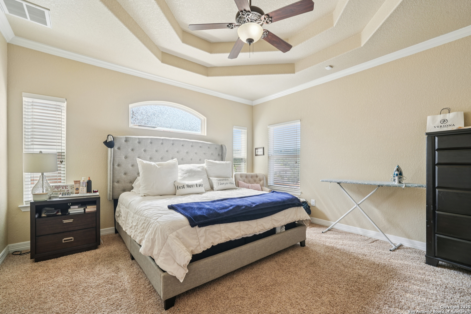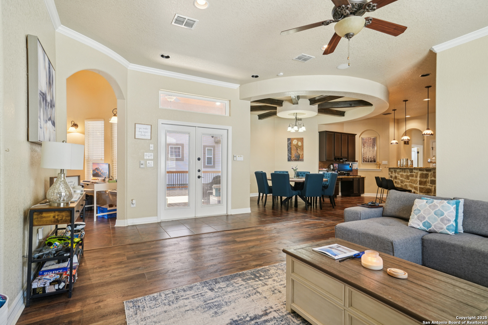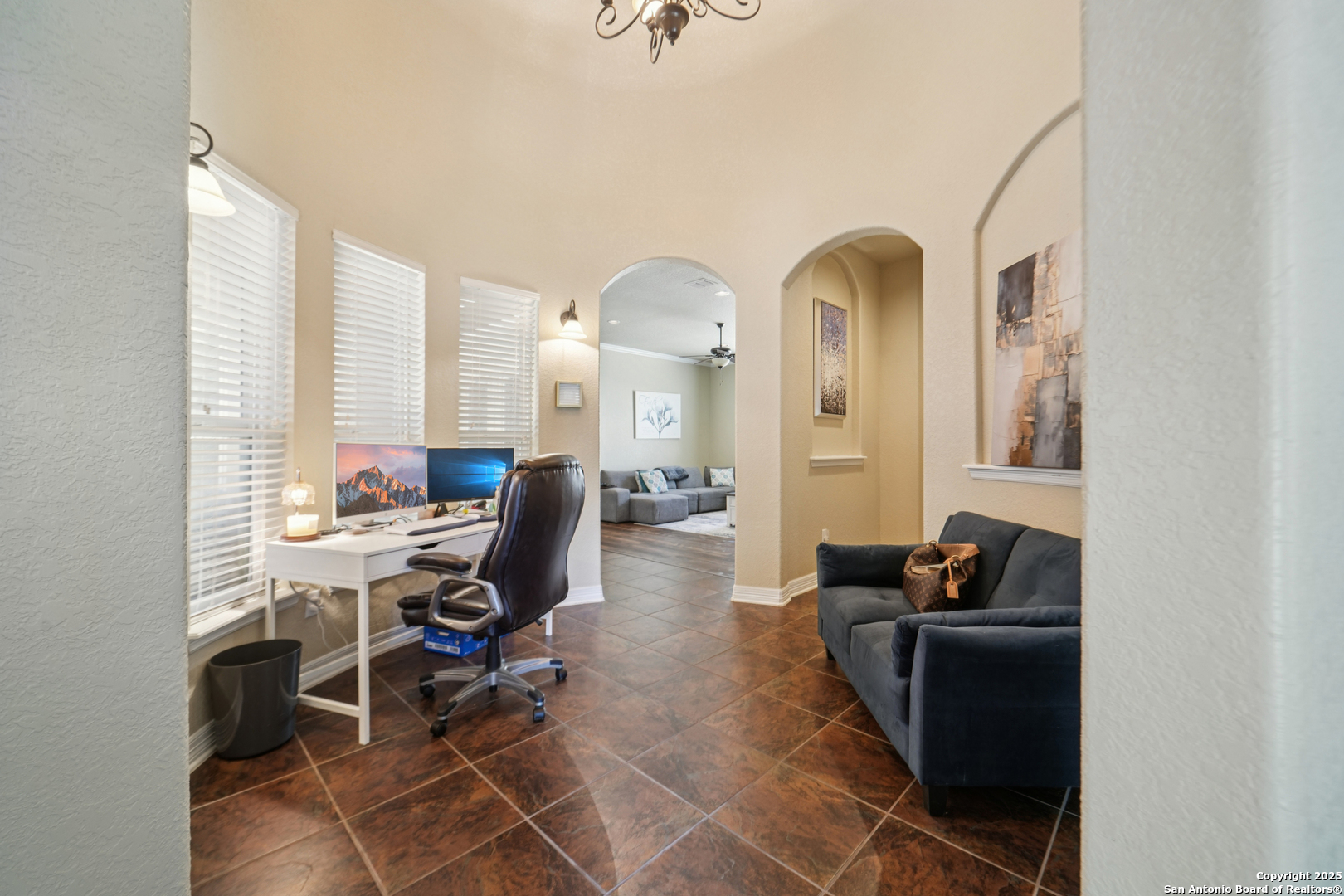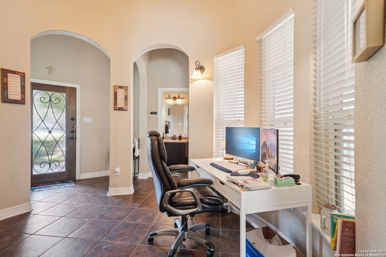 This Single-story home in the gated community of The Gardens at Sonoma Ridge, backs to a green space with beautiful views. This home offers an open floor plan with high ceilings that create a bright and comfortable atmosphere. The spacious living room is the heart of the home. The stunning kitchen features a gas cooktop, pantry, and a breakfast bar with a stone countertop-perfect for everyday meals or entertaining. An open home office provides a flexible space for work or study. The primary suite includes a large ensuite bath, and two secondary bedrooms share a convenient Jack and Jill bathroom. Recent updates add peace of mind, including a new roof in 2024, a brand-new HVAC system installed in 2024 with a 10-year extended warranty for parts and labor and an optional yearly membership (Oct-Oct.-$288.00) to inspect AC in fall and summer and other perks, a new water heater 2023, and a freshly repaired and stained deck. Step outside to enjoy a large deck, partially covered, offering views of the rolling hills and big Texas skies. The location is ideal with close proximity to UT San Antonio, The Rim, La Cantera, Six Flags, golf courses, parks, and major highways 1604 and I-10. Schedule your personal tour today!