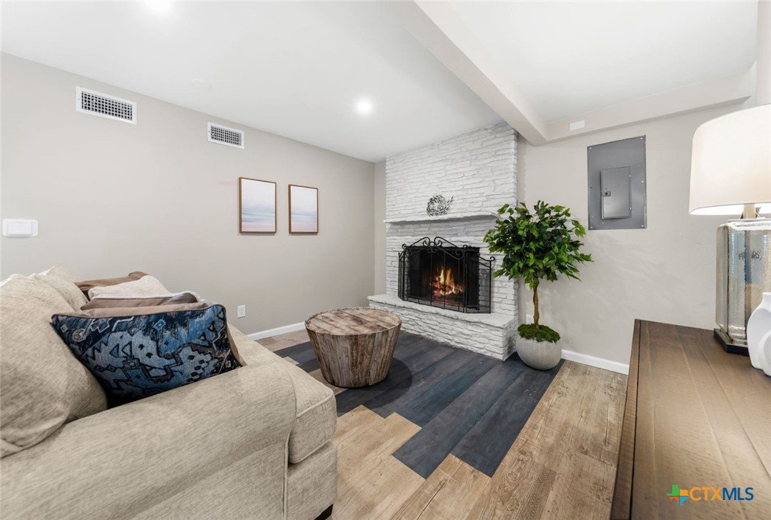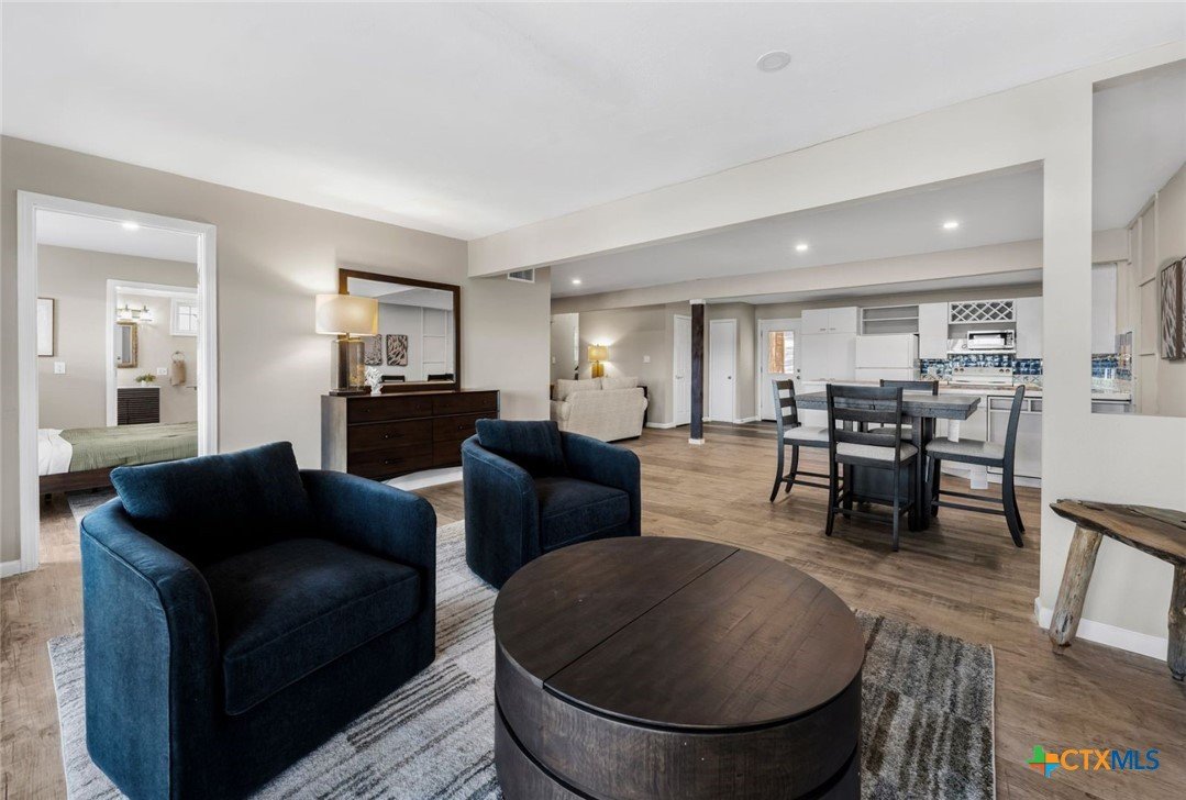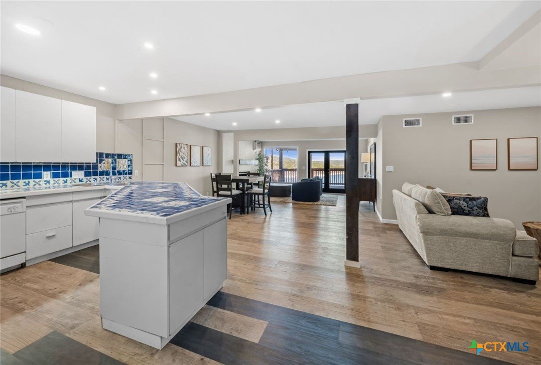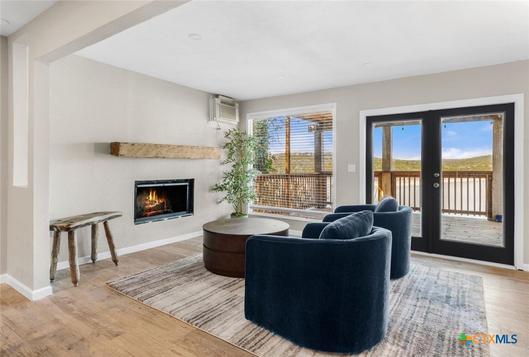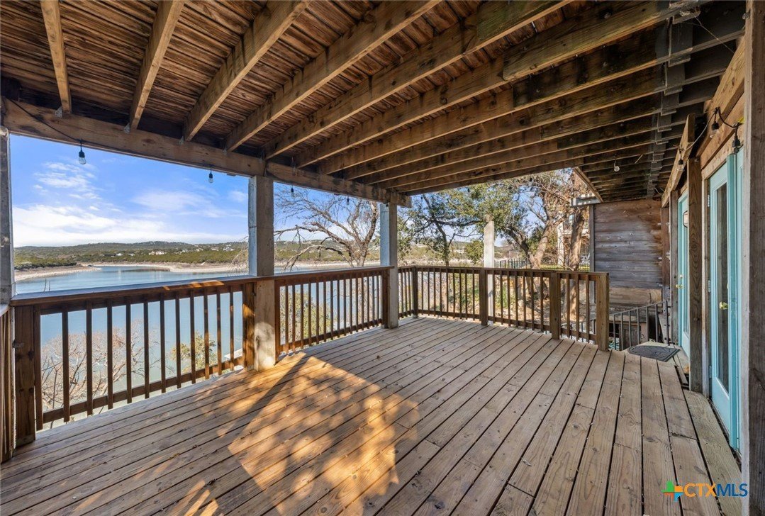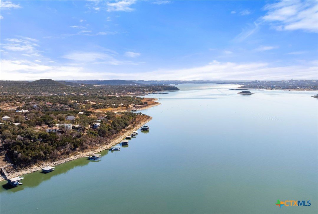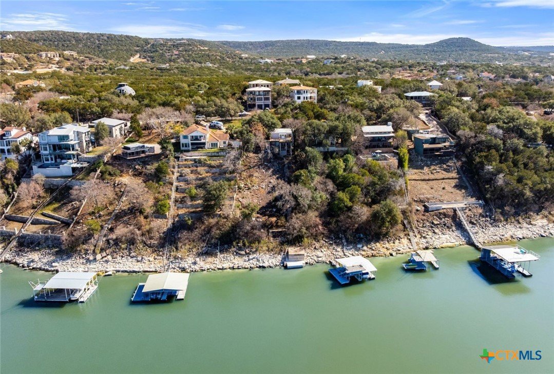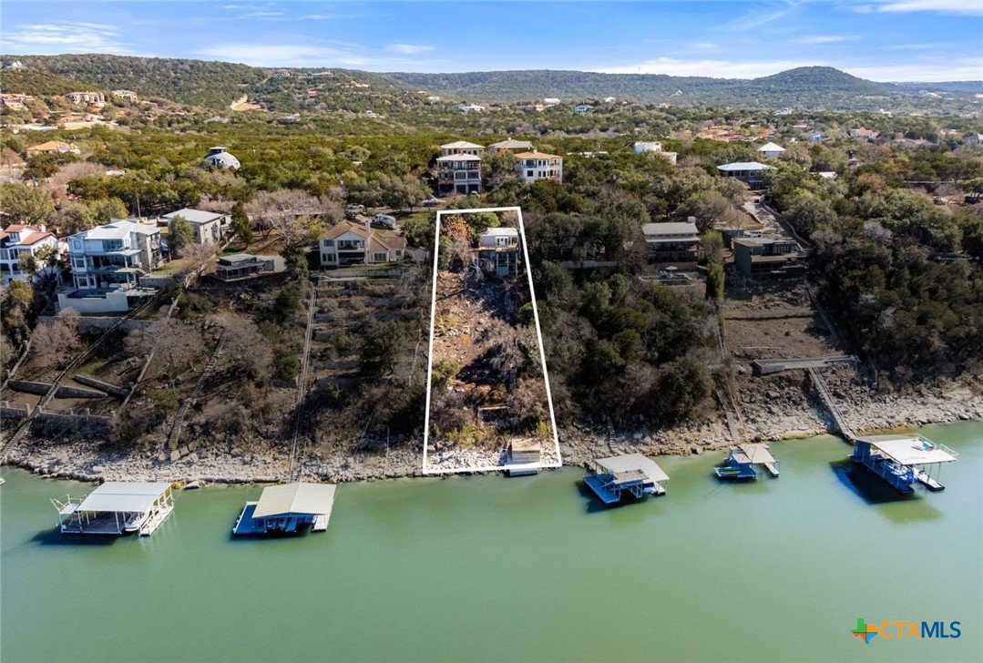 This deep-water Lake Travis property in Volente offers main-body waterfront, incredible lake views, and one of the best values currently available at its price point. With deep-water frontage, the property is well positioned for a future dock while already providing shoreline access. Elevated above the lake, the home captures sweeping lake views and year-round usability. The home will convey with newly purchased furnishings, allowing buyers to enjoy the property immediately or update at their own pace. Well suited for use as a private lake house or a short-term rental. The floor plan includes two bedrooms plus a study and three full bathrooms, with an open main level featuring a spacious kitchen, dining area, multiple living spaces and access to two expansive decks that extend the living space outdoors. The upper-level bedroom enjoys stunning lake views, private deck access, and a dedicated bath and study. Located in a quiet waterfront neighborhood with a single point of entry, the setting feels private while remaining highly convenient—just 10 minutes to Four Points (620 & 2222) for shopping, dining, and entertainment, and approximately 30 minutes to downtown Austin. The property is zoned to highly rated schools, including Grandview Hills, Four Points Middle, and Vandegrift High School, and is close to local favorites such as Volente Beach Club, Beachside Billy’s, Shack 512, Stiechen Park, and a nearby fire station. Offering deep water, main-lake access, panoramic views, and immediate usability, this property stands out as a rare opportunity on Lake Travis—priced at lot value and ready to enjoy from day one.