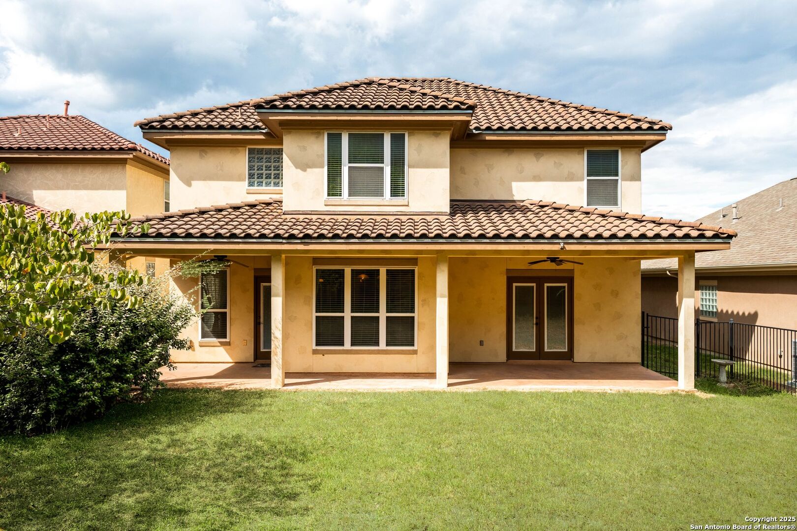 This charming two-story home features 3 bedrooms, 2.5 baths, and four sides masonry construction, offering timeless appeal and durability. Inside, you'll find spacious, light-filled rooms that highlight the home's unique architectural character, including a welcoming living area, dining room, breakfast room, functional kitchen, and a convenient utility room on the first floor. A private home office is located at the front of the home, providing the perfect space for work or study. Upstairs, the primary suite includes a private sitting area and generous bath, while two additional bedrooms and a versatile game room provide plenty of space for family and guests. Outdoor living is just as inviting with a covered patio and tranquil backyard, perfect for relaxation or entertaining. Residents also enjoy access to community amenities such as a clubhouse, pool, tennis courts, and controlled access for added peace of mind.