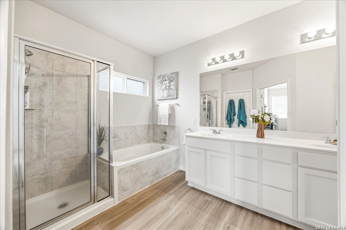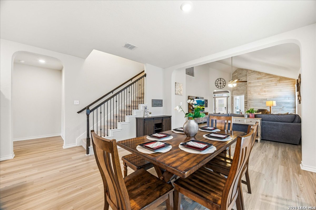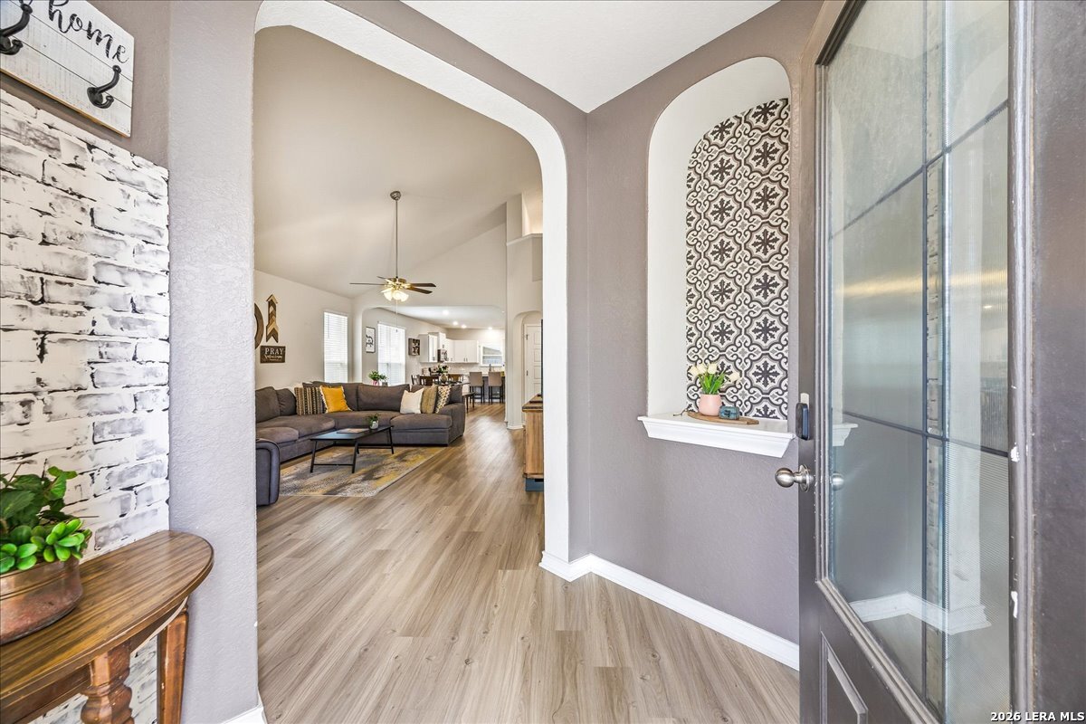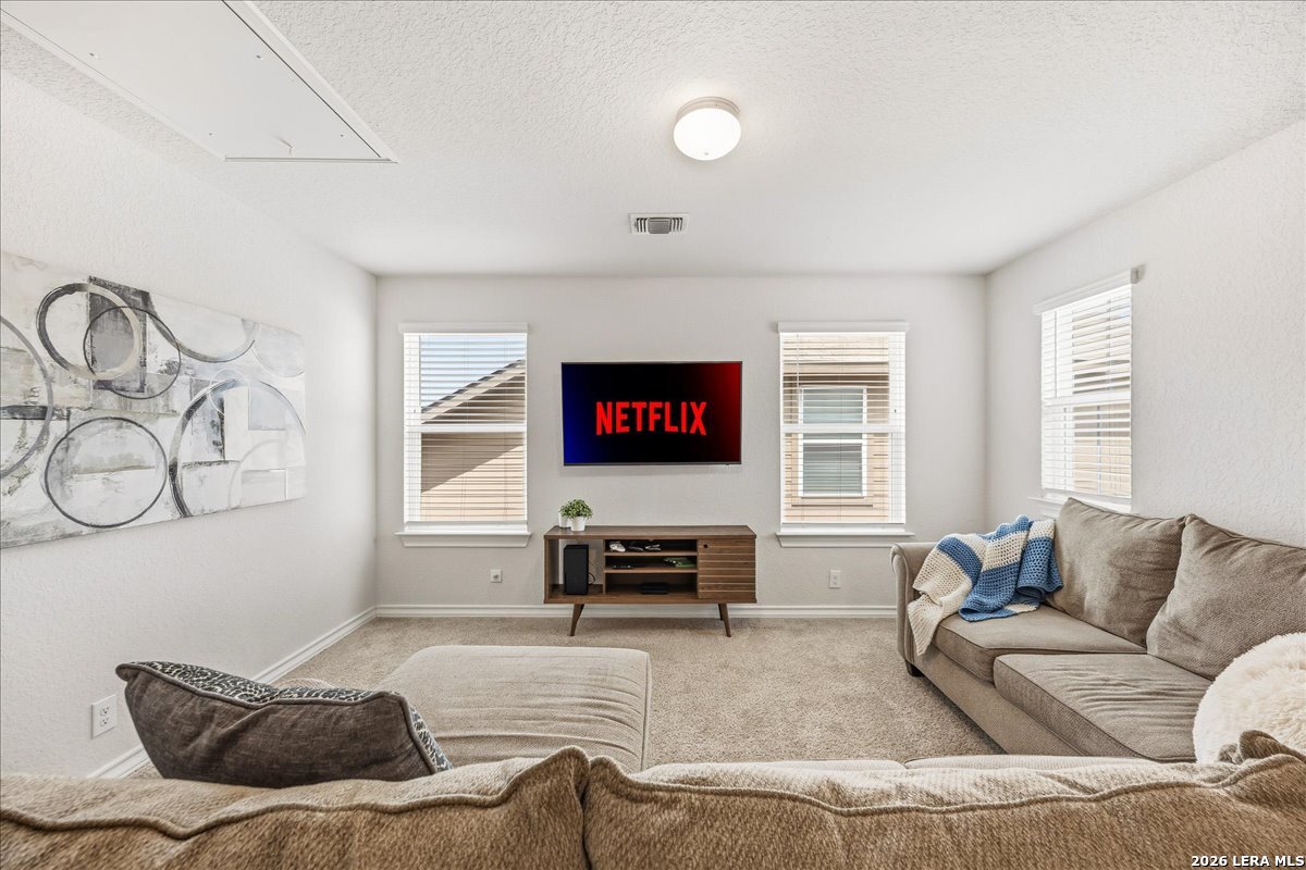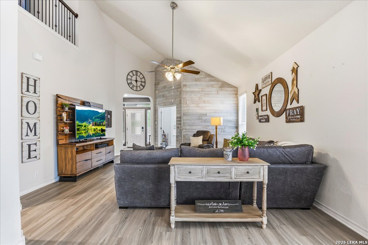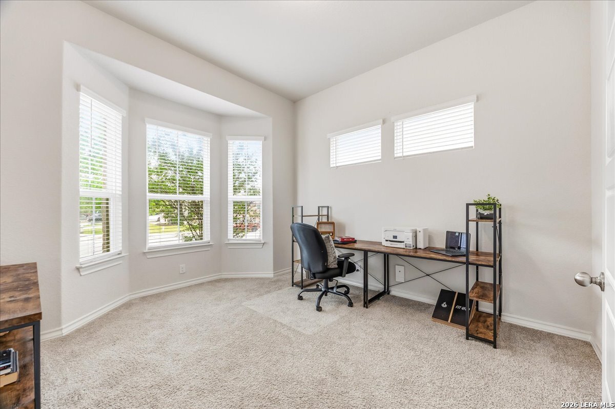 Looking for a move-in ready home on the Northwest side of San Antonio with space, function, and great neighborhood amenities? Welcome to 8135 Samsel Falls in Valley Ranch-a well-designed two-story home that offers flexibility for everyday living and room to grow. From the moment you walk in, you'll notice the natural flow and open layout, with a dedicated office at the front that's perfect for working from home or a quiet retreat. The main living area feels bright and connected, making it easy to host or spend time with family. The kitchen, dining, and living spaces all flow together, creating a central hub of the home. Step outside to the covered patio where you can enjoy quiet evenings or weekend get-togethers. The layout is ideal for privacy and functionality, with secondary bedrooms tucked away and a full bath nearby-great for guests or a growing household. Upstairs and down, the home offers a comfortable balance of shared space and personal retreat. Located in Valley Ranch on San Antonio's Northwest side, you'll enjoy access to controlled entry, a community pool, park, playground, and sports courts. The home is also zoned to highly regarded Northside ISD schools and offers convenient access to major routes for commuting. This home checks the boxes for space, location, and lifestyle.