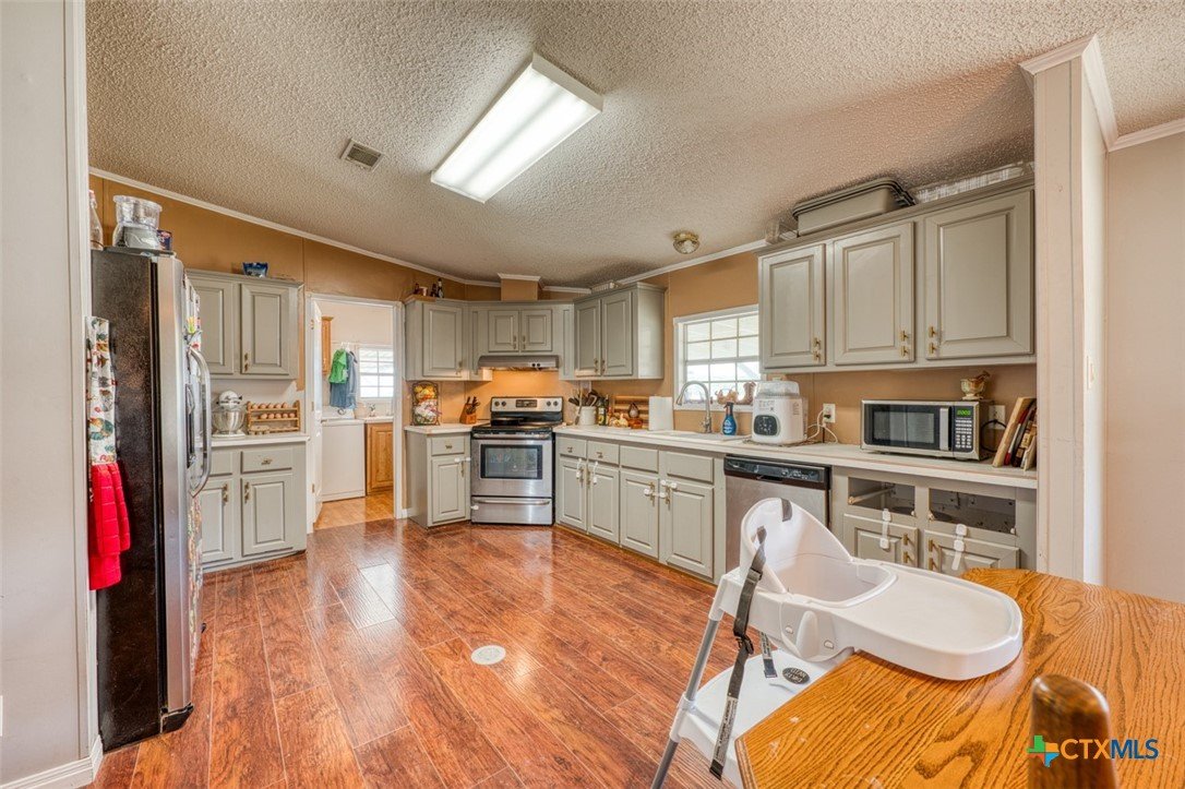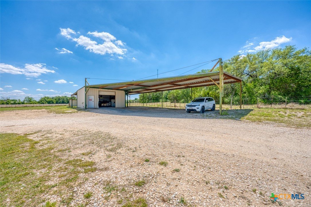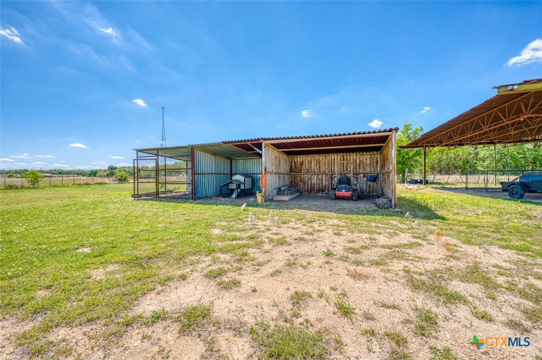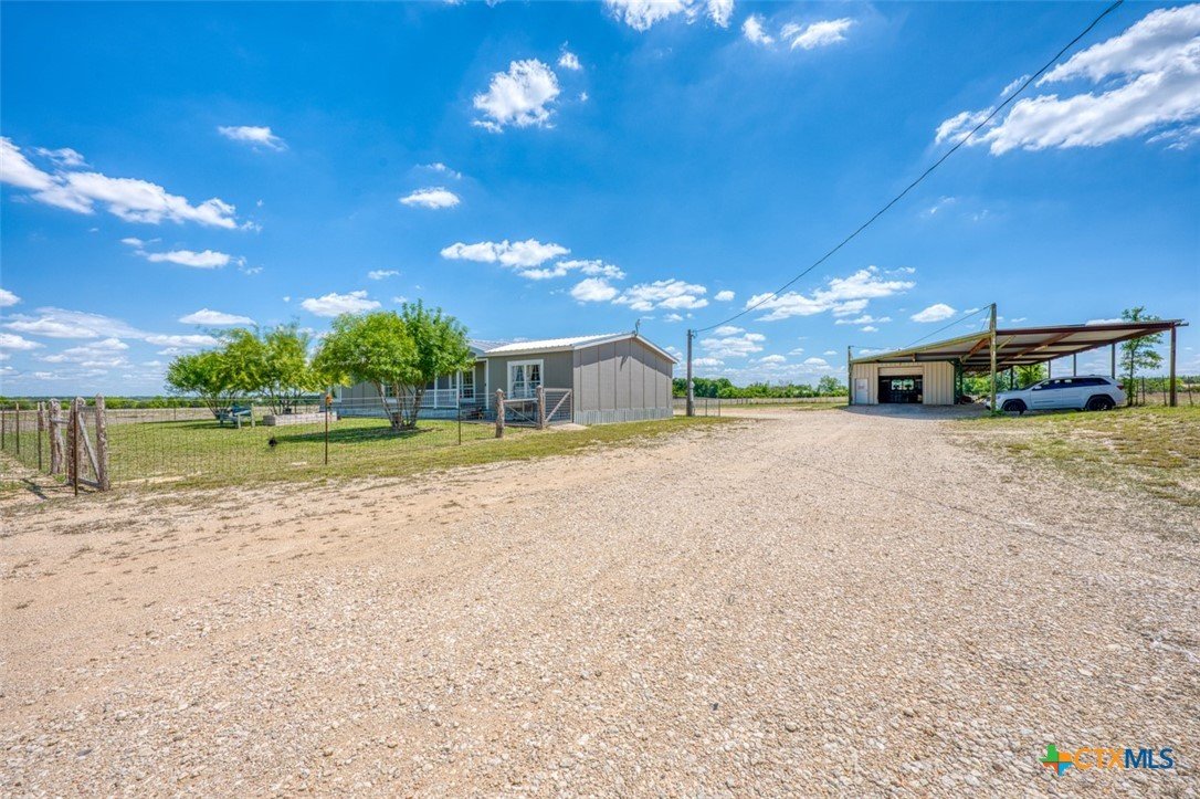 Located just 5 minutes outside of Florence, and within easy reach of Liberty Hill (30 minutes) and Georgetown (25 minutes), this well-maintained property offers the perfect blend of peaceful country living and convenience with access to city water. Situated on 5 acres, this property is ideal for livestock, hobbies, or anyone looking for space to spread out. The land is frequently visited by native wildlife including deer and turkey, adding to the quiet, rural charm. The 3-bedroom, 2-bath manufactured home offers 1,792 sq ft of comfortable living space and has been well cared for. The property is fully equipped for animals, featuring approximately 3.5 acres of 4x4 field fencing, a 10x10 turnout, and a 16x12 covered area for shade. Additional improvements include a 700 sq ft shop with an impressive 3,000 sq ft of lean-tos built around it—perfect for equipment storage, livestock shelter, or workspace. The front and backyard are fenced separately, making it ideal for pets. With a private septic system, multiple livestock structures, and room to grow, this property is a great opportunity for those seeking a functional and versatile rural setup just minutes from town.