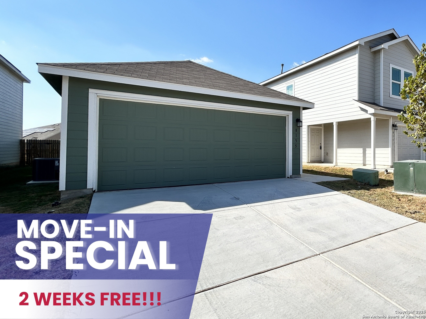 MOVE IN SPECIAL: 2 WEEKS FREE!* 3 Bed, 2 Bath Single Story Home. No Carpets! All Vinyl Plank. Large Living Room. Kitchen with Granite counters, Gas Stove, Dishwasher. Stackable Washer/Dryer included. 2 Car Garage, Fenced Yard. Just off Loop 1604, close to Hwy 90, Lackland AFB.