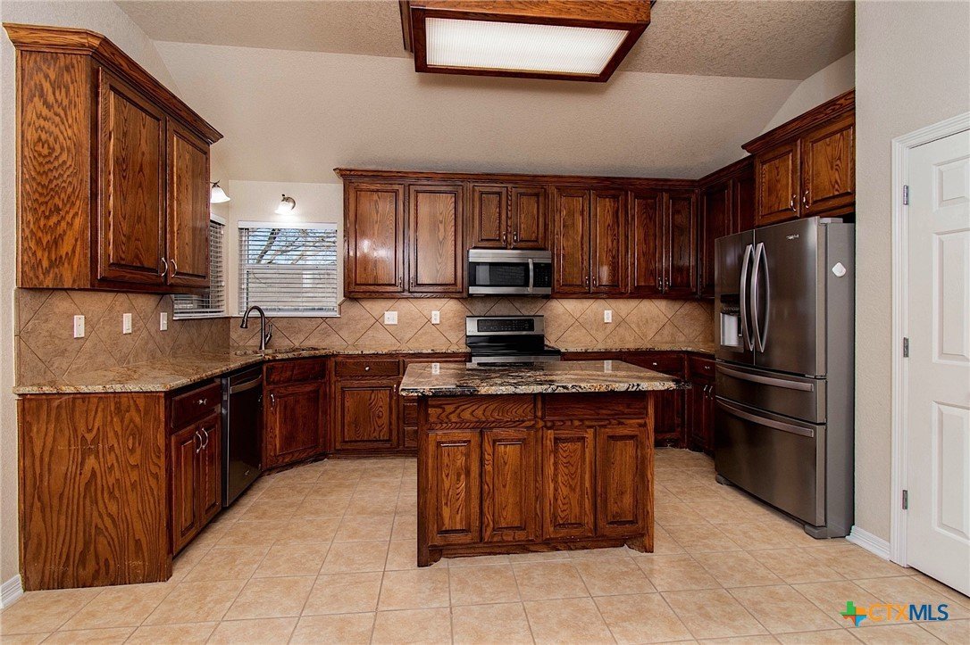 Immaculately maintained and move-in ready home located in the desirable Stonegate subdivision within Temple ISD. This beautifully upgraded property offers a spacious open-concept layout with raised ceilings and luxury plank flooring that flows throughout the main living areas. The kitchen is designed for both functionality and entertaining, featuring a large granite island, ample cabinet space, and updated fixtures. The primary suite provides a private retreat with dual vanities, a jetted garden tub, separate walk-in shower, and a spacious walk-in closet. Secondary bedrooms offer flexibility for guests, home office, or additional living space. Step outside to an oversized covered patio with stained and etched concrete, overlooking a professionally landscaped backyard complete with a sprinkler system—perfect for outdoor living. Additional upgrades include reverse osmosis water filtration, radiant barrier insulation, and solar screens for improved energy efficiency. Conveniently located just minutes from Baylor Scott & White, Temple Mall, H-E-B, shopping, dining, and major highways, this home offers both comfort and accessibility in a prime Temple location.