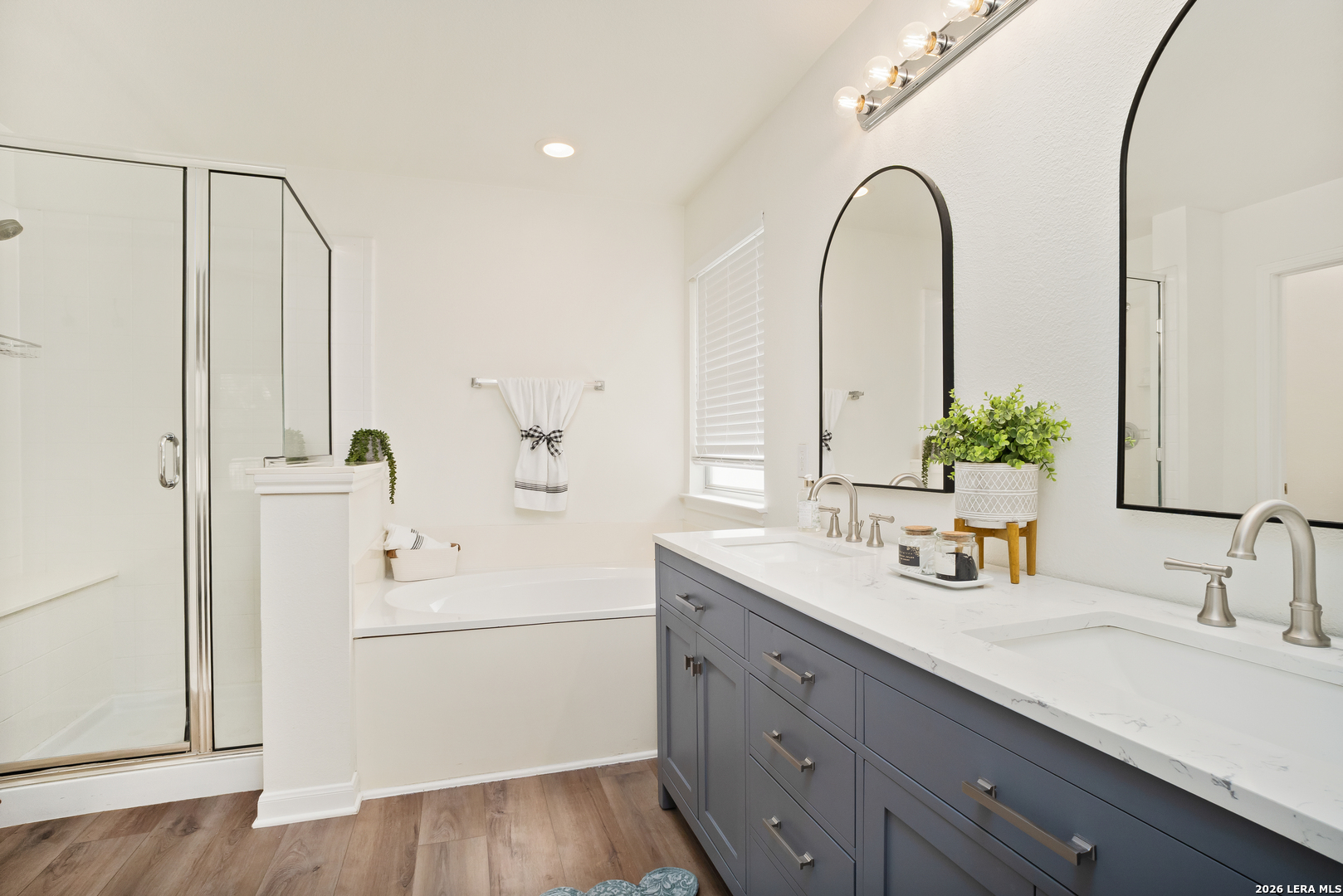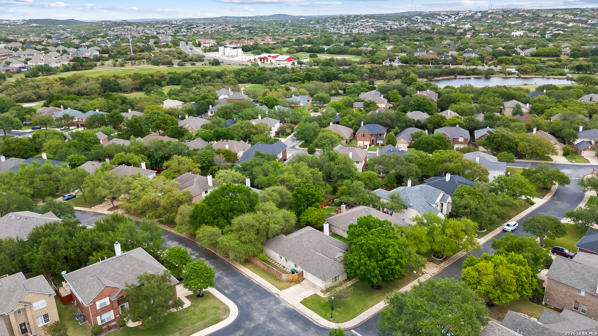 Welcome to the highly sought-after gated community of Canyon Springs, where charm and comfort meet. This beautiful single-story home greets you with an inviting front porch, perfect for enjoying summer mornings with coffee or tea while taking in the view of mature trees. Situated on a spacious corner lot, the home features a side-entry two-car garage. Step inside to discover a bright, open floor plan with warm light oak flooring that flows throughout, creating a cozy yet modern feel. A versatile front flex room, highlighted by a stylish gold chandelier, can serve as a formal dining space, home office, or additional living area. The main living room features a classic brick fireplace and abundant windows that fill the space with natural light, seamlessly connecting to the kitchen ideal for entertaining. The kitchen offers ample counter space for cooking and gathering, while the breakfast area showcases updated lighting and backyard views. At the front of the home, you'll find two secondary bedrooms, a full bath, and a private study with double doors perfect for working from home or an additional guest room. The primary suite is tucked away at the back for added privacy and features a ceiling fan, a wall of windows, and charming bench seating. The bathroom includes framed mirrors, a farmhouse style double vanity, garden tub, separate shower, and a spacious walk-in closet. Step outside to your beautifully landscaped backyard, designed for easy maintenance and relaxation under mature trees. Ideally located just off Canyon Golf across from the community pool, courts, and park. Zoned to highly rated NEISD schools and just minutes from shopping and dining, including Wilderness Oak H-E-B. Move-in ready and waiting for you to call it home!