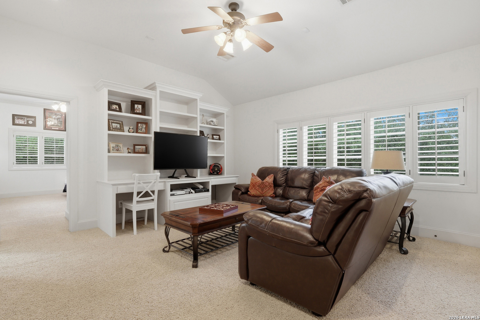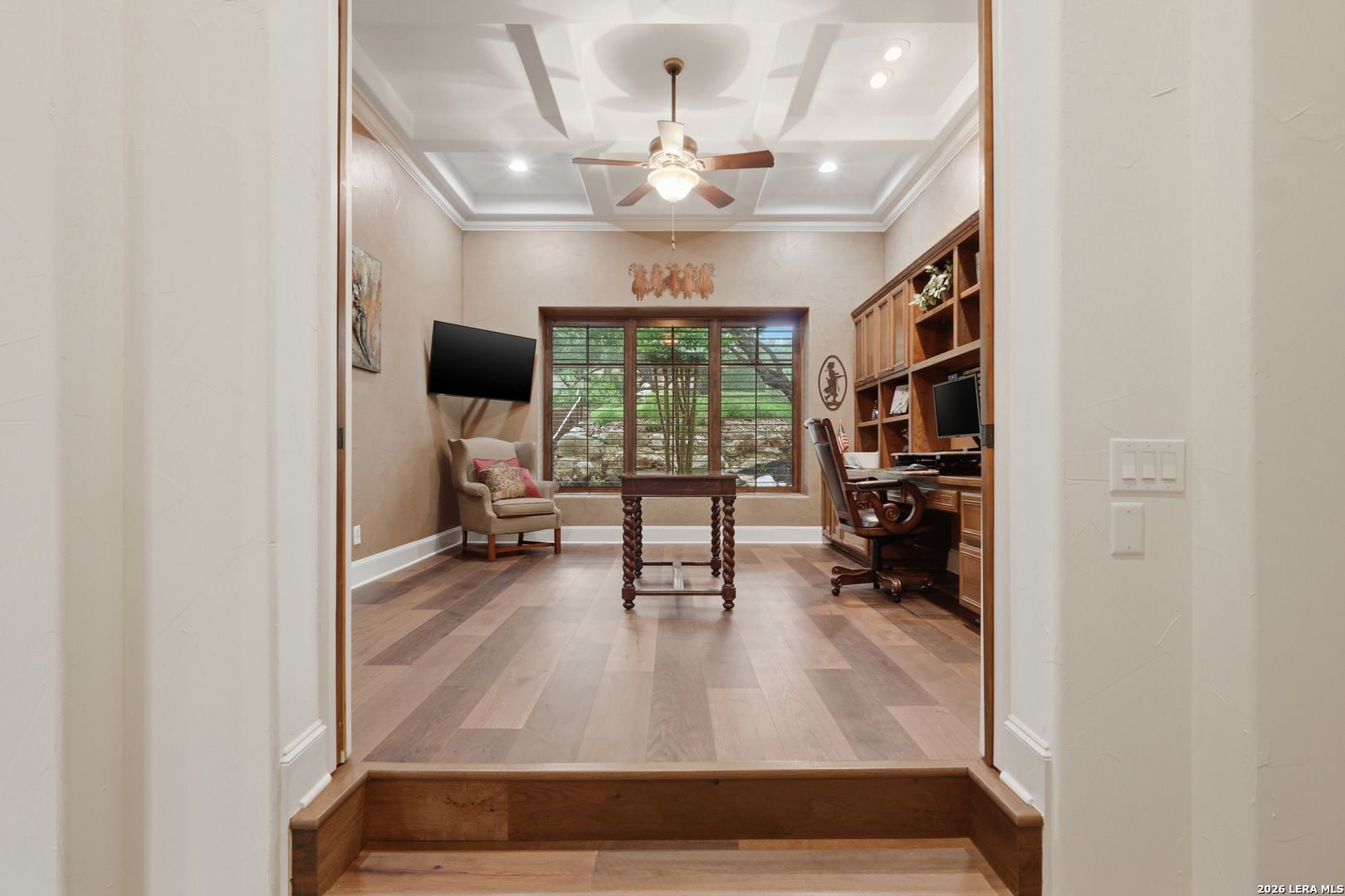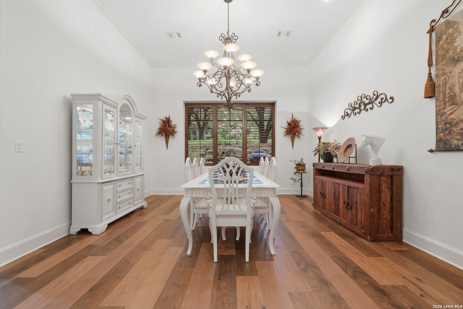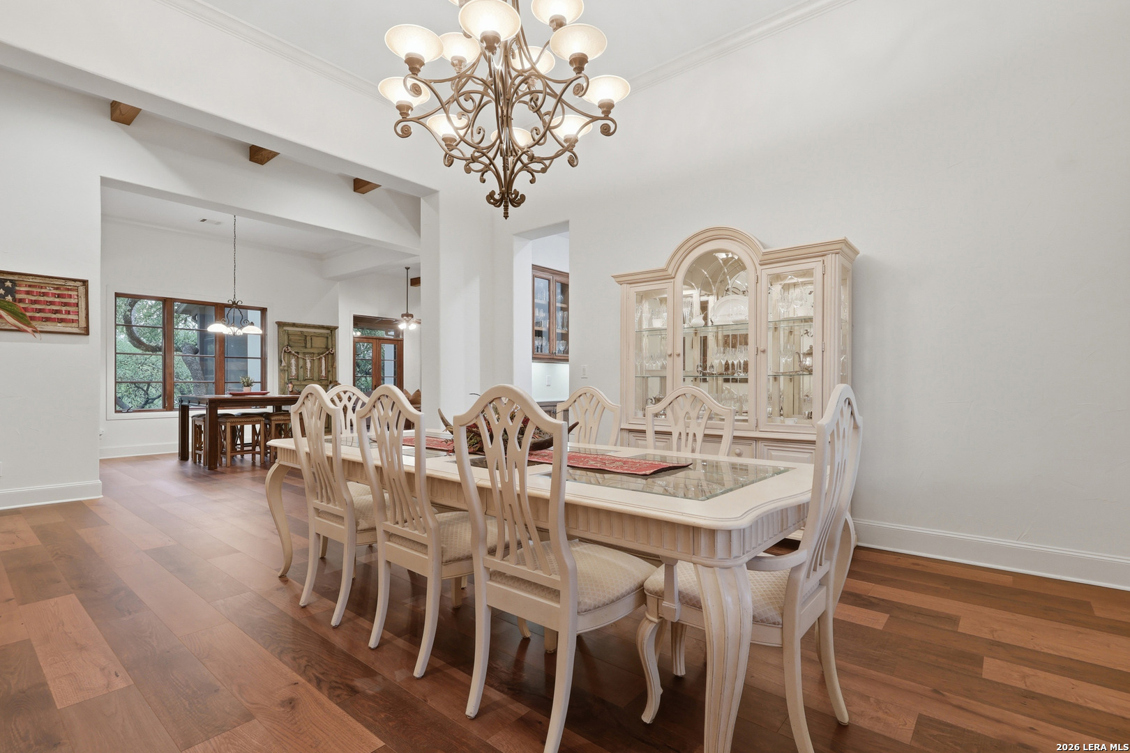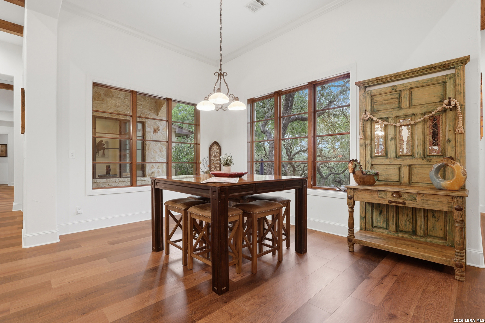 Open house Sunday May 3 from 2-4 pm. Experience refined Hill Country living in this extraordinary 5,692-square-foot estate, ideally situated within the prestigious Champions Ridge community. Set on a private, park-like homesite backing to acres of protected woodlands, this remarkable residence offers an exceptional blend of timeless architecture, modern luxury, and serene natural beauty. Designed with both elegance and functionality in mind, the home features five spacious bedrooms, each with its own en-suite bath and walk-in closet, along with a versatile sixth flex room. Two well-appointed bedroom suites are located on the main level, providing convenience and flexibility for guests or multigenerational living. The secluded primary suite serves as a true sanctuary, offering spa-inspired amenities including a sunken Jacuzzi tub, expansive walk-in shower, and generous closet space. Private access to the pool and hot tub enhances the resort-style ambiance, while dedicated HVAC and a tankless water heater ensure optimal comfort year-round. Adjacent, a distinguished executive study showcases custom built-in cabinetry and elegant sliding glass and wood doors, creating a sophisticated and private workspace. Thoughtfully designed interiors are filled with natural light, thanks to custom windows that frame picturesque views of the outdoor oasis and surrounding woodlands. Select rooms feature elegant wood shutters, offering both style and privacy. Seamless indoor-outdoor living is achieved through three sets of double outswing doors that open to an entertainer's dream backyard. Here, a sparkling sport pool, mature oak trees with ambient downlighting, a fully equipped outdoor kitchen, and a cozy fire pit create an inviting retreat for gatherings or quiet evenings under the stars. A screened-in porch and wood-beamed ceilings in the family room further enhance the home's warmth and character. At the heart of the home, the expansive chef's kitchen is designed to impress, featuring premium appliances including a Viking cooktop, double ovens with warming drawer, built-in refrigerator, wine fridge, ice maker, dishwasher, and trash compactor. The open-concept layout flows effortlessly into the family room, formal dining area, butler's pantry, and sunlit breakfast nook-perfect for both grand entertaining and intimate daily living. Upstairs, three additional bedrooms and a spacious secondary living area provide ample room for relaxation. The flexible bonus room offers endless possibilities as a sixth bedroom, media room, fitness space, or playroom. Exceptional storage and organization are found throughout, including a well-appointed utility room with built-in cabinetry and counter space, a thoughtfully placed hall tree at the side entrance, a large walk-in attic, two additional pull-down attic spaces, and a main-level storage closet. Modern conveniences include a whole-home Sonos sound system, both indoors and out, as well as a hardwired security system for peace of mind. Residents of Champions Ridge enjoy exclusive access to a 31-acre nature preserve with scenic hiking trails, a 24-hour guarded gate, and premier amenities including tennis, pickleball, and sport courts-all set within a tranquil, park-like environment. This is a rare opportunity to own a truly exceptional estate where luxury, privacy, and natural beauty converge.