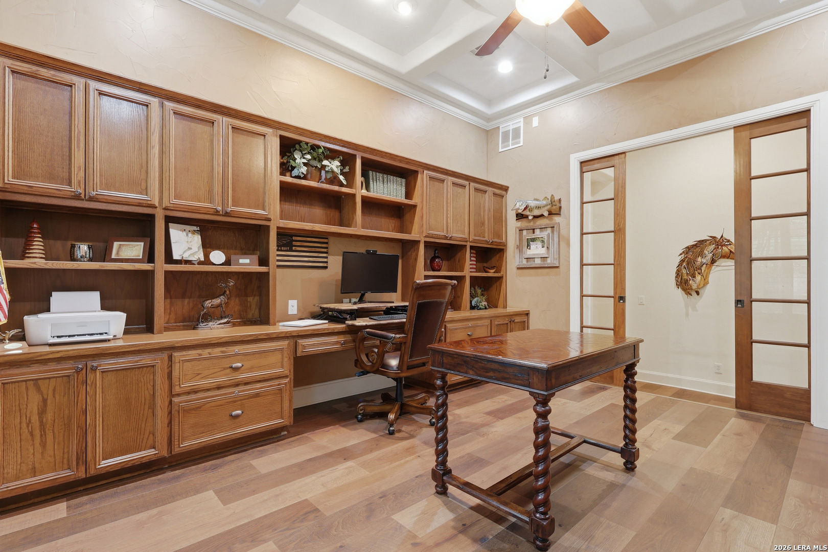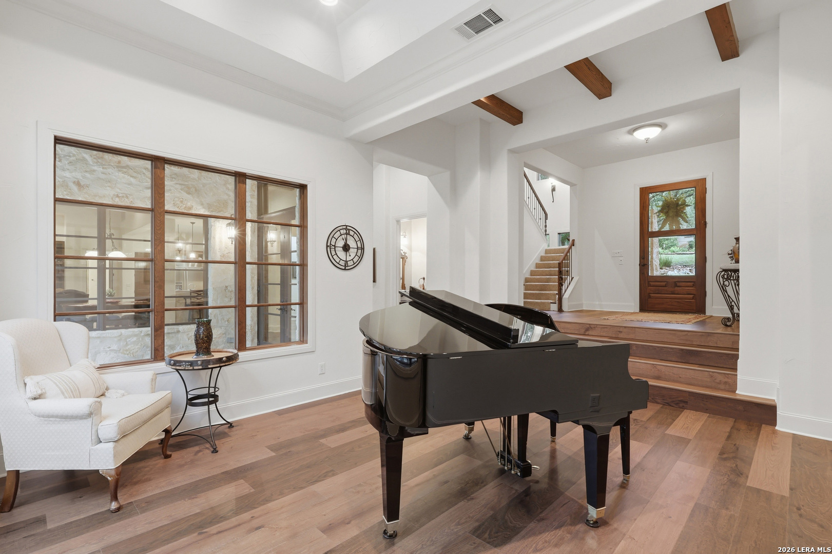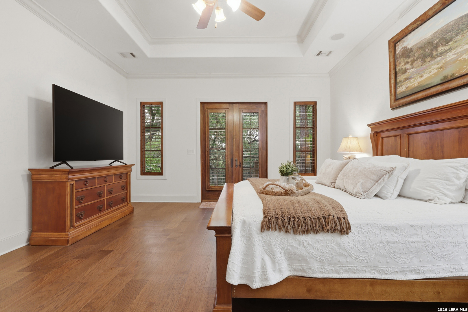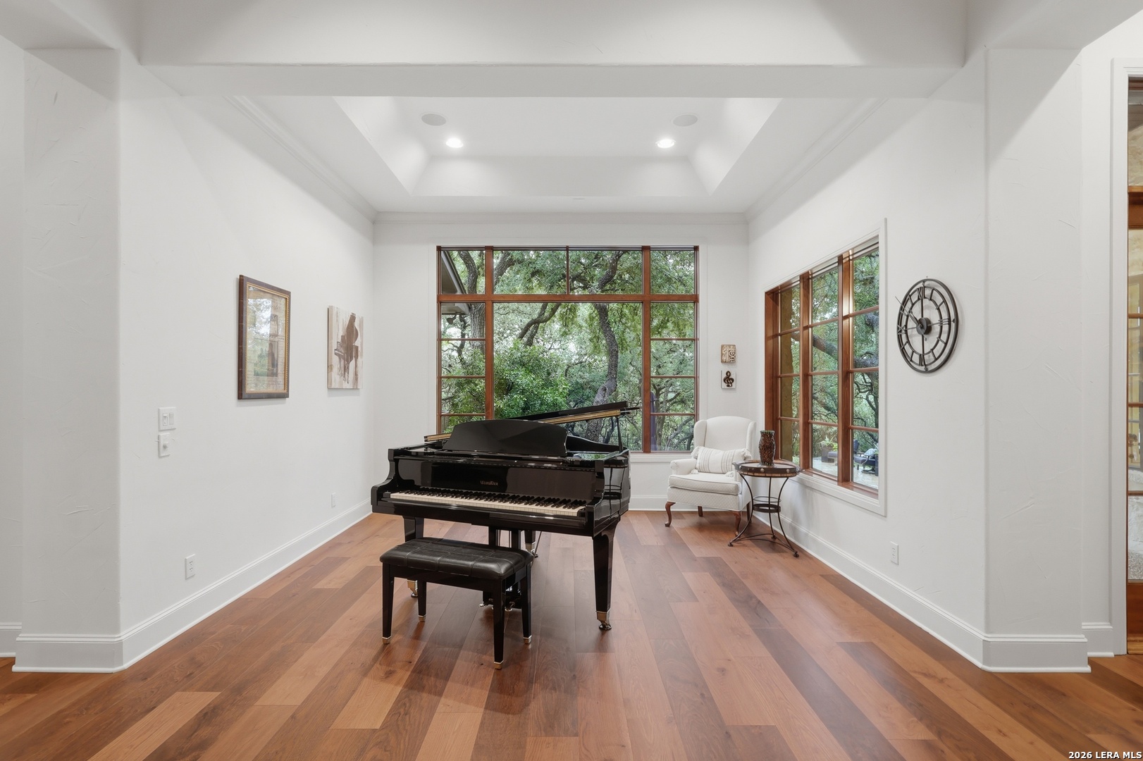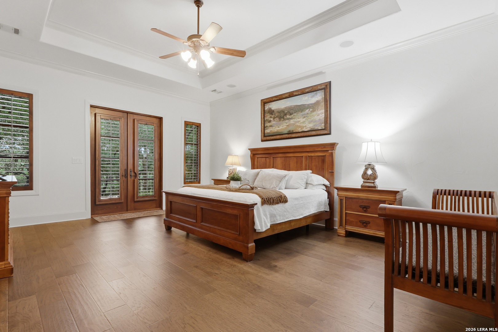Open house Sunday May 3 from 2-4 pm. Experience refined Hill Country living in this extraordinary 5,692-square-foot estate, ideally situated within the prestigious Champions Ridge community. Set on a private, park-like homesite backing to acres of protected woodlands, this remarkable residence offers an exceptional blend of timeless architecture, modern luxury, and serene natural beauty. Designed with both elegance and functionality in mind, the home features five spacious bedrooms, each with its own en-suite bath and walk-in closet, along with a versatile sixth flex room. Two well-appointed bedroom suites are located on the main level, providing convenience and flexibility for guests or multigenerational living. The secluded primary suite serves as a true sanctuary, offering spa-inspired amenities including a sunken Jacuzzi tub, expansive walk-in shower, and generous closet space. Private access to the pool and hot tub enhances the resort-style ambiance, while dedicated HVAC and a tankless water heater ensure optimal comfort year-round. Adjacent, a distinguished executive study showcases custom built-in cabinetry and elegant sliding glass and wood doors, creating a sophisticated and private workspace. Thoughtfully designed interiors are filled with natural light, thanks to custom windows that frame picturesque views of the outdoor oasis and surrounding woodlands. Select rooms feature elegant wood shutters, offering both style and privacy. Seamless indoor-outdoor living is achieved through three sets of double outswing doors that open to an entertainer's dream backyard. Here, a sparkling sport pool, mature oak trees with ambient downlighting, a fully equipped outdoor kitchen, and a cozy fire pit create an inviting retreat for gatherings or quiet evenings under the stars. A screened-in porch and wood-beamed ceilings in the family room further enhance the home's warmth and character. At the heart of the home, the expansive chef's kitchen is designed to impress, featuring premium appliances including a Viking cooktop, double ovens with warming drawer, built-in refrigerator, wine fridge, ice maker, dishwasher, and trash compactor. The open-concept layout flows effortlessly into the family room, formal dining area, butler's pantry, and sunlit breakfast nook-perfect for both grand entertaining and intimate daily living. Upstairs, three additional bedrooms and a spacious secondary living area provide ample room for relaxation. The flexible bonus room offers endless possibilities as a sixth bedroom, media room, fitness space, or playroom. Exceptional storage and organization are found throughout, including a well-appointed utility room with built-in cabinetry and counter space, a thoughtfully placed hall tree at the side entrance, a large walk-in attic, two additional pull-down attic spaces, and a main-level storage closet. Modern conveniences include a whole-home Sonos sound system, both indoors and out, as well as a hardwired security system for peace of mind. Residents of Champions Ridge enjoy exclusive access to a 31-acre nature preserve with scenic hiking trails, a 24-hour guarded gate, and premier amenities including tennis, pickleball, and sport courts-all set within a tranquil, park-like environment. This is a rare opportunity to own a truly exceptional estate where luxury, privacy, and natural beauty converge.