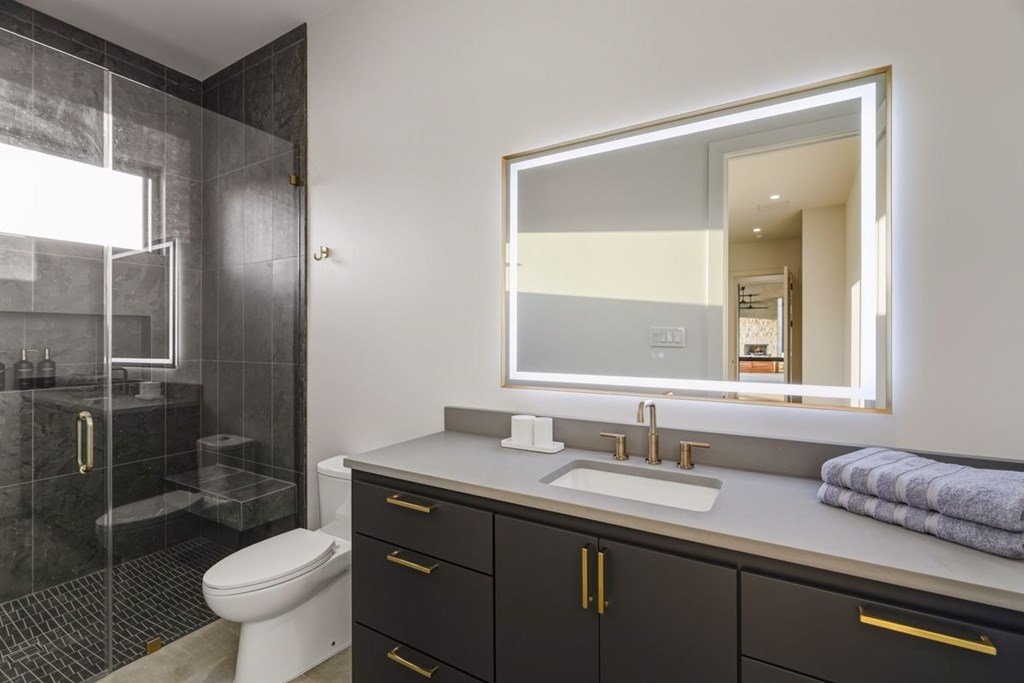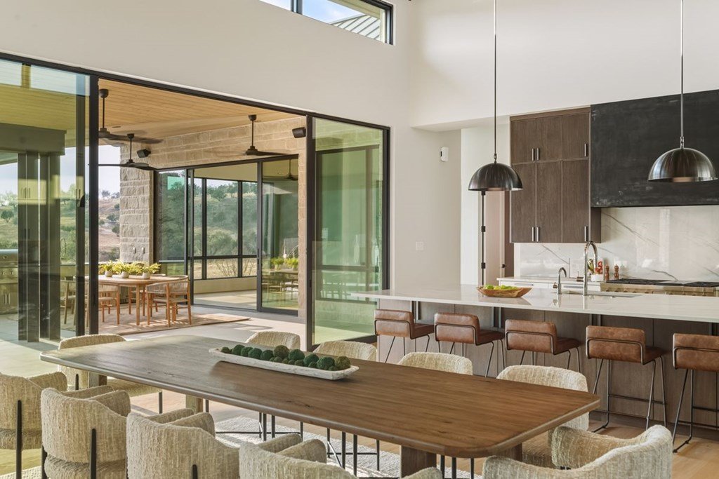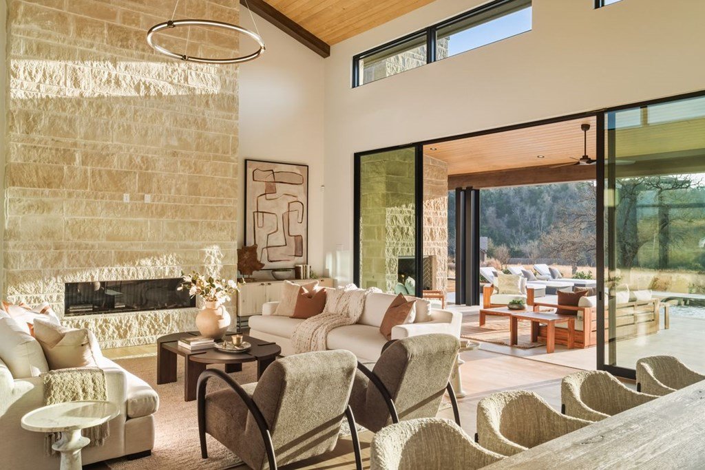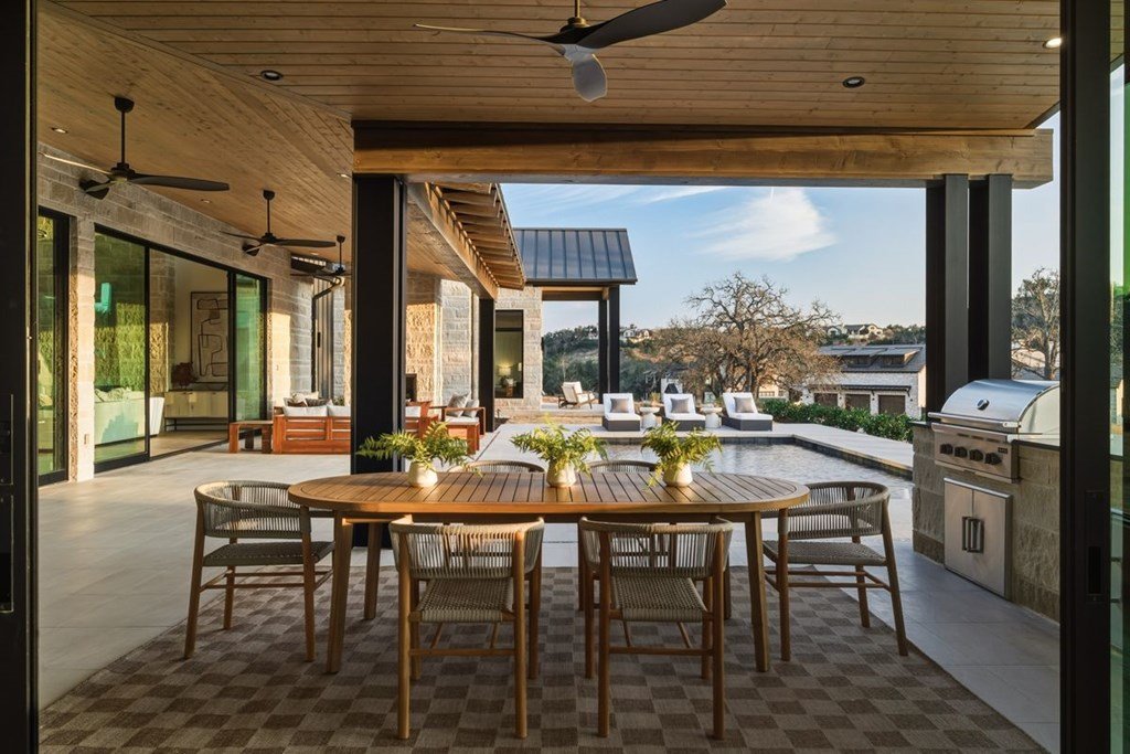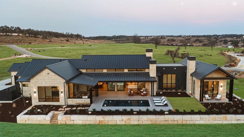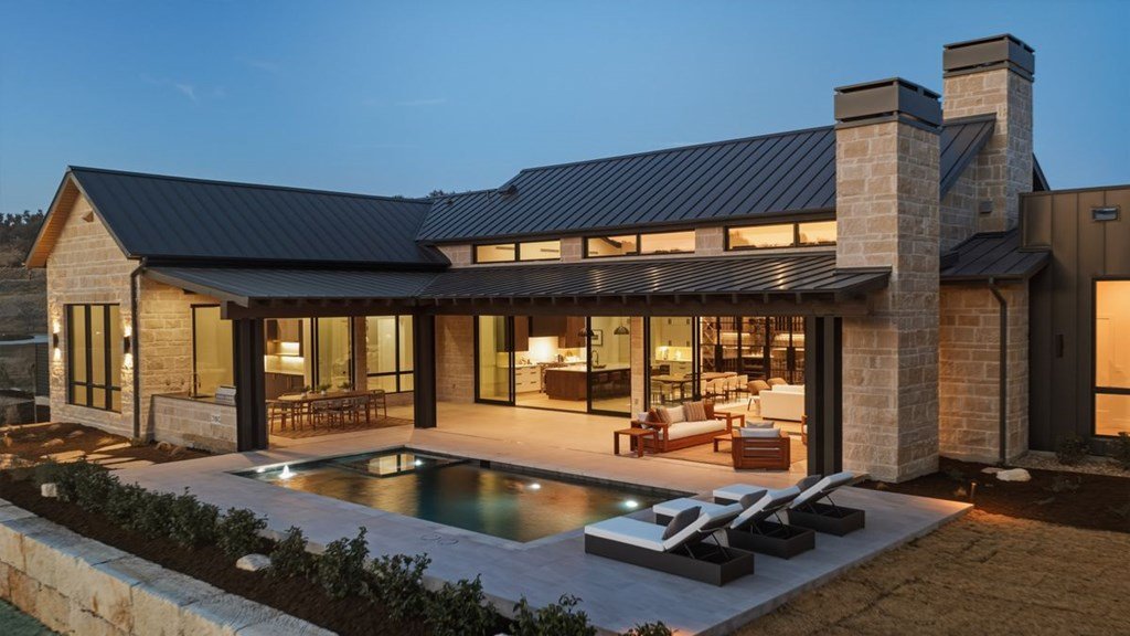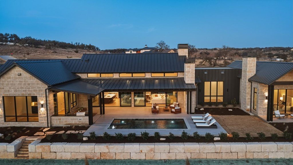 Where Privacy, Architecture, and the Outdoors Become One Behind the gates of Boot Ranch, on prestigious Presidio Drive, this newly completed custom estate by Urbano Design & Build is a rare expression of Hill Country elegance — designed for legacy living and extraordinary privacy. Perfectly positioned near Longhorn Landing yet intentionally oriented for seclusion, 82 Presidio Ridge Drive offers a sense of retreat that feels both protected and expansive. Mature landscape, thoughtful setbacks, and sweeping covered terraces create an environment where privacy is not simply a feature it is a defining experience. This exceptional residence offers five bedrooms and five-and-a-half baths, with the fifth bedroom thoughtfully designed to function beautifully as a private study or executive office, allowing flexibility for both family living and refined work-from-home luxury. Spanning 4,993 square feet of refined interior living and 2,666 square feet of covered outdoor space, the home is anchored by a breathtaking great room with soaring 18-foot ceilings and exposed beams. Rich White Oak floors carry warmth throughout, while aluminum-clad windows and dramatic Western sliding glass walls dissolve the boundary between indoors and out. Here, architecture becomes atmosphere. The expansive indoor–outdoor design allows the great room, kitchen, and dining areas to flow effortlessly onto the covered terraces and resort-inspired pool beyond. With a single motion, walls of glass open wide transforming the home into a unified living pavilion overlooking the heated pool and spa. Entertaining becomes fluid. Evenings stretch longer. The Hill Country becomes part of the room. The kitchen is both sculptural and functional, with striking Monte Blanc Quartzite countertops and backsplash, custom soft-close cabinetry, and a handcrafted patina iron range hood. A full suite of Sub-Zero and Wolf appliances, including dual dishwashers and a prep kitchen, ensures effortless hosting. The impressive 700-bottle wine cellar with custom iron doors stands as both statement and sanctuary for collectors. The primary suite offers its own secluded retreat, where textured lime-plastered walls and ceiling frame a gas fireplace and elegant Calacatta marble vanities create spa-level serenity. Each additional suite provides privacy, walk-in wardrobes, and beautifully appointed baths featuring Quartz countertops and illuminated LED mirrors. Outdoors, the experience rivals that of a private resort. A chef's outdoor kitchen finished with leathered granite countertops, a gas-wood burning fireplace, sports-bar-style lounge, and integrated speaker system frame the shimmering pool creating a seamless continuation of interior luxury into open-air living. Thoughtful details enhance everyday comfort and security: Dual washer and dryer sets Dedicated dog bathing station Epoxy-finished garage floors Spacious three-car garage plus golf cart garage Pre-wiring for automatic shades Whole-home audio system Powerful 48kW Generac generator for uninterrupted peace of mind Ownership within Boot Ranch extends beyond the residence itself. Championship golf, racquet and fitness clubs, a luxury spa, Metzger Park, and the vibrant atmosphere of Longhorn Landing define the lifestyle. The multi-generational membership extends privileges to parents, grandparents, children, adult children, grandchildren, and spouses preserving family connection without additional membership dues. This is not simply a home. It is a private Hill Country estate where architecture opens to sky, where interiors flow to water, and where legacy is built to last.