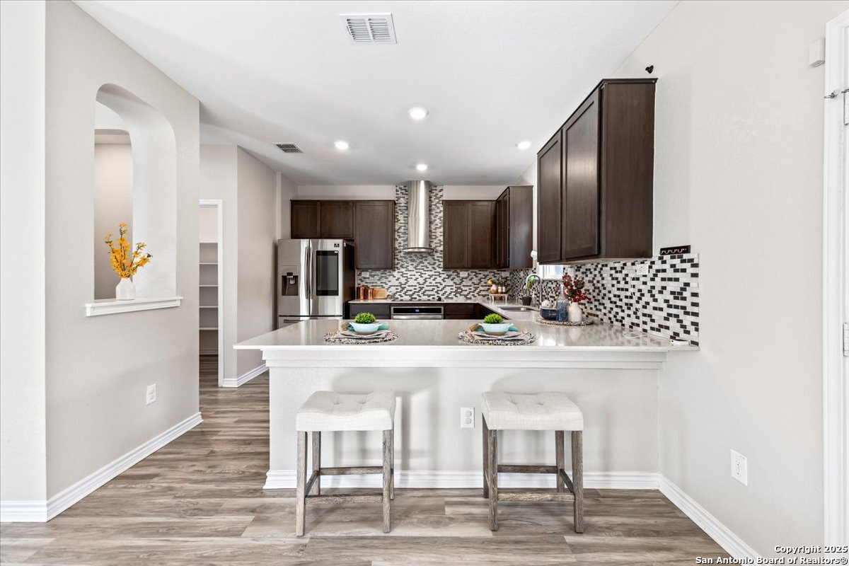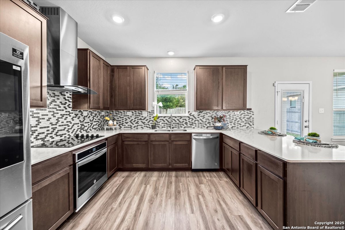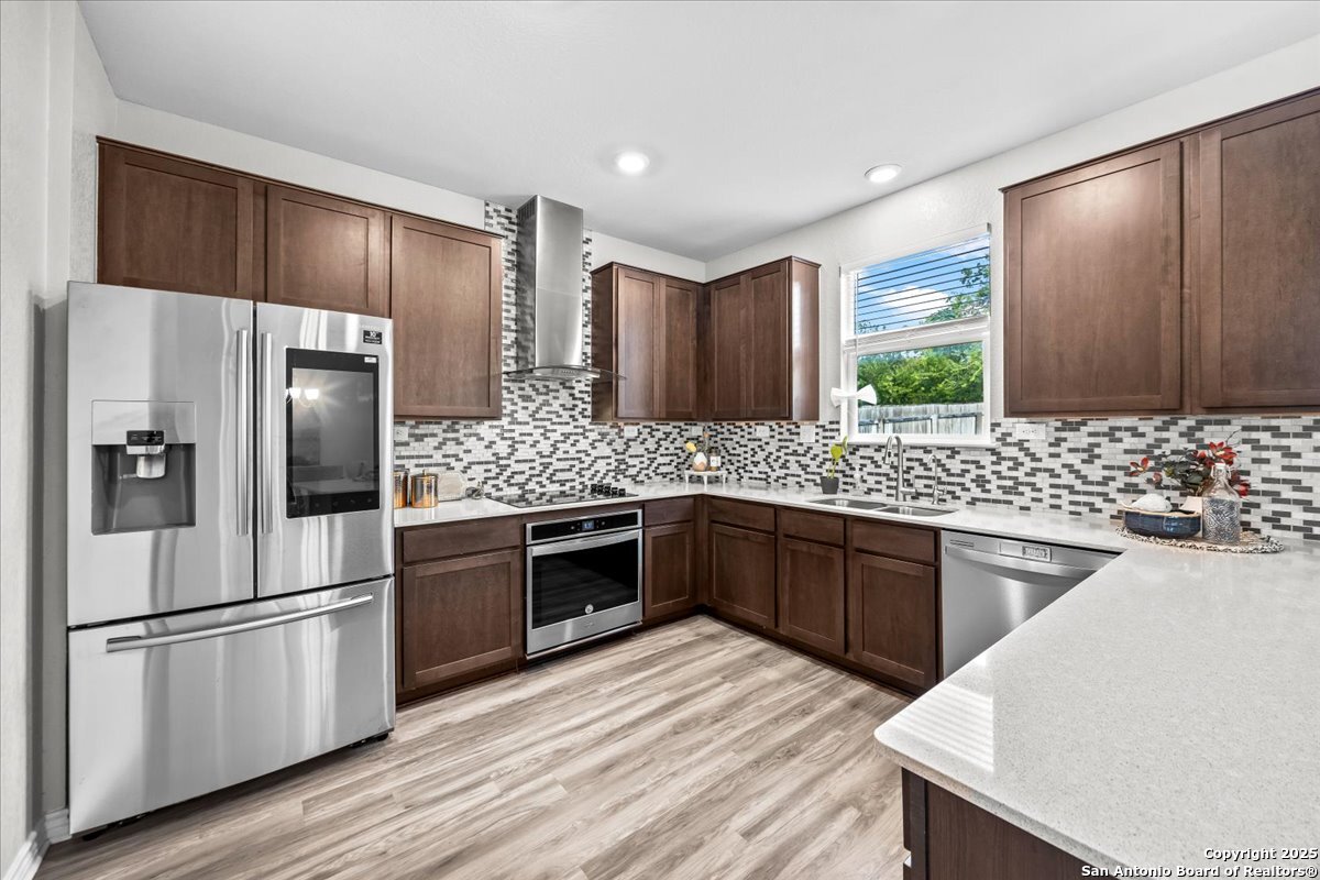 Immaculate and move-in ready, this home shows like a model with a bright, open floor plan designed for both comfort and style. The kitchen is a true centerpiece featuring upgraded appliances, glass mosaic tile backsplash, granite counters, an RO system, and a striking stainless steel range hood. Two spacious living areas provide flexibility for entertaining or relaxing. The primary suite offers a serene retreat with dual vanities, a large walk-in shower, and an expansive walk-in closet. Both additional bedrooms are generously sized and include their own walk-in closets. This home has been meticulously maintained with quarterly preventative pest control through Home Team Pest Defense and regular HVAC service through Airtron. An owned water softener is included and conveys with the property.