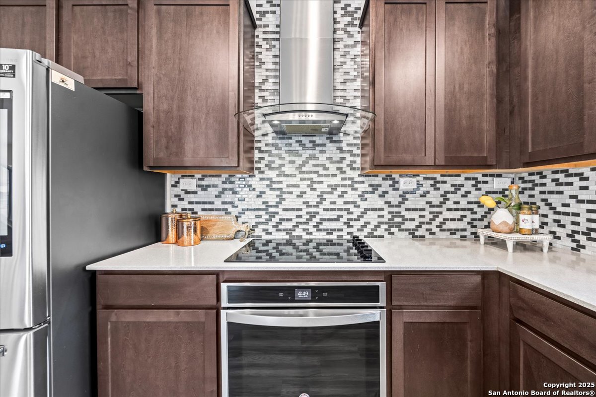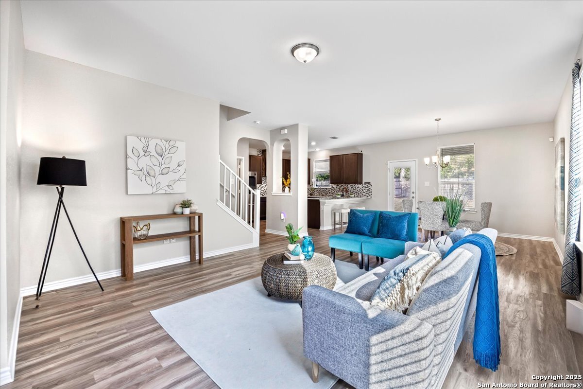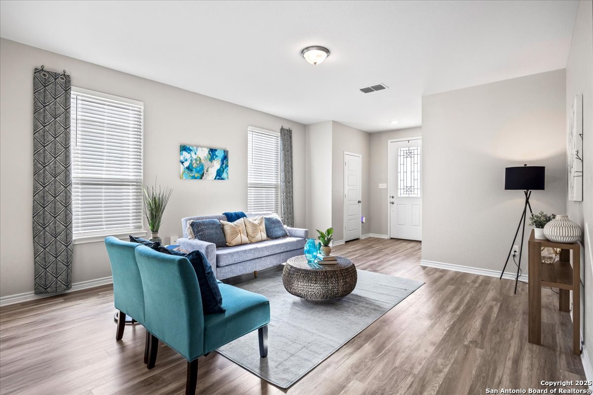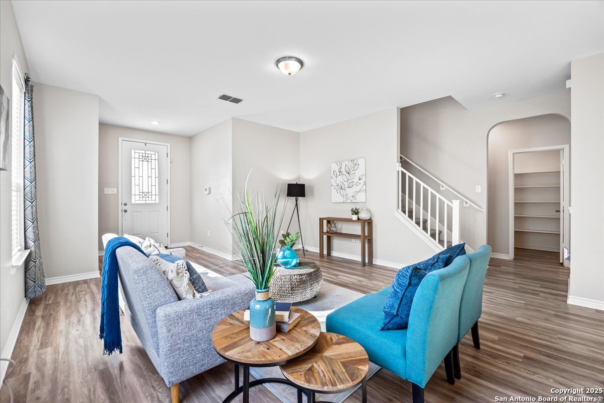 Immaculate and move-in ready, this home shows like a model with a bright, open floor plan designed for both comfort and style. The kitchen is a true centerpiece featuring upgraded appliances, glass mosaic tile backsplash, granite counters, an RO system, and a striking stainless steel range hood. Two spacious living areas provide flexibility for entertaining or relaxing. The primary suite offers a serene retreat with dual vanities, a large walk-in shower, and an expansive walk-in closet. Both additional bedrooms are generously sized and include their own walk-in closets. This home has been meticulously maintained with quarterly preventative pest control through Home Team Pest Defense and regular HVAC service through Airtron. An owned water softener is included and conveys with the property.