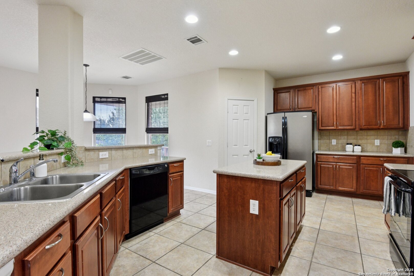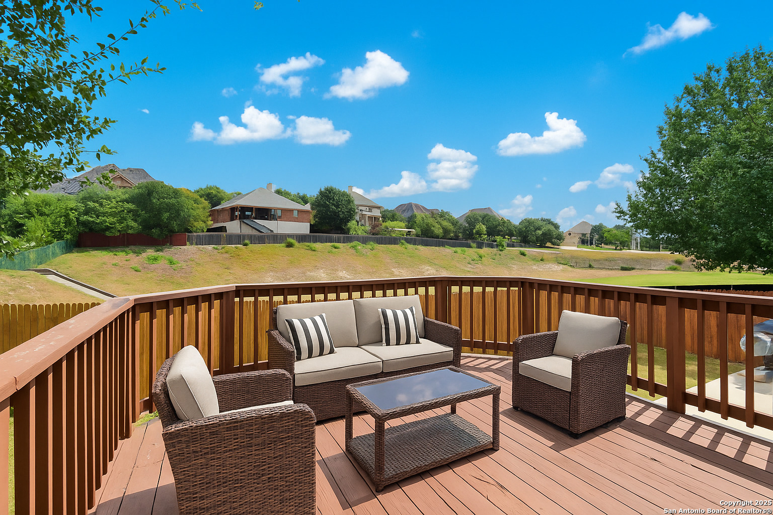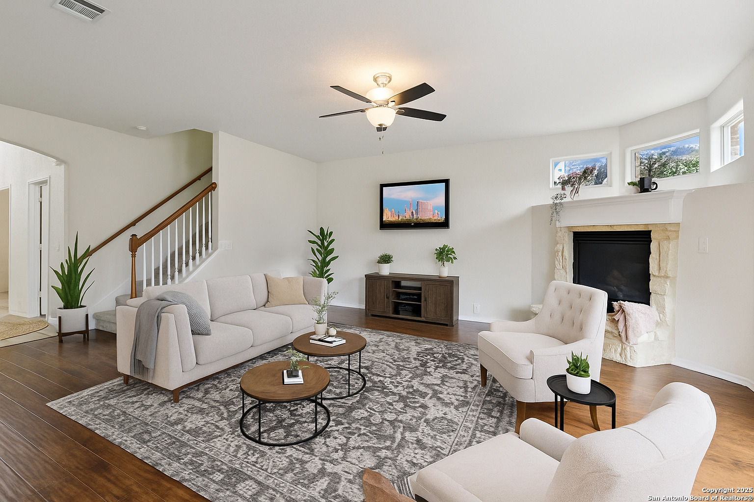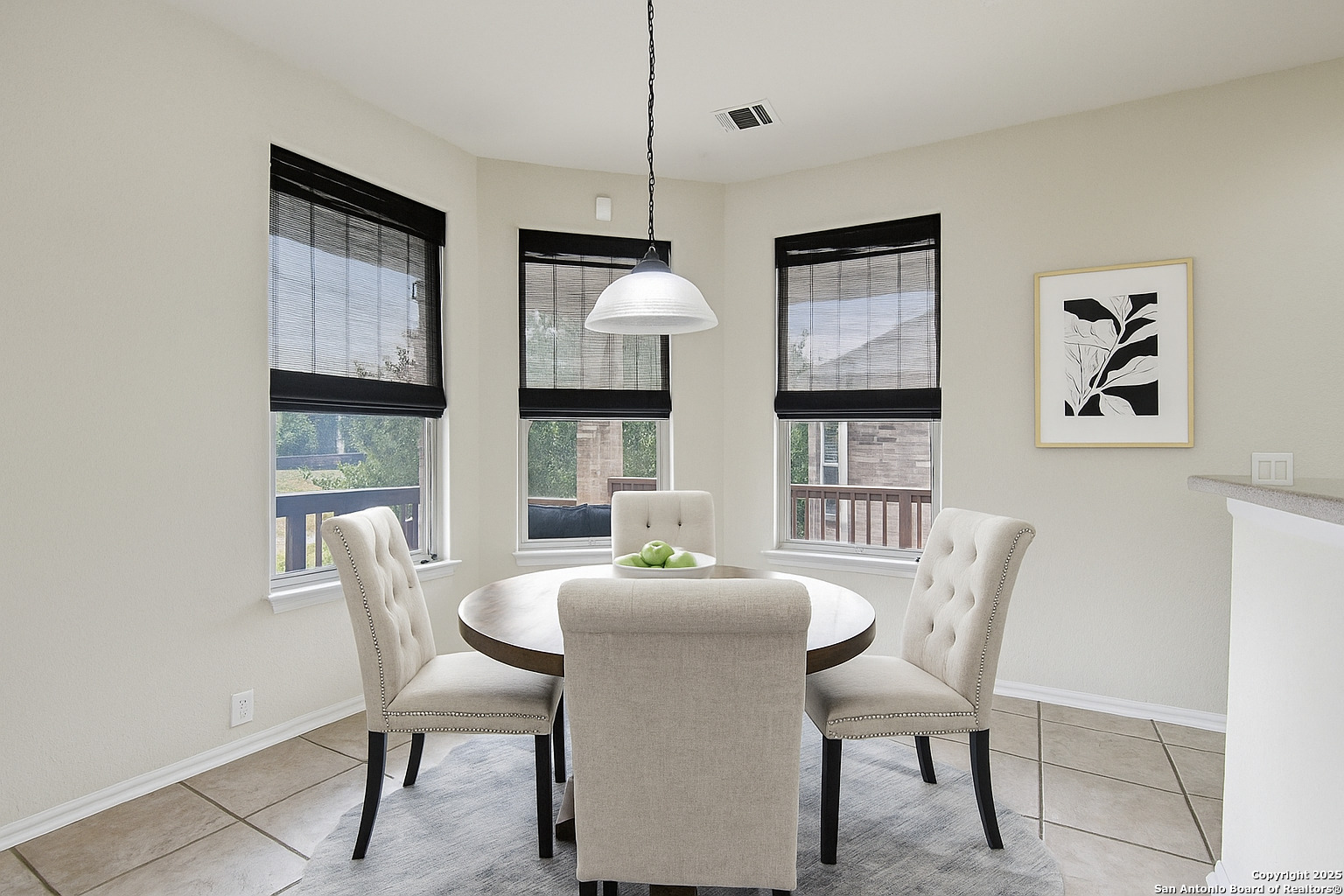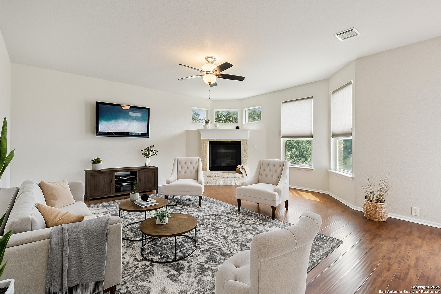 Welcome to your new home in the highly sought-after Grandview community perfectly located near UTSA, La Cantera, The Rim, and Six Flags! This home has that warm, inviting feel the moment you walk in. The open layout is perfect for entertaining, featuring a cozy stone gas fireplace, a formal dining area, and a spacious kitchen where everyone naturally gathers for morning coffee or weeknight dinners. You'll love the recent updates - fresh paint inside and out, new carpet, and stylish laminate wood and tile flooring throughout the main areas, giving the home a modern, move-in-ready feel. Upstairs, there's a dedicated office for working from home and a media room ready for movie nights or game days. Step outside to your private back patio with no rear neighbors the perfect spot to unwind after a long day. The neighborhood offers so much to enjoy: a community pool, playground, park, basketball court, and clubhouse - all just a short walk away. This home has been well cared for and is move-in ready, offering comfort, convenience, and location all in one beautiful package. Come see why Grandview is one of the most desirable places to live in Northwest San Antonio!