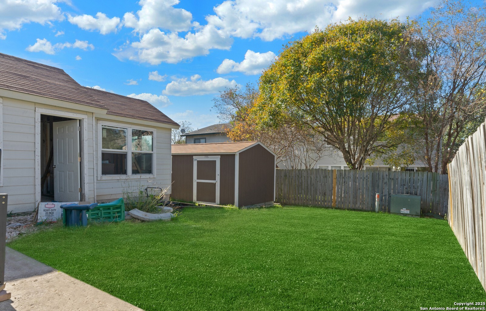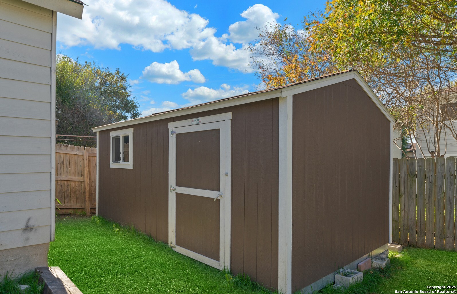 Welcome home to this Spacious 4-bedroom, 2.5-bath home with loft and soaring ceilings in the living room. Features include a cozy fireplace, laminate and tile flooring throughout (no carpet), and solar screens for energy efficiency. The primary suite offers a garden tub and double vanity. The garage opens through to the backyard to a large backyard with a shed, ideal for parking a trailer, boat, or additional vehicles. Located near a community park with an easy commute to Randolph Air Force Base, SAMC, and The Forum. Tenant's lease end 10/31/25 and seller is motivated. Schedule your showing TODAY!